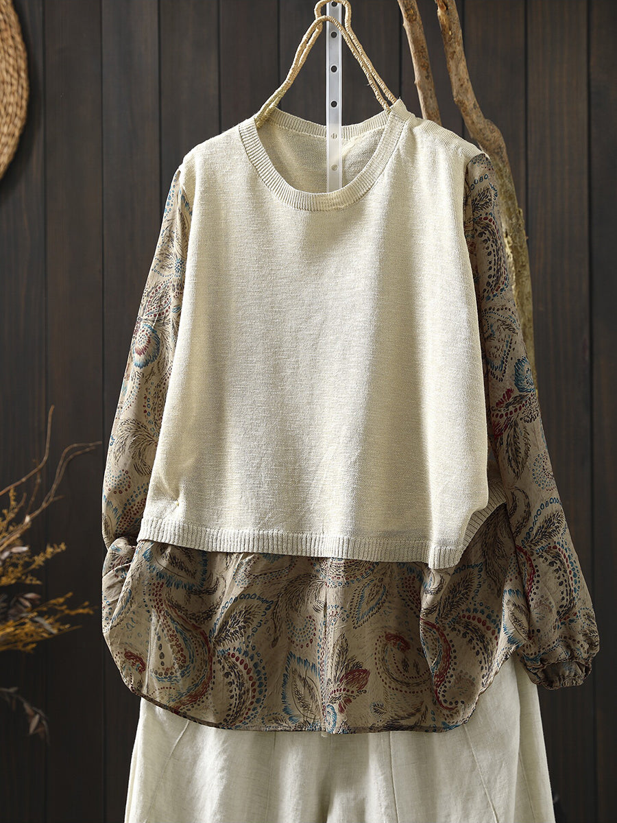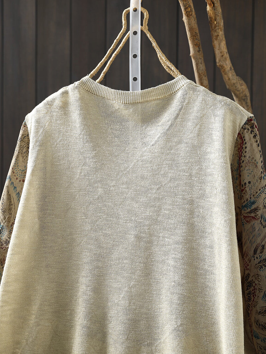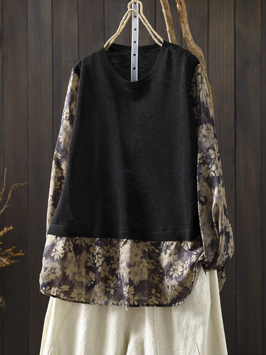 Camicetta da donna primaverile in cotone con inserti floreali artistici