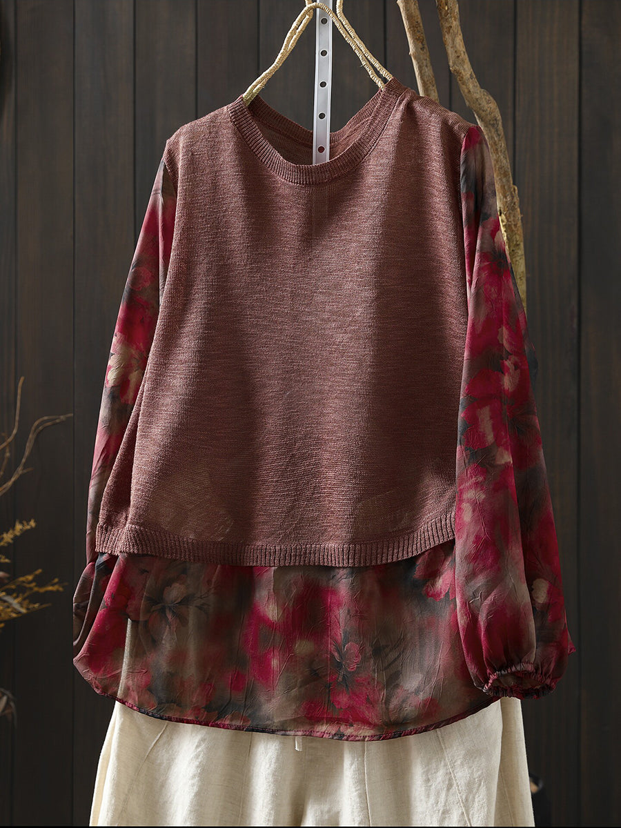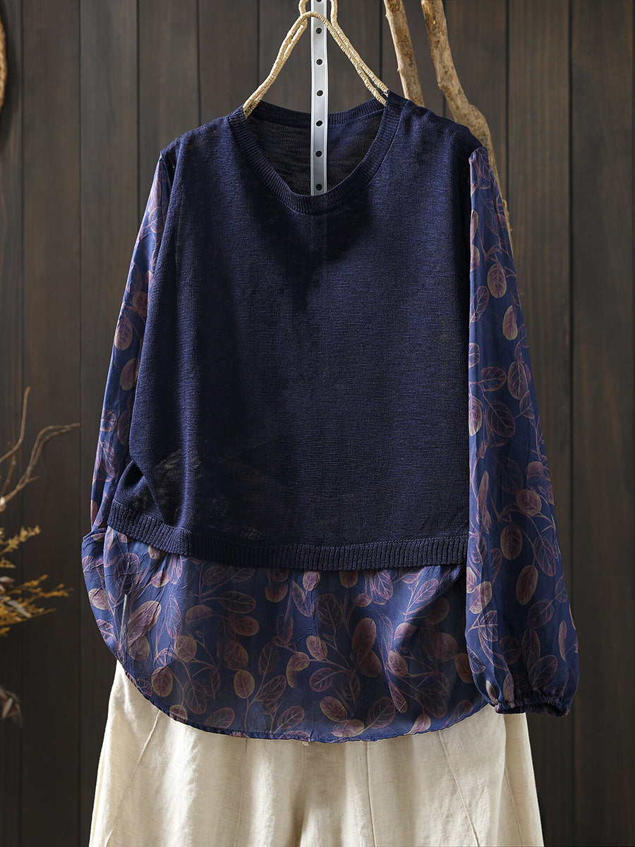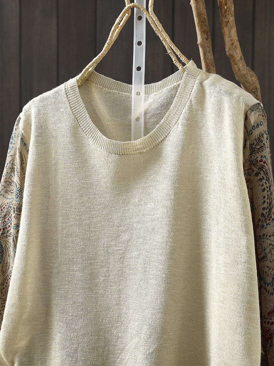 Camicetta da donna primaverile in cotone con inserti floreali artistici