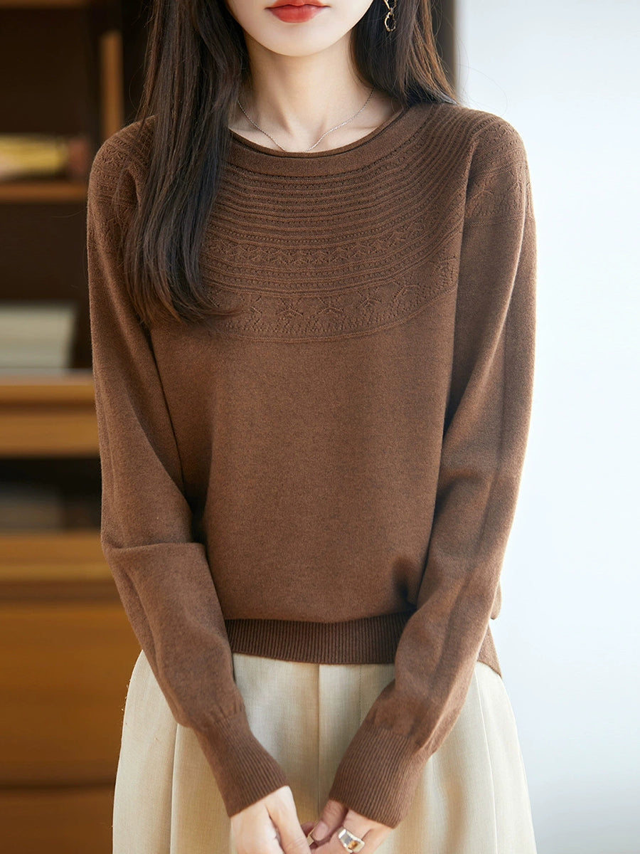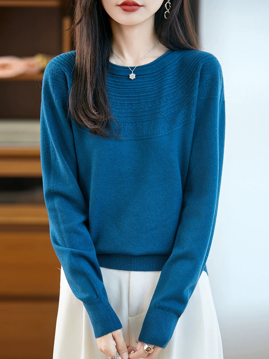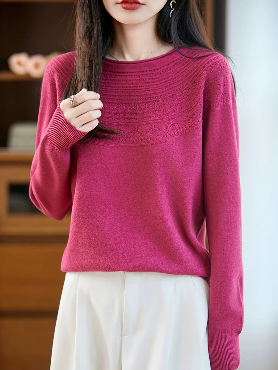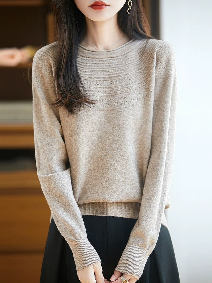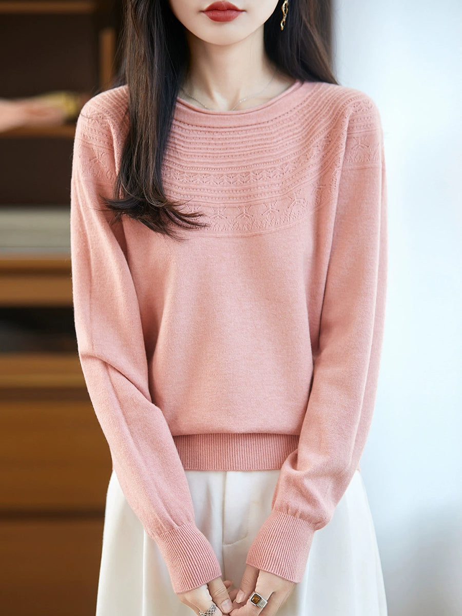 Maglione con scollo a V in maglia artistica da donna primaverile