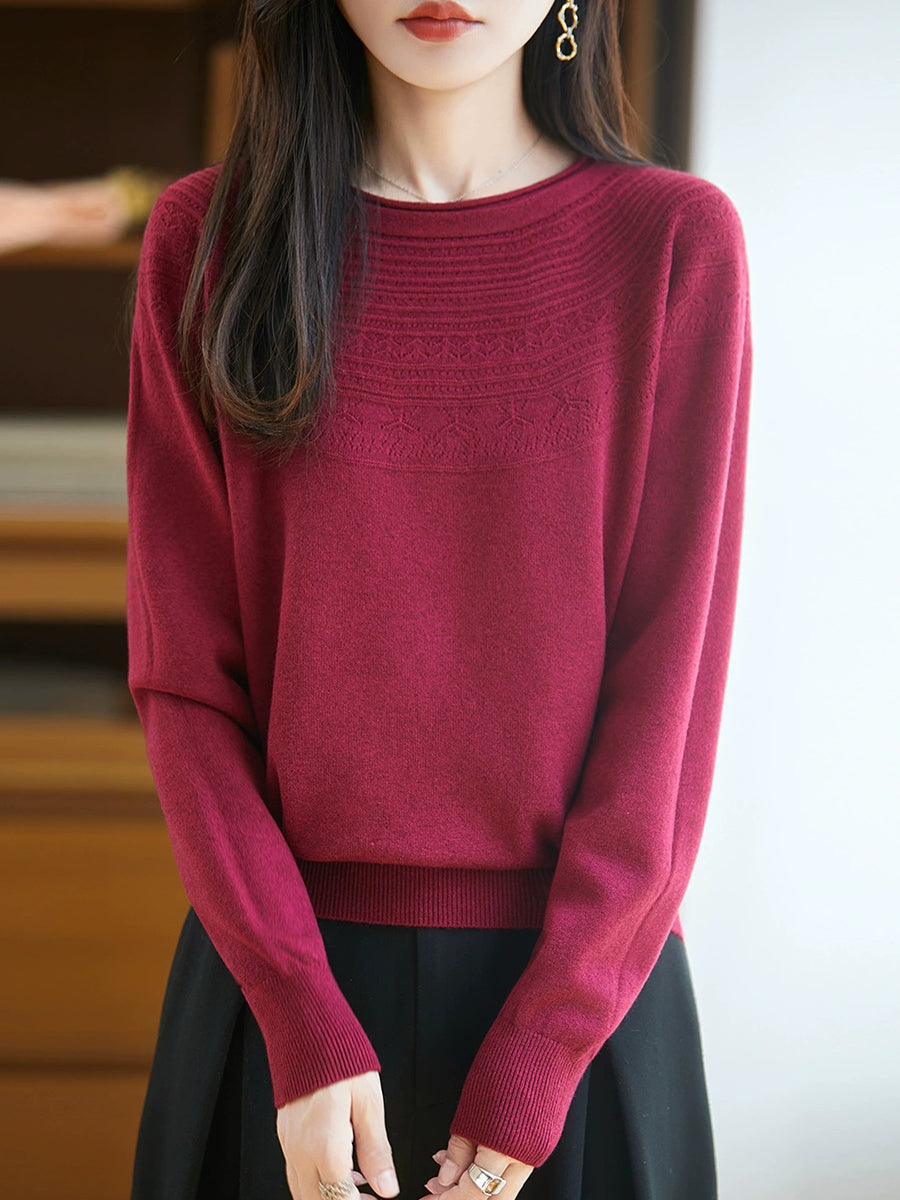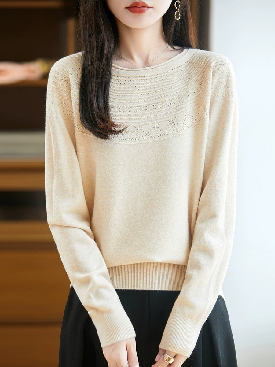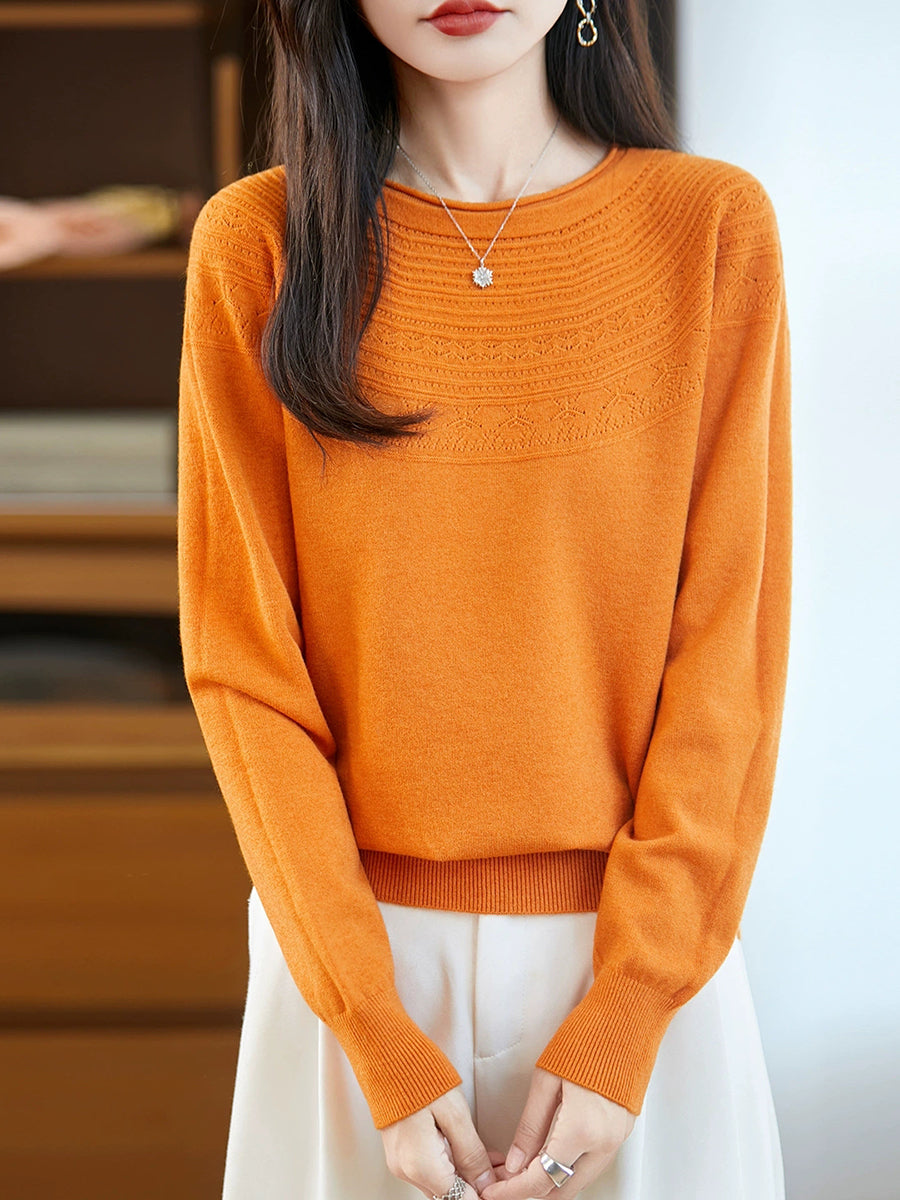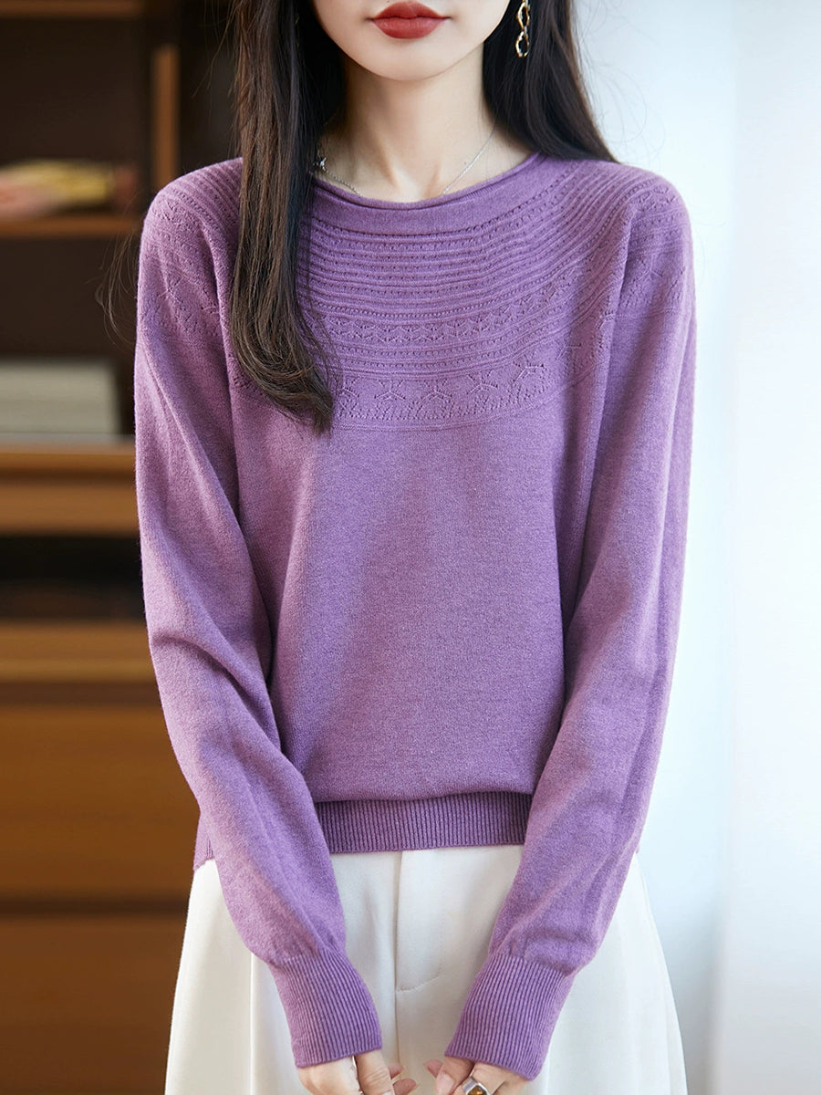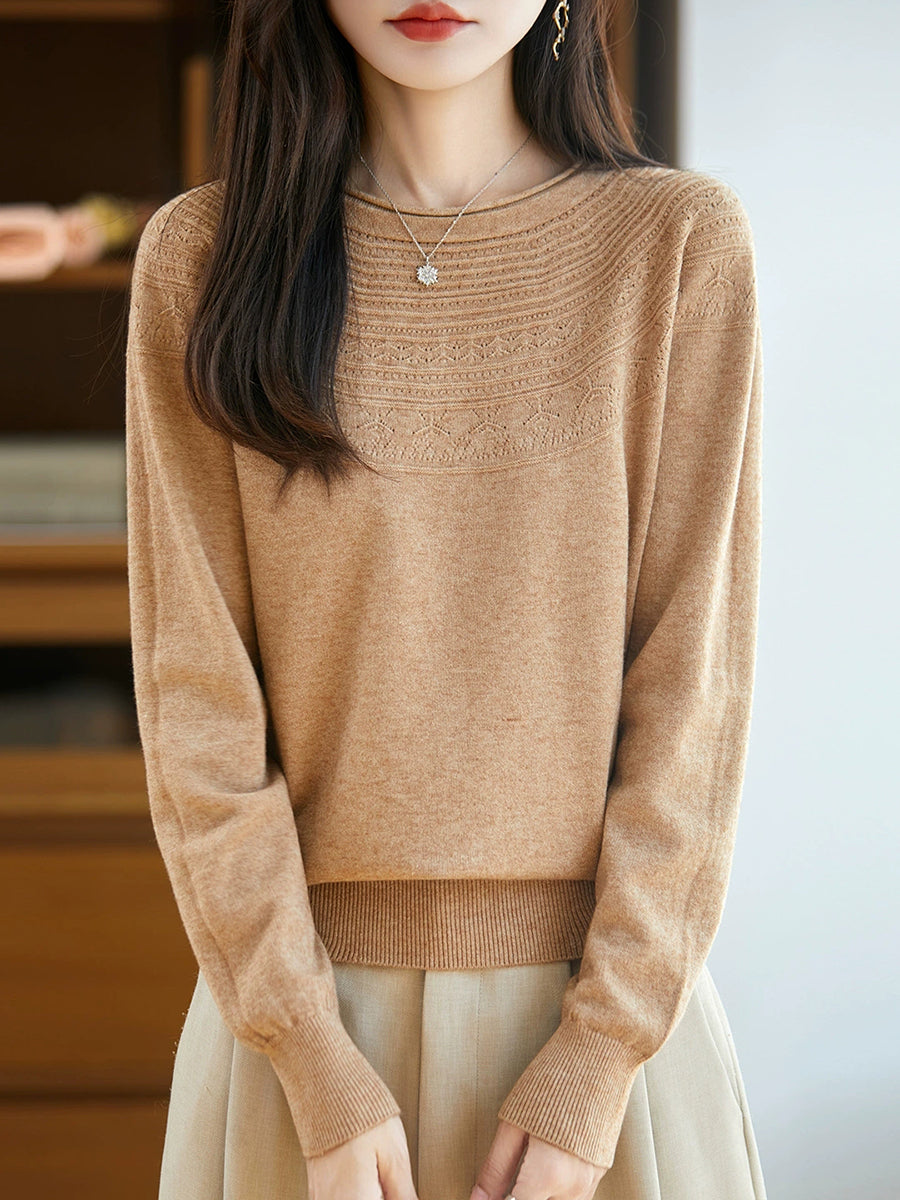 Maglione con scollo a V in maglia artistica da donna primaverile