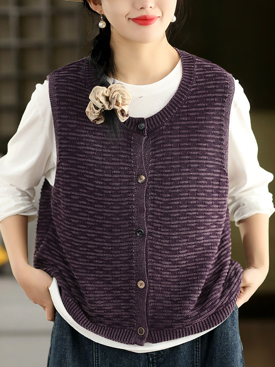 Gilet primaverile artistico lavorato a maglia con scollo a V da donna