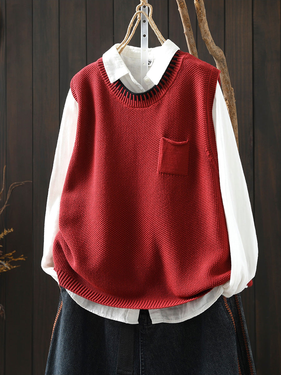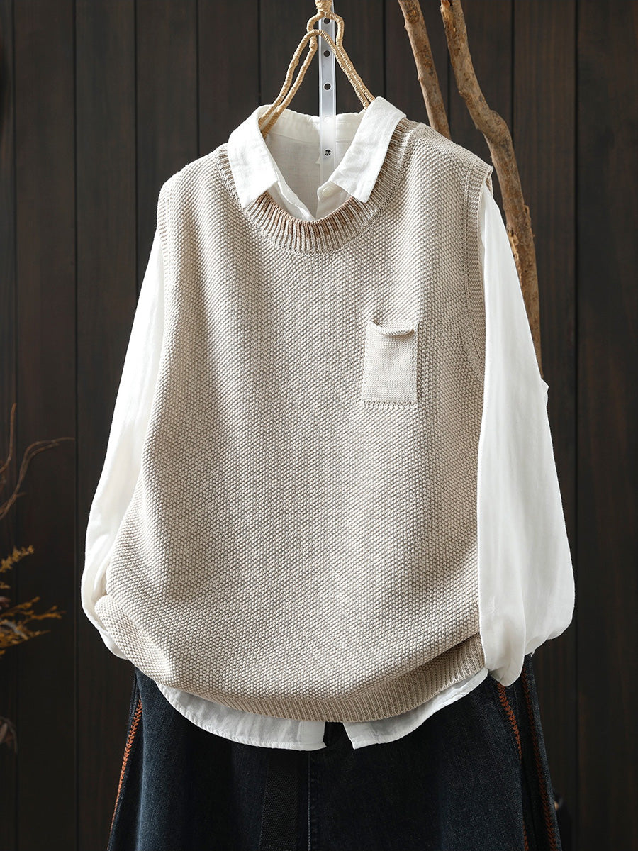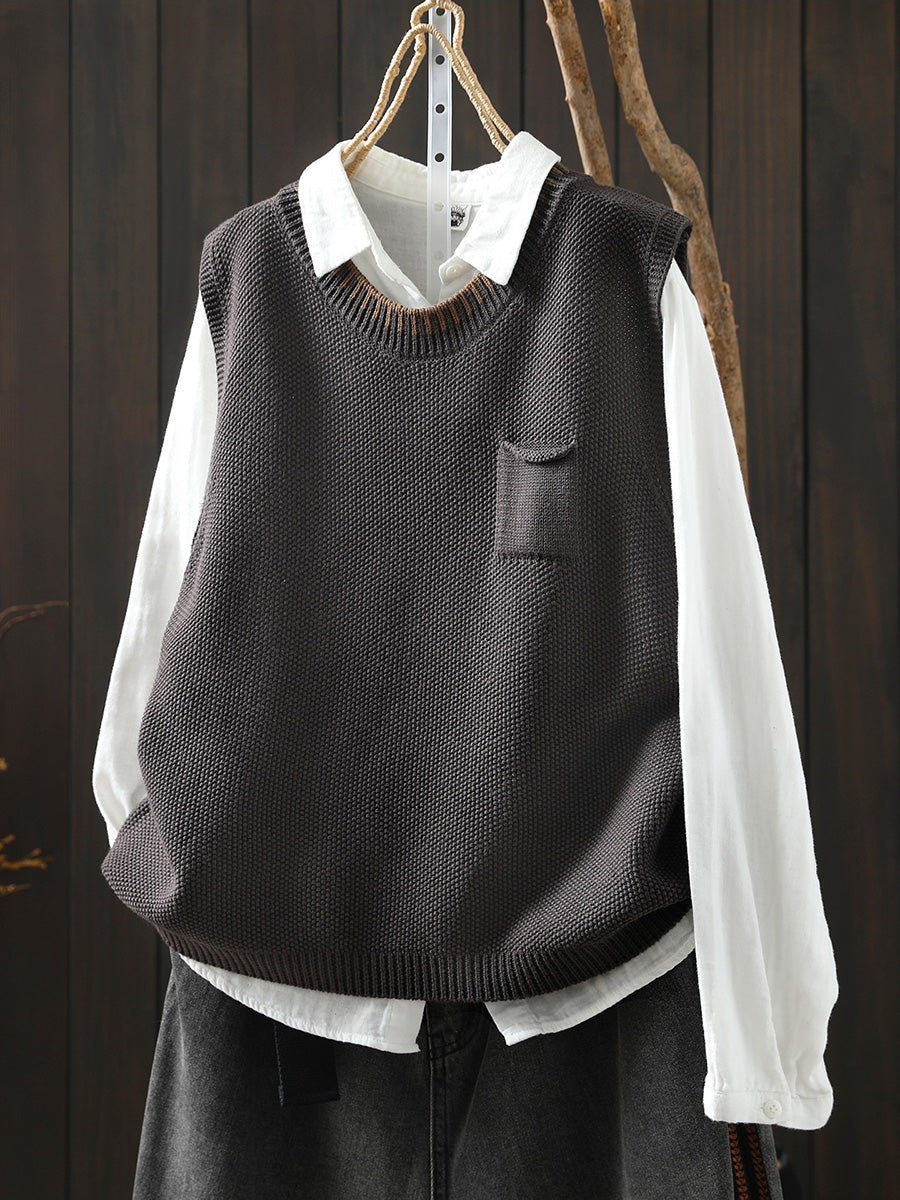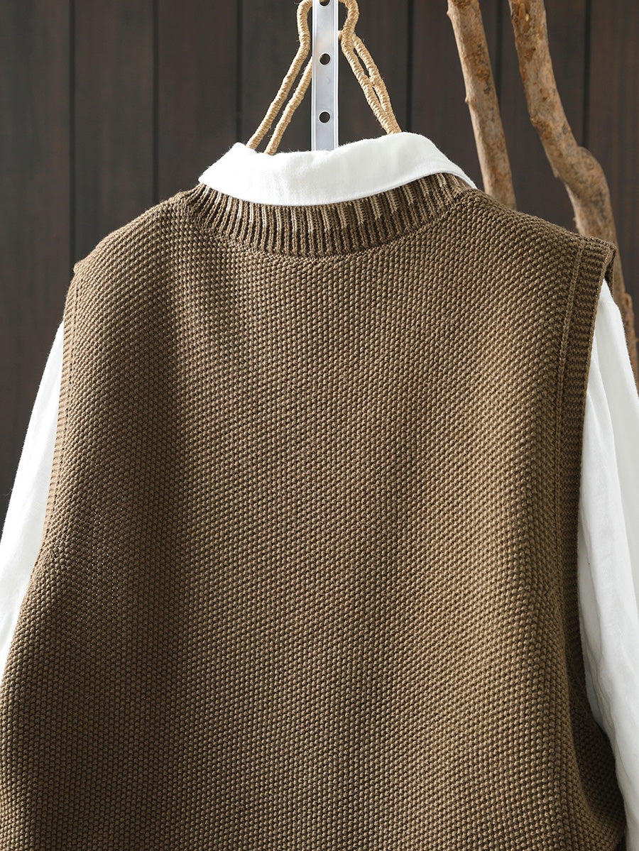 Realizzato in un mix sapientemente bilanciato di 45% cotone e 55% acrilico, questo gilet in maglia offre comfort e resistenza. La caratteristica silhouette con scollo a V si abbina a un'estetica artistica, rendendolo un capo ideale da indossare a strati nelle stagioni di transizione. Perfetto per la primavera e l'autunno, questo capo versatile coniuga uno stile casual e raffinato con una sobria raffinatezza.