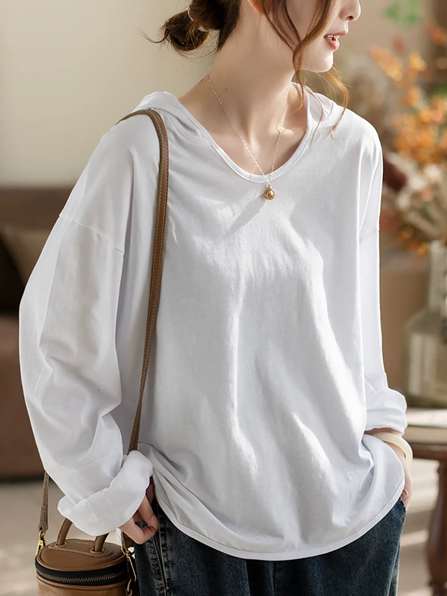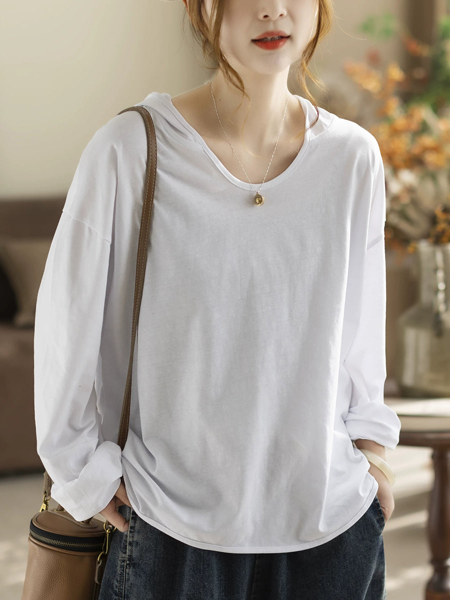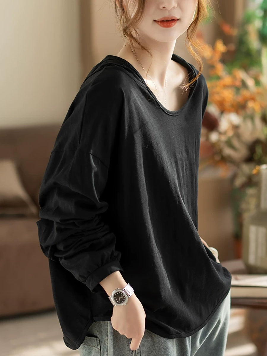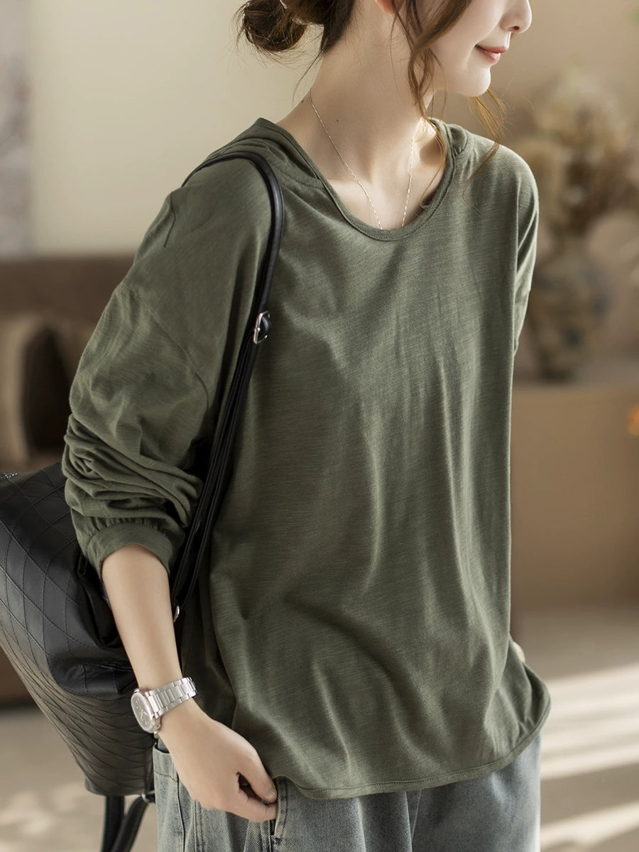 Felpa con cappuccio da donna primavera Artsy Pure Color 100% cotone