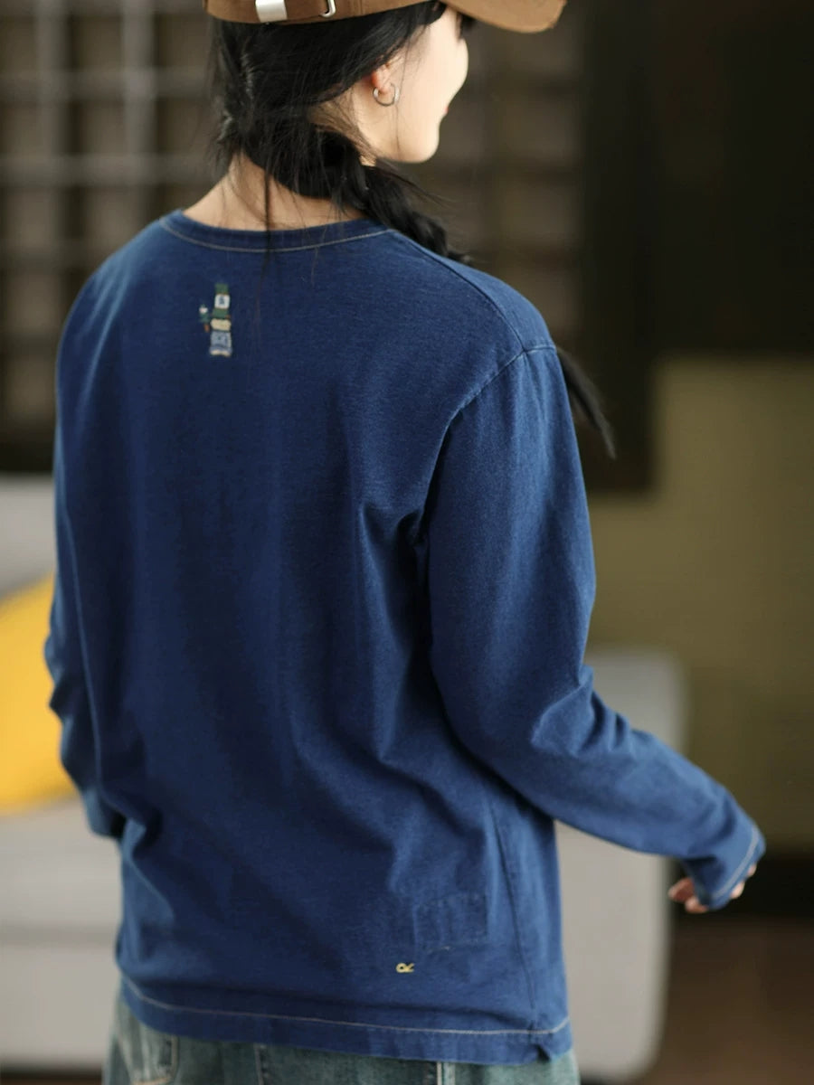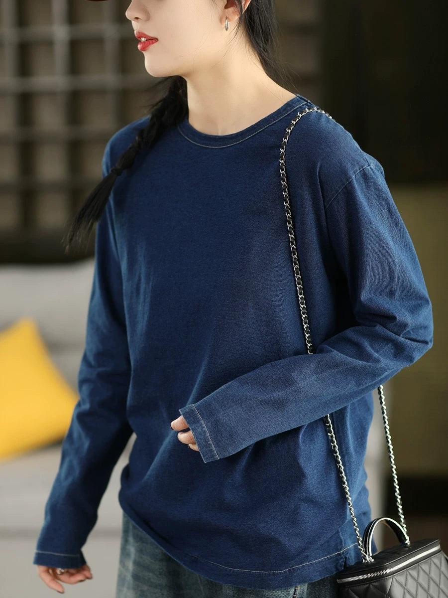 Blusa da donna primaverile in puro cotone 100% con scollo a V