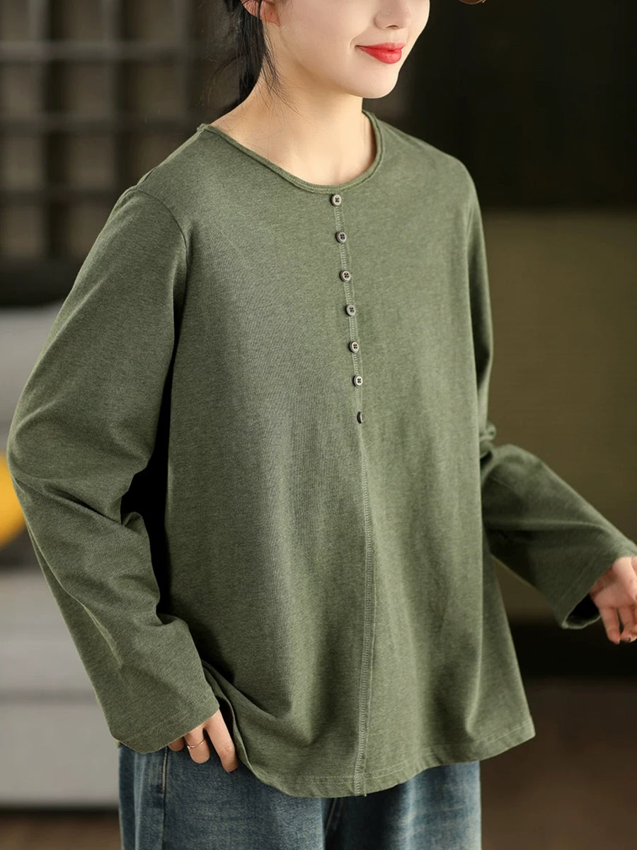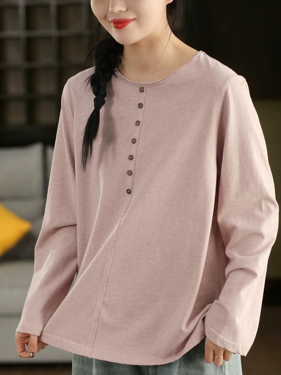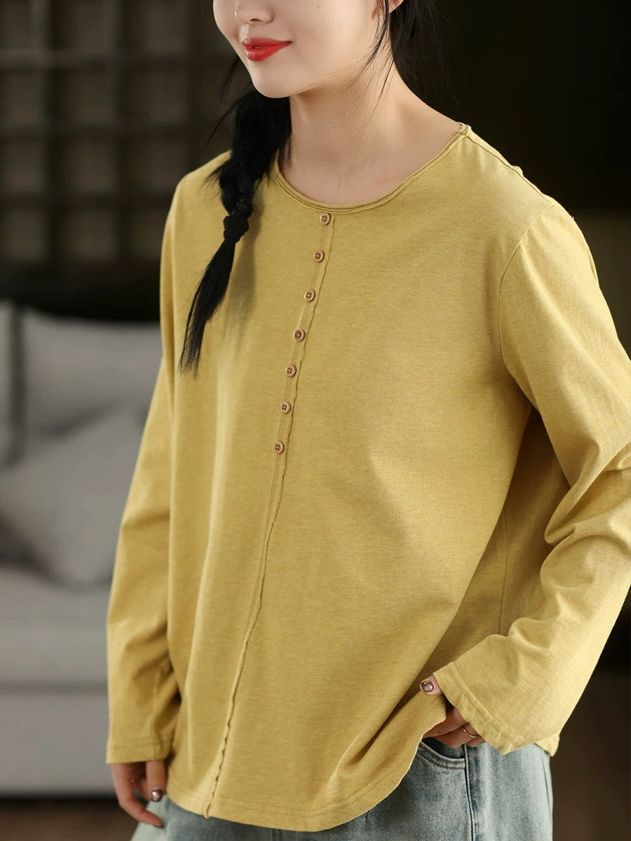 Blusa da donna primaverile in puro cotone 100% con scollo a V