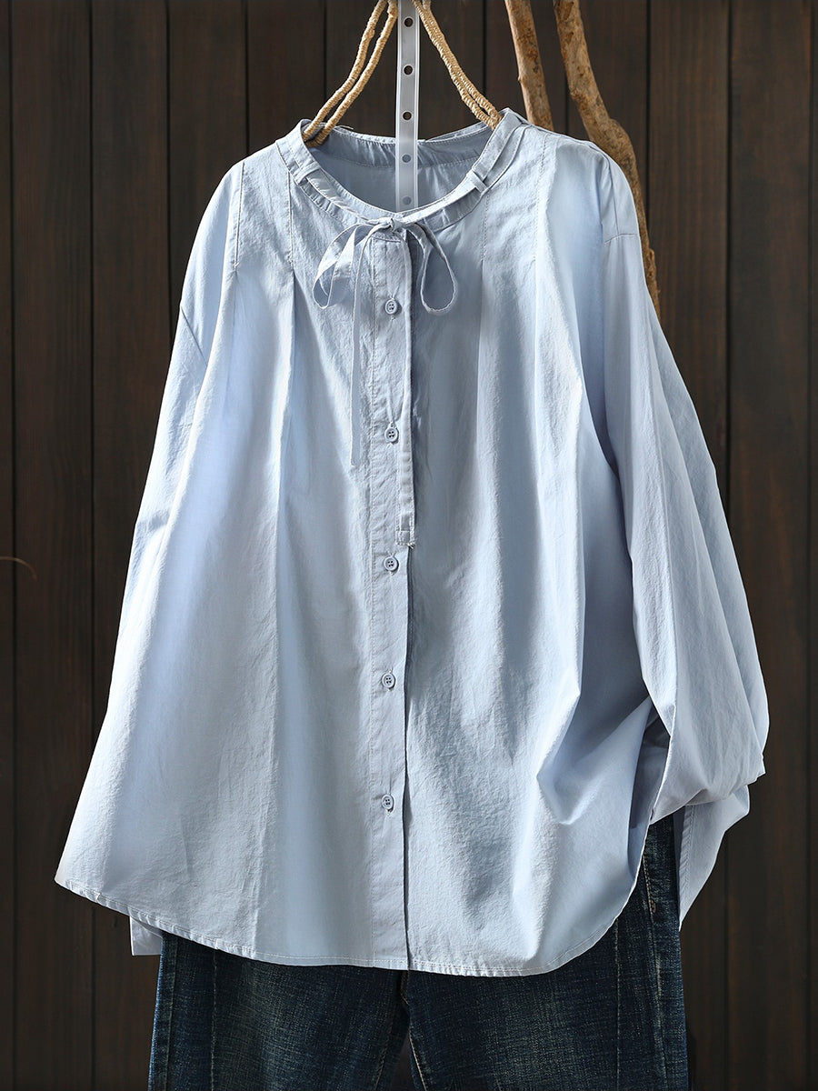Camicetta da donna primaverile in puro cotone 100% con colletto rialzato e colori vivaci