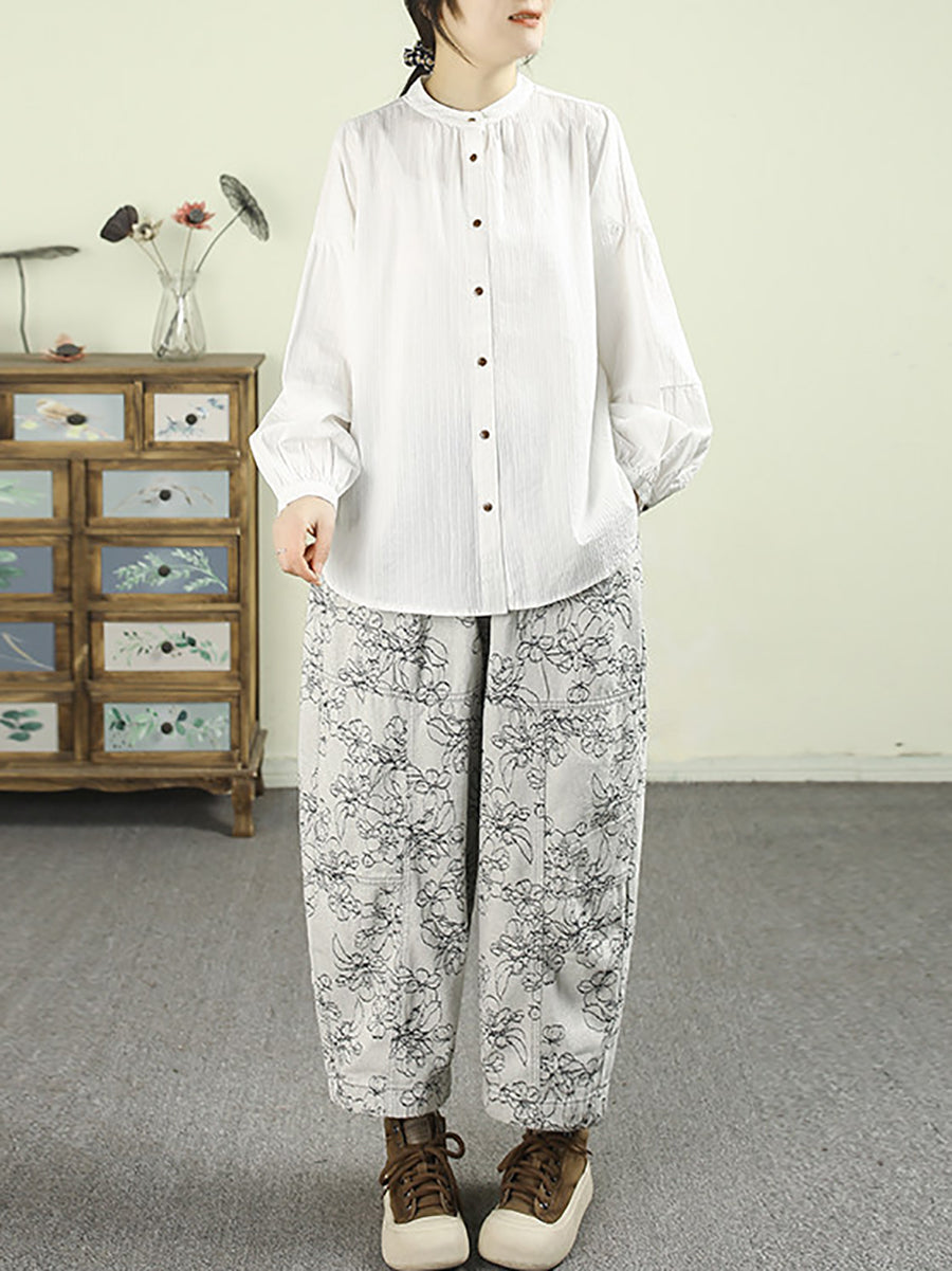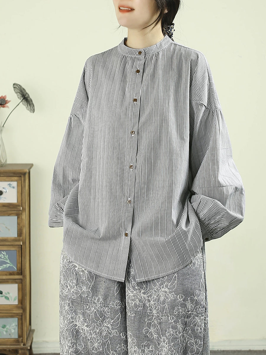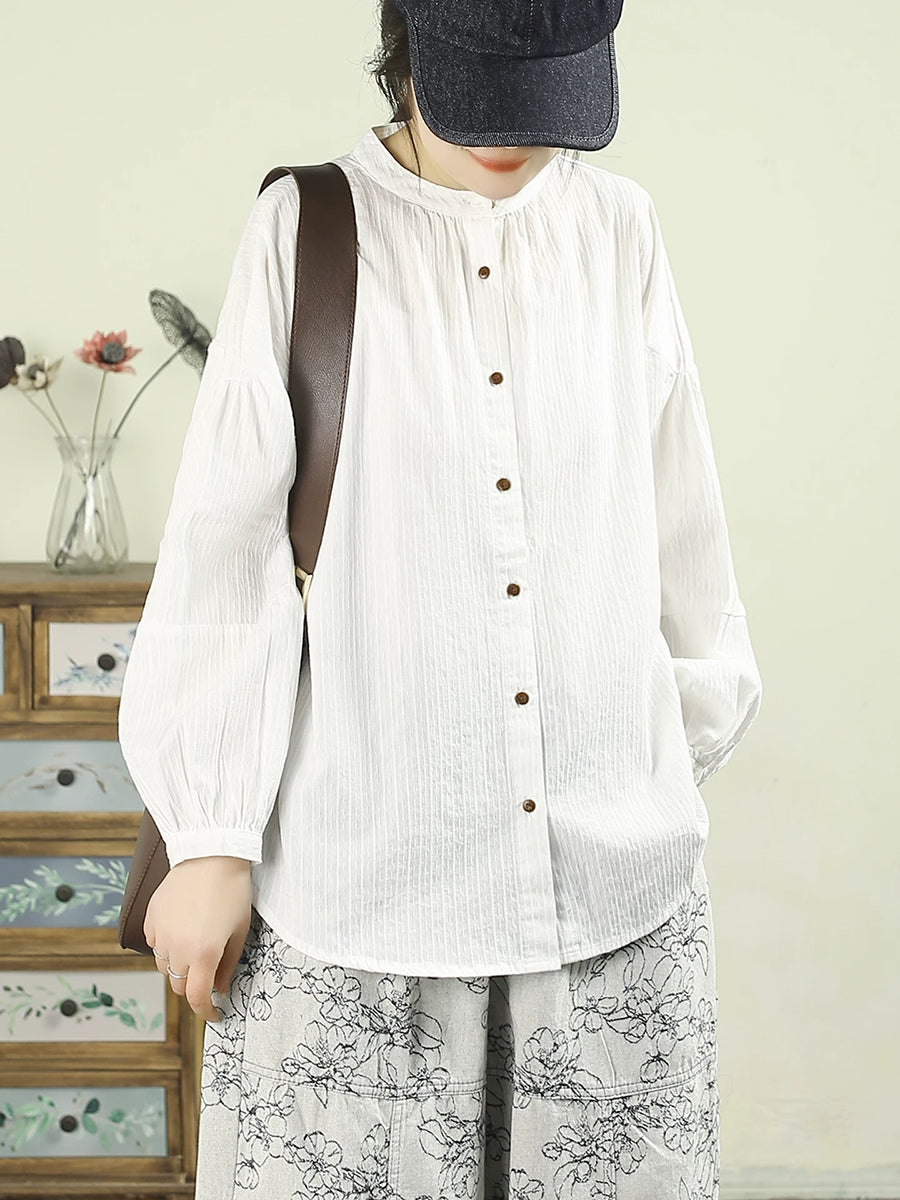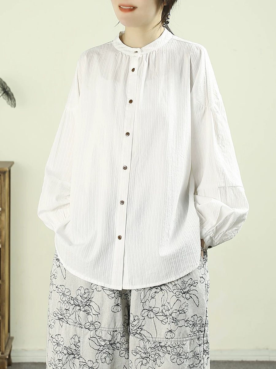 Camicia da donna primaverile in puro cotone, 100%, con colletto alto