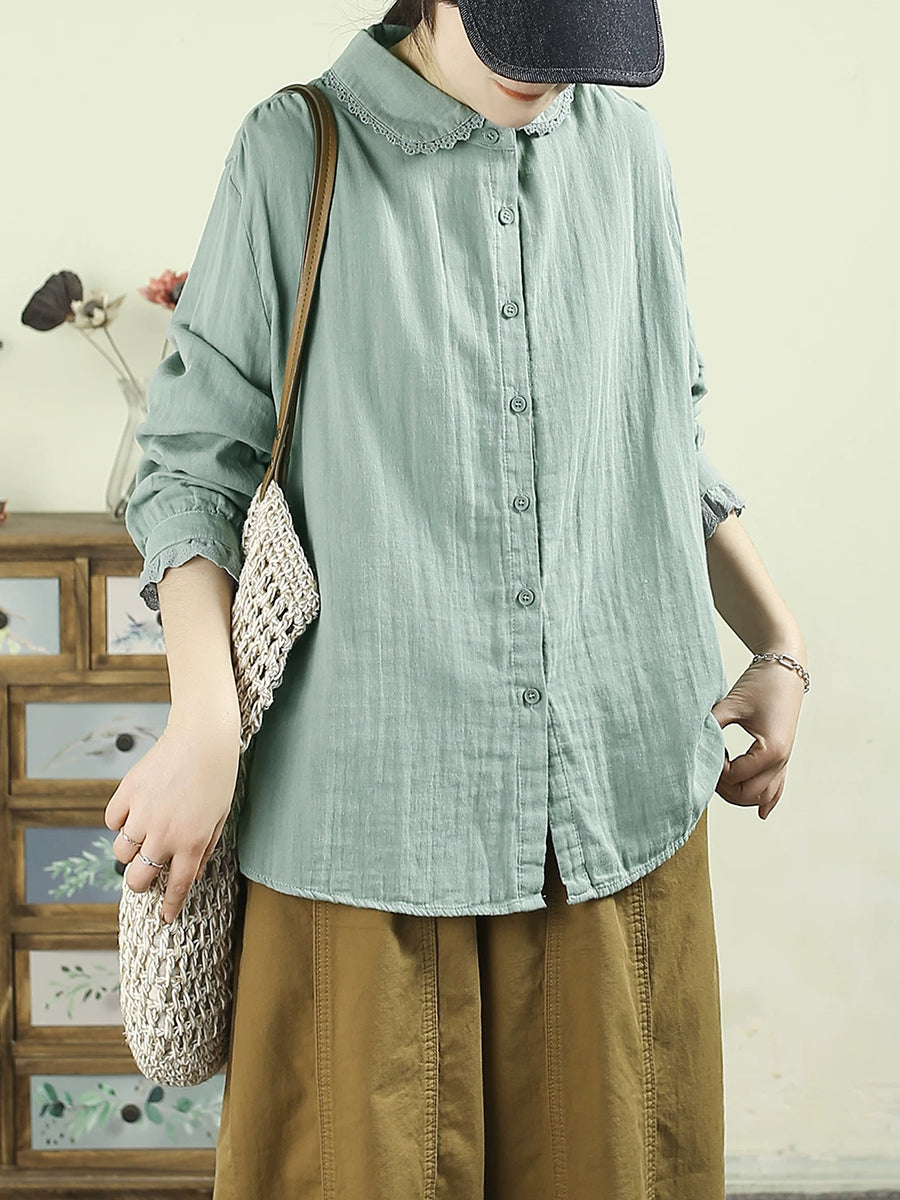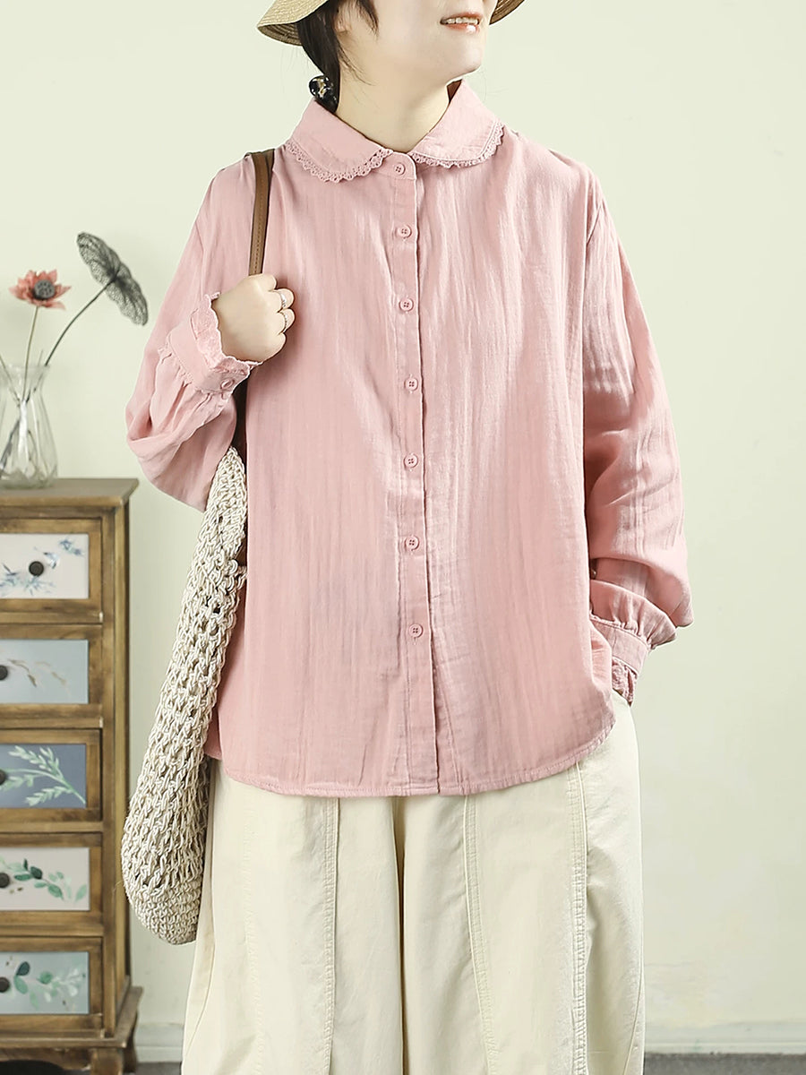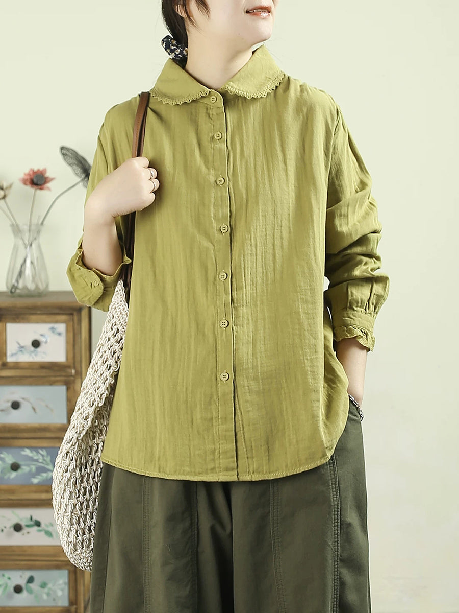 Camicia da donna primavera Artsy Pure Color 100% cotone con colletto rovesciato