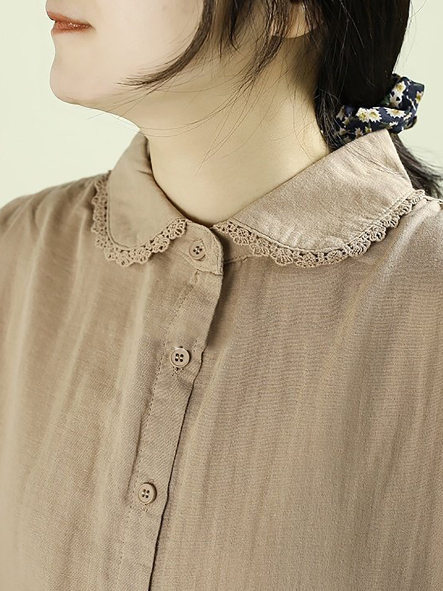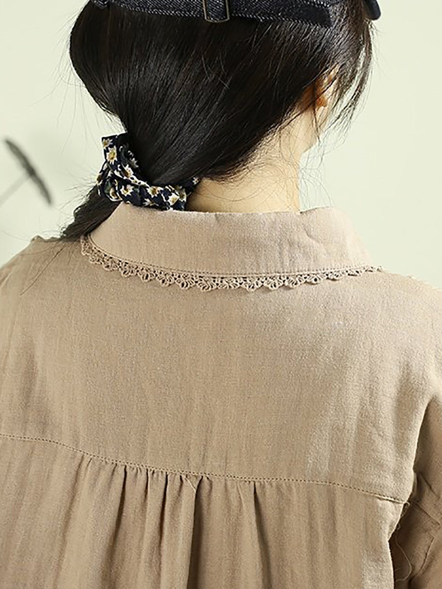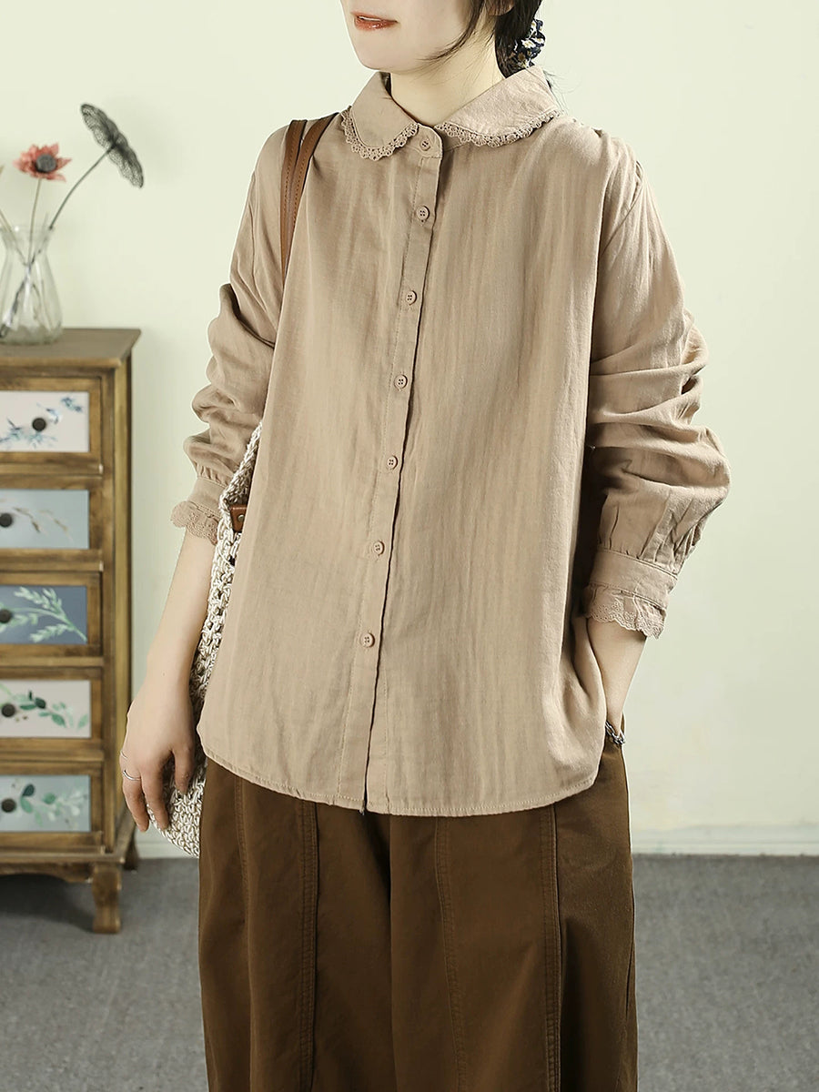 Camicia da donna primavera Artsy Pure Color 100% cotone con colletto rovesciato