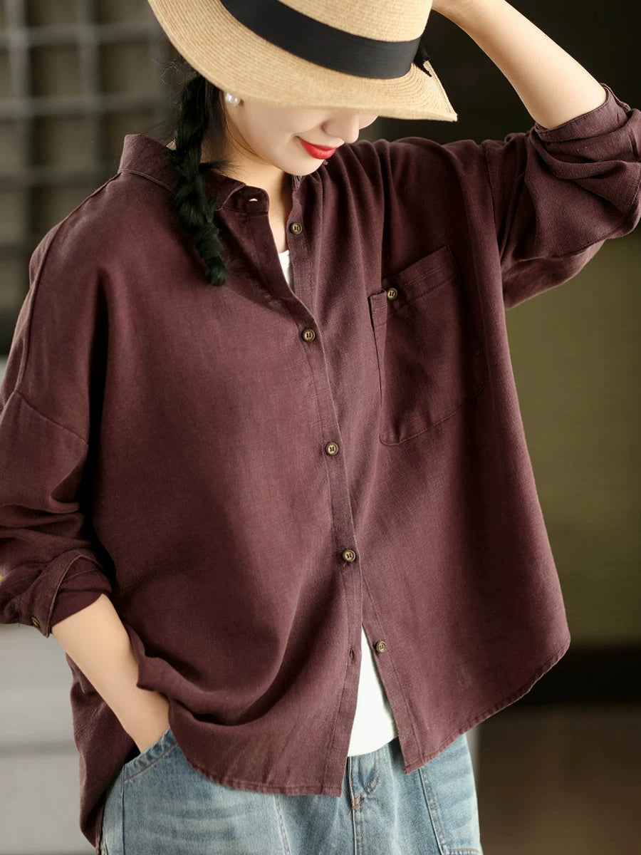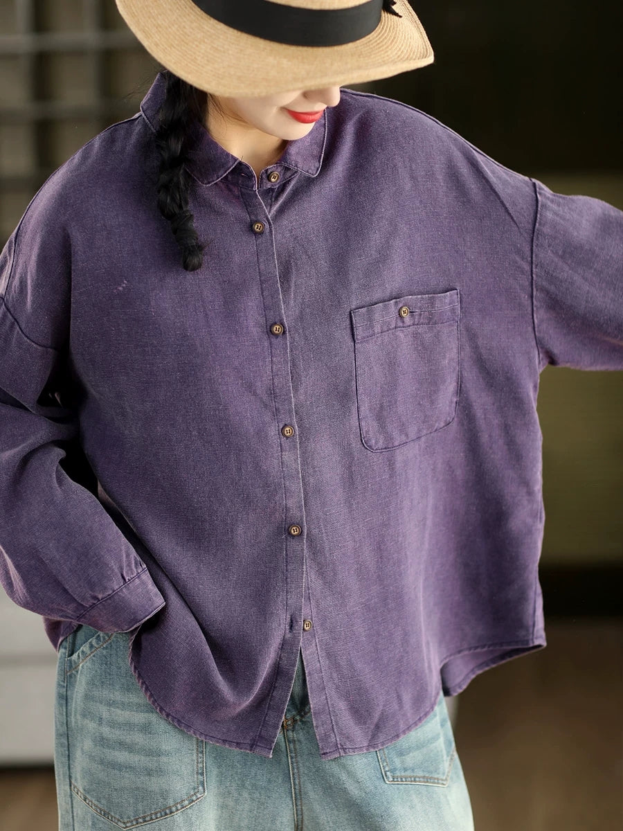 Camicia da donna primavera Artsy Pure Color 100% lino