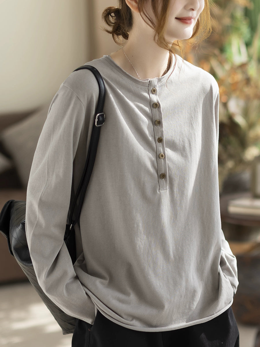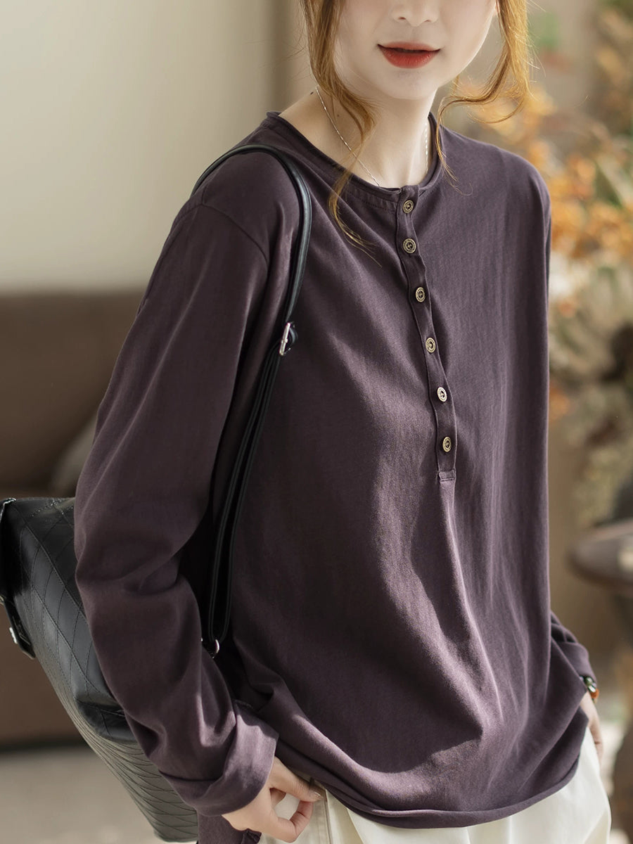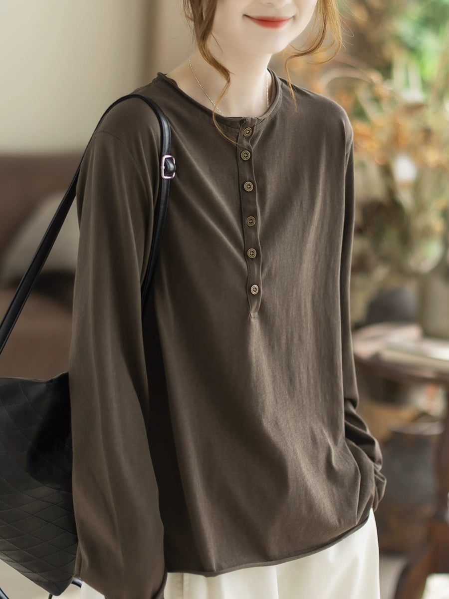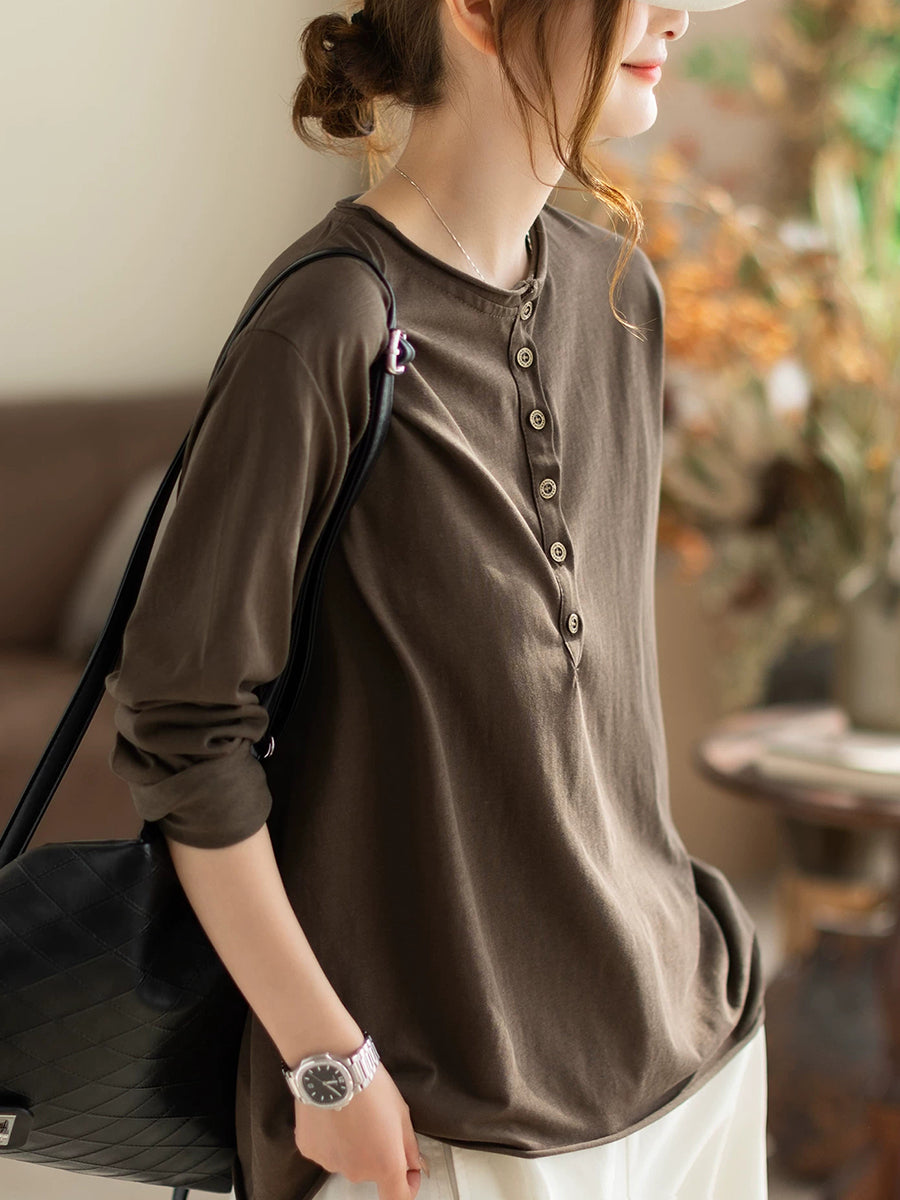 Blusa da donna primaverile in cotone con scollo a V, colore puro, stile Artsy