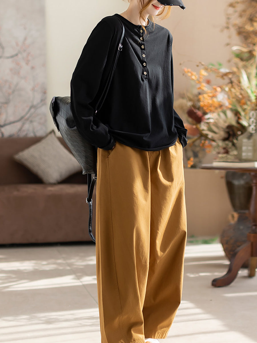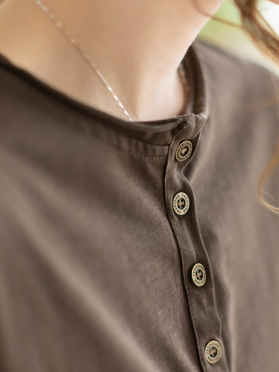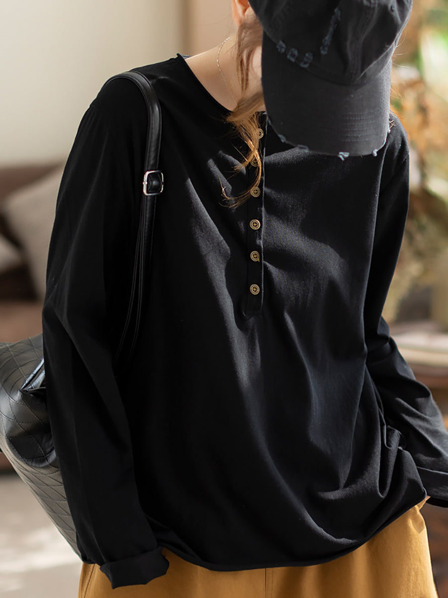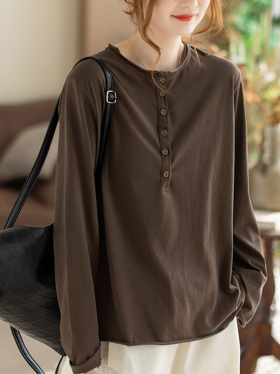 Blusa da donna primaverile in cotone con scollo a V, colore puro, stile Artsy