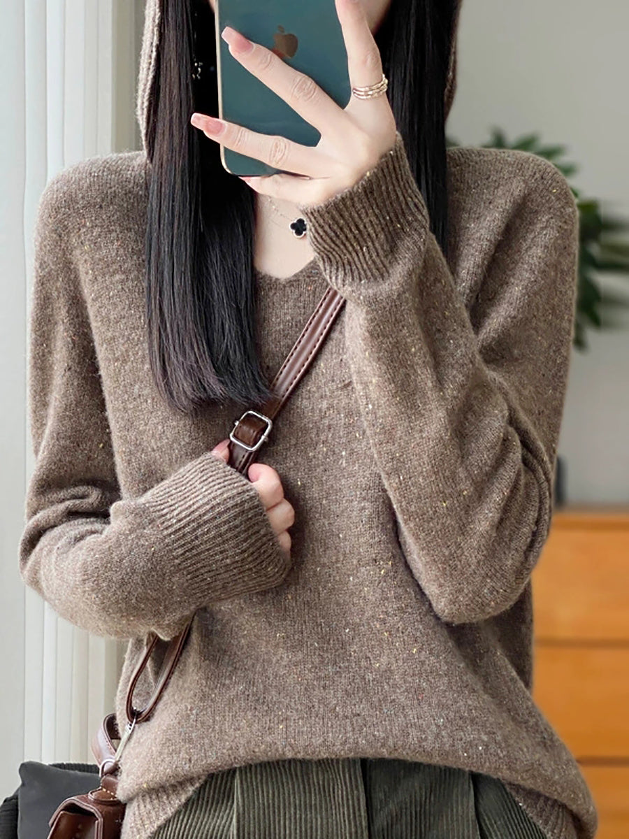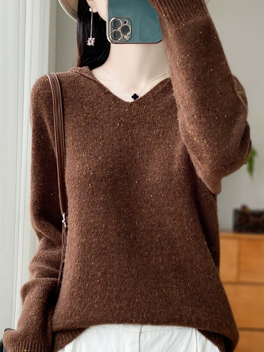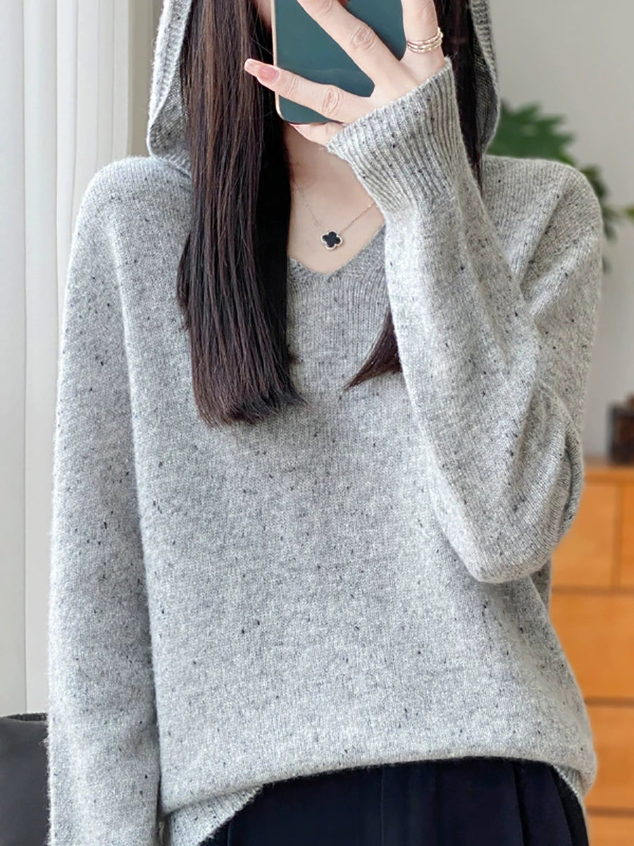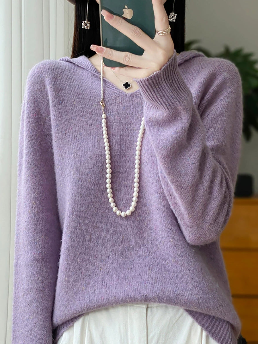 Maglione con cappuccio in lana color puro, stile artistico, da donna