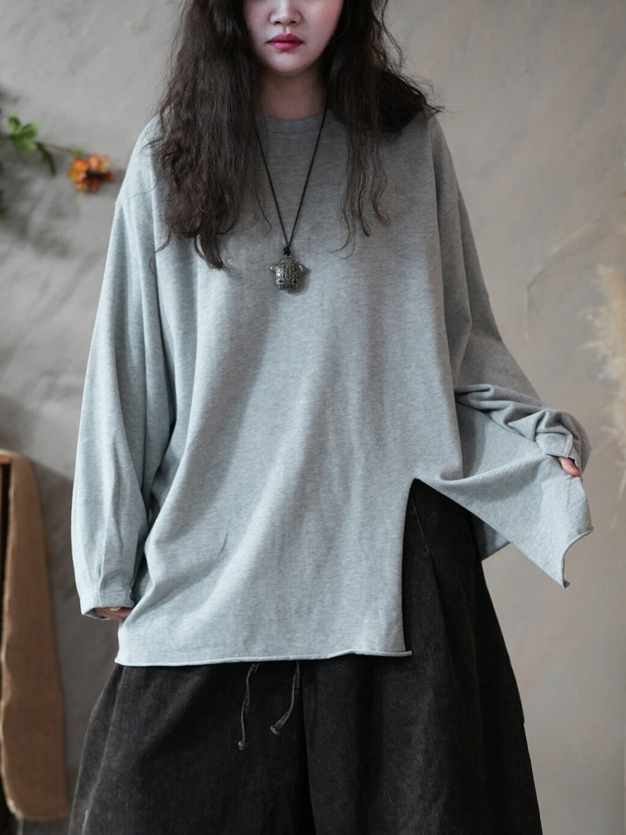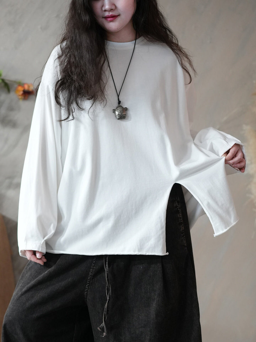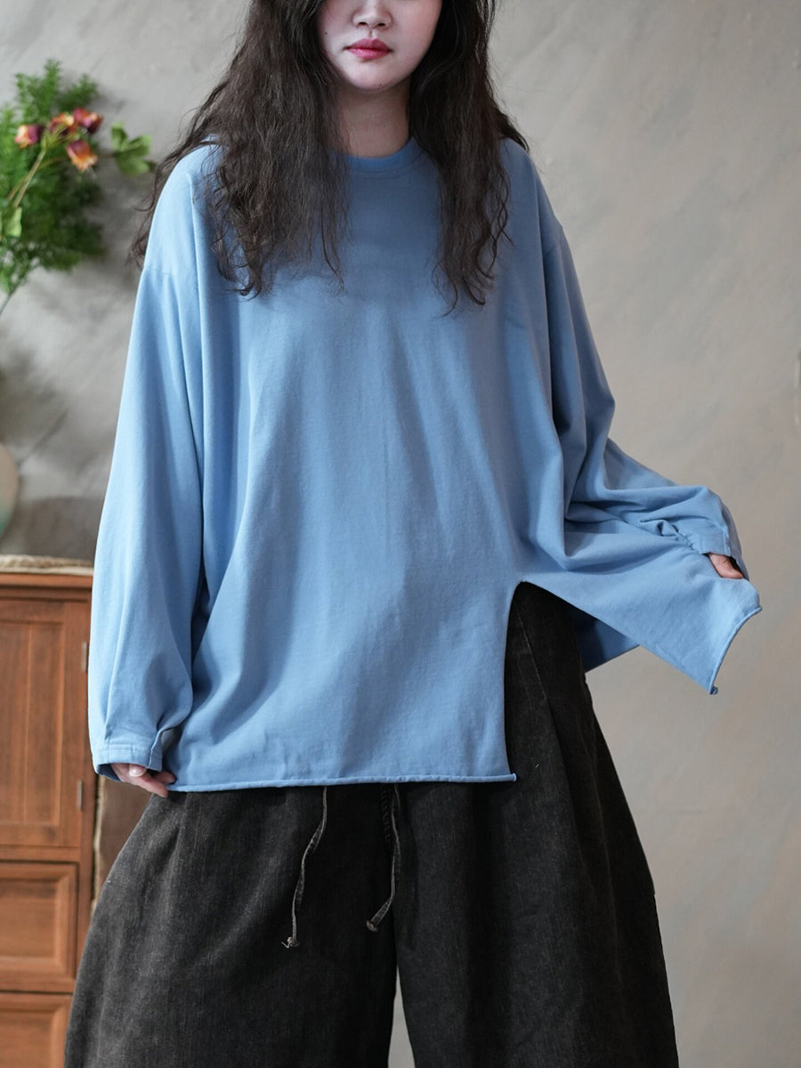 Blusa da donna primaverile con scollo a V e orlo diviso, colore puro e artistico