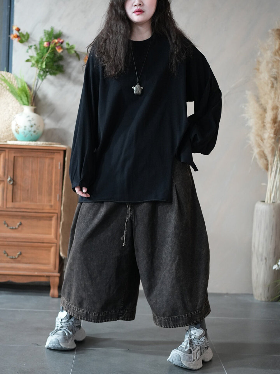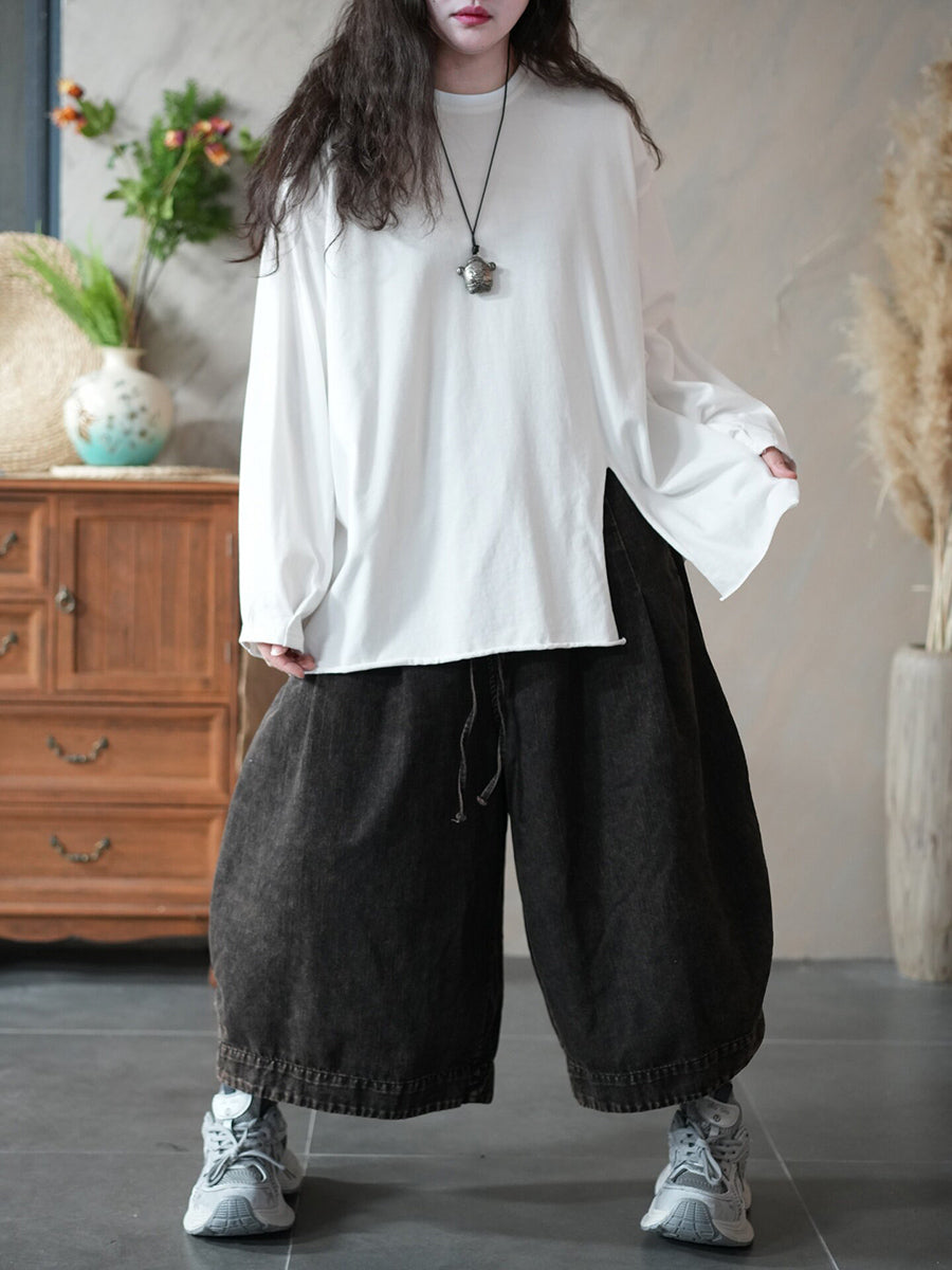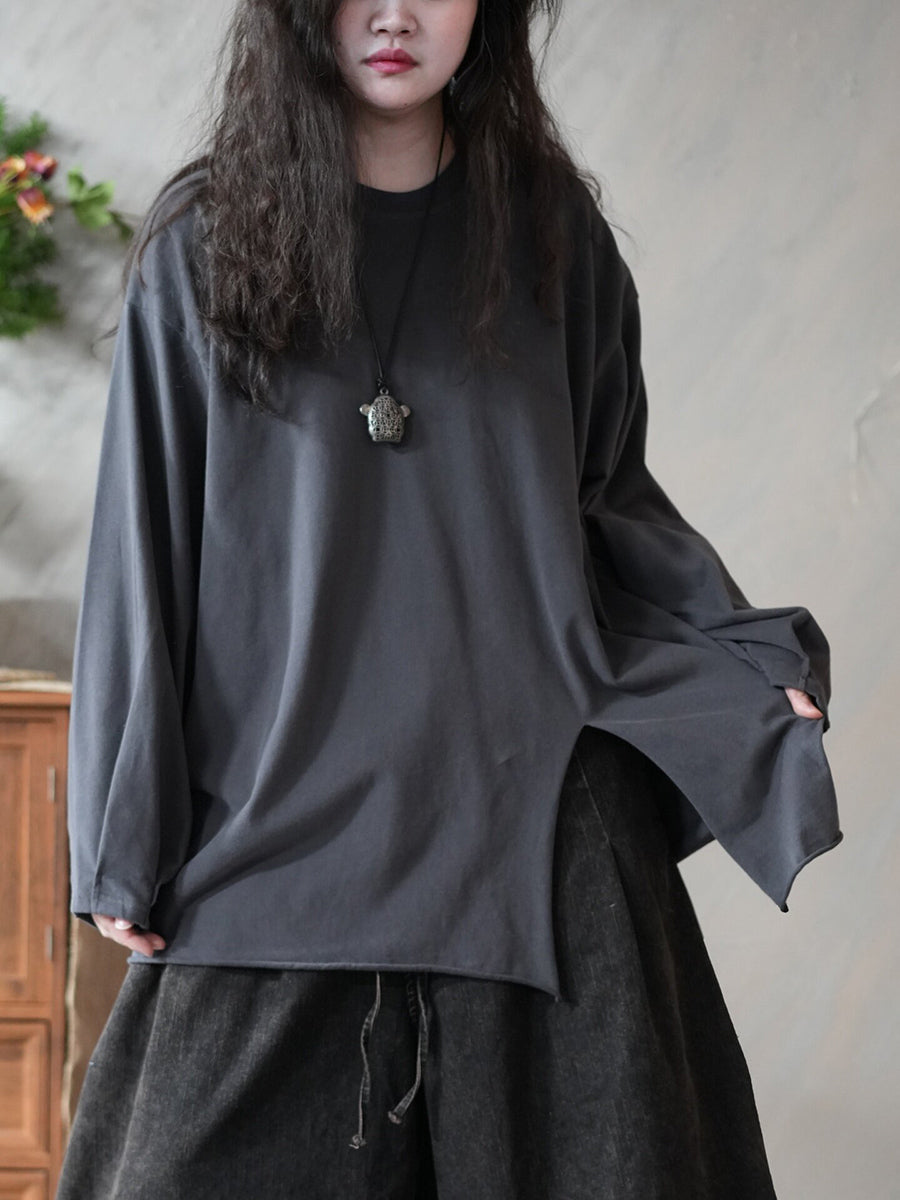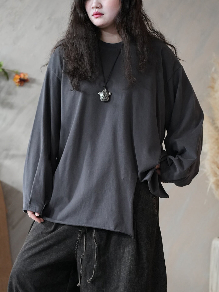 Blusa da donna primaverile con scollo a V e orlo diviso, colore puro e artistico