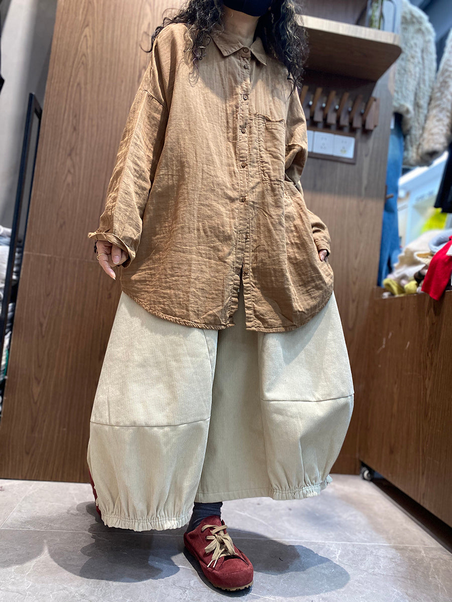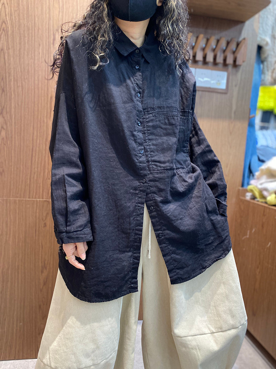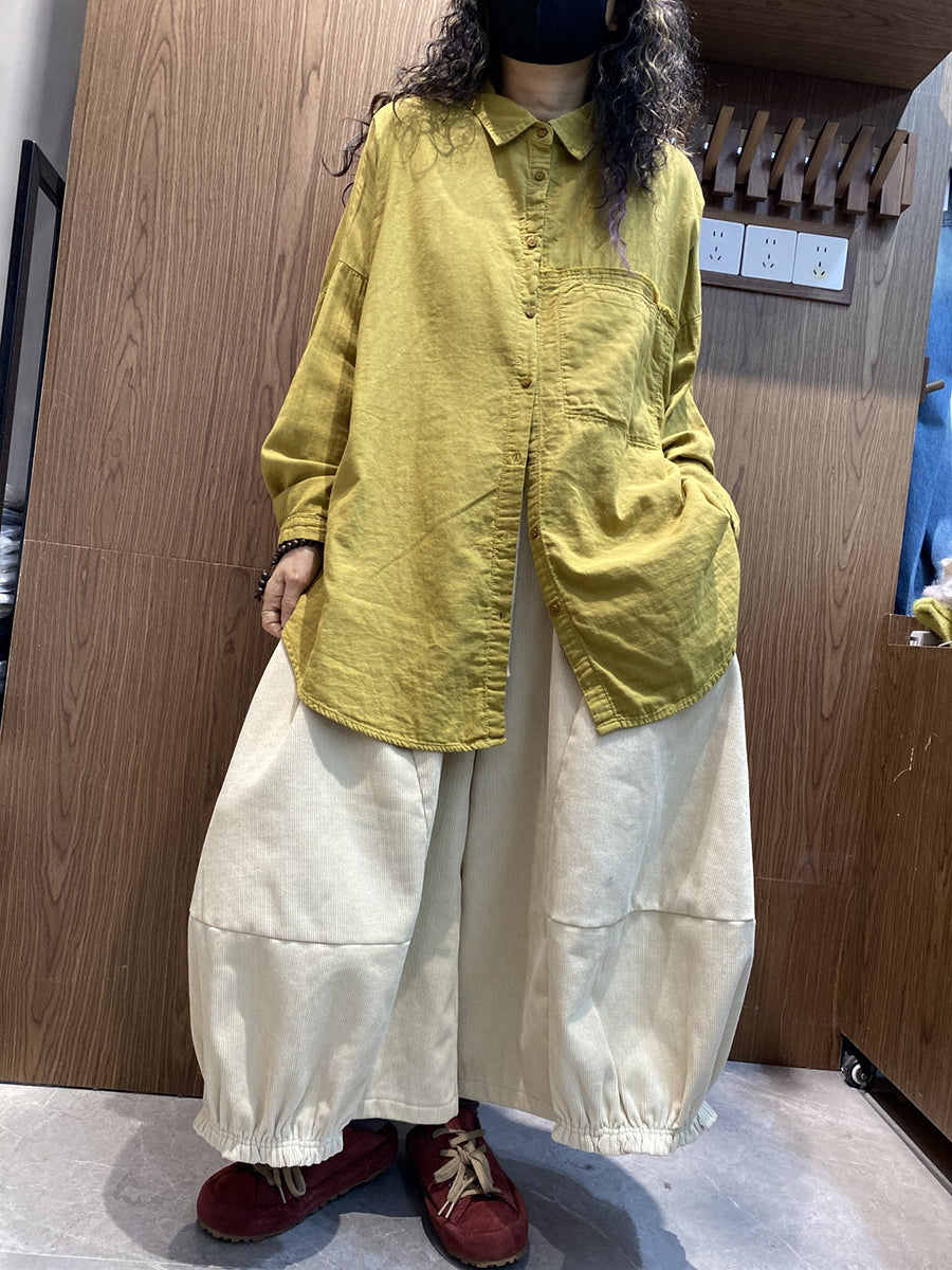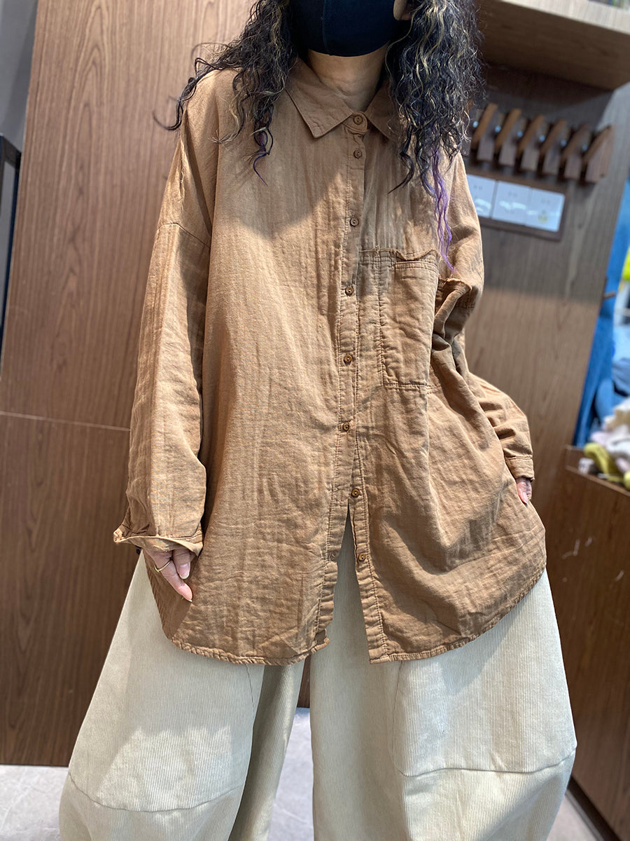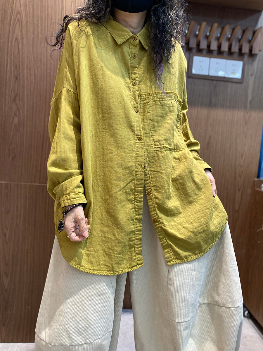 Camicia da donna primaverile con colletto rovesciato, colore puro e artistico