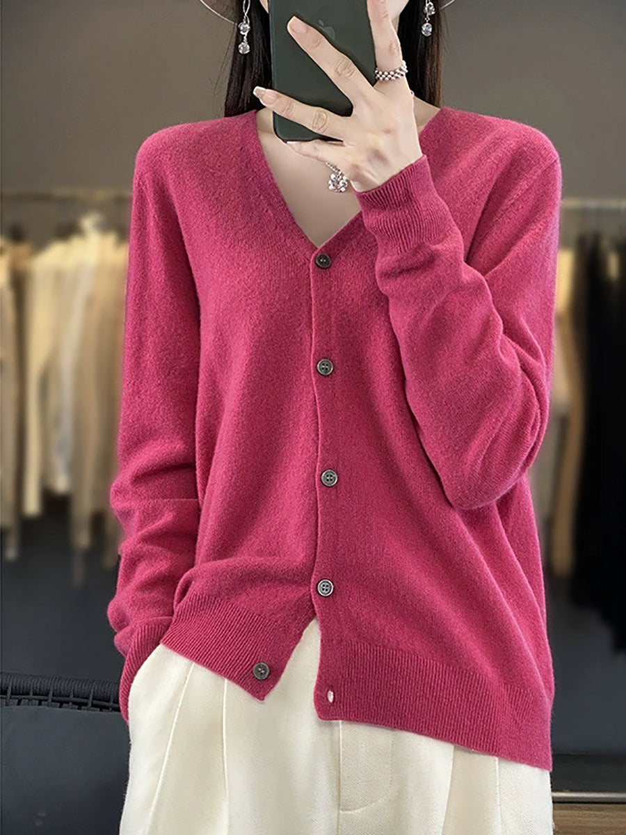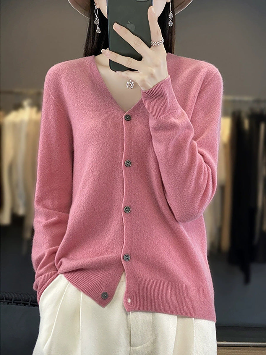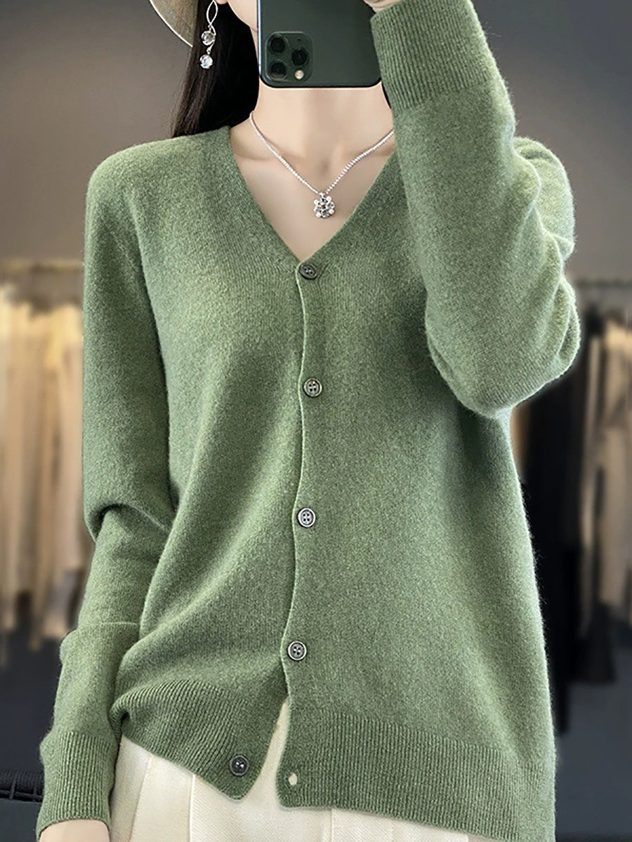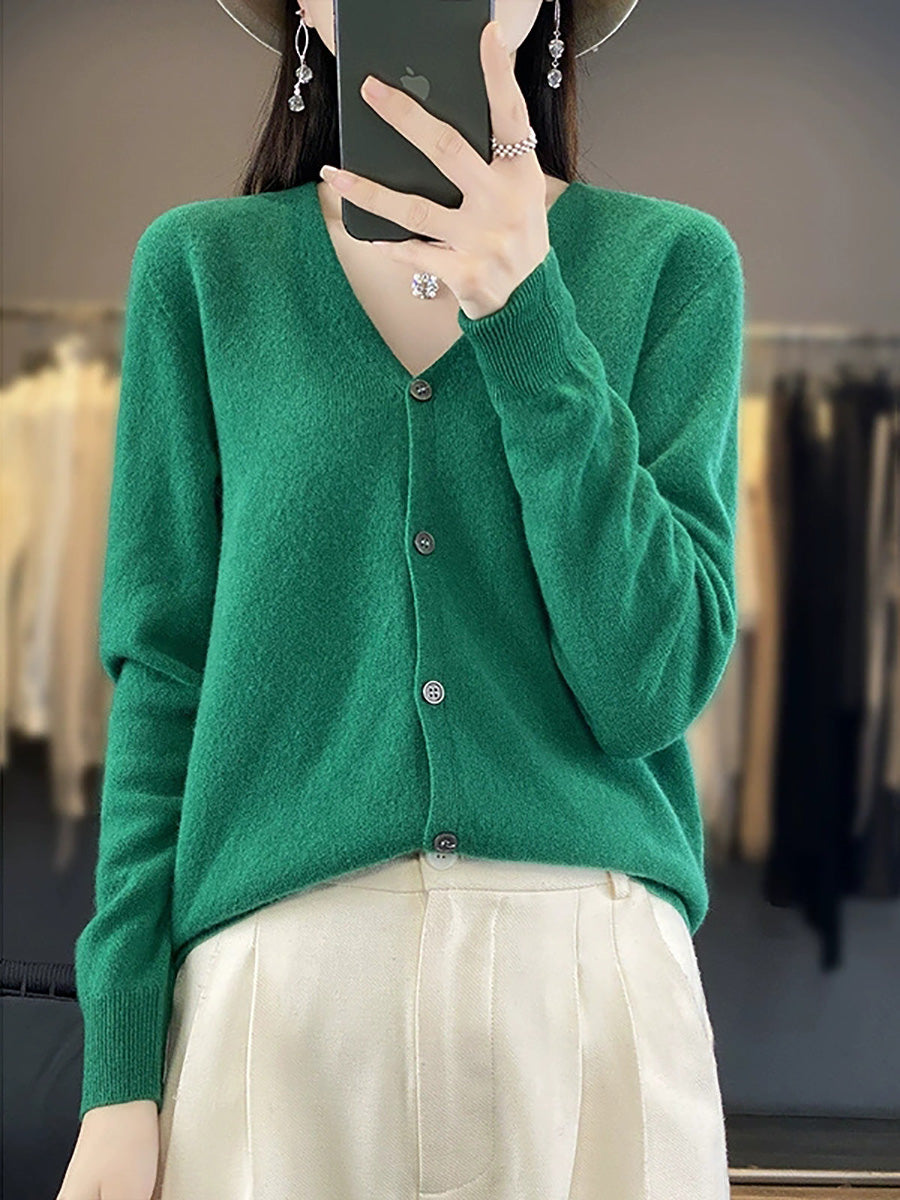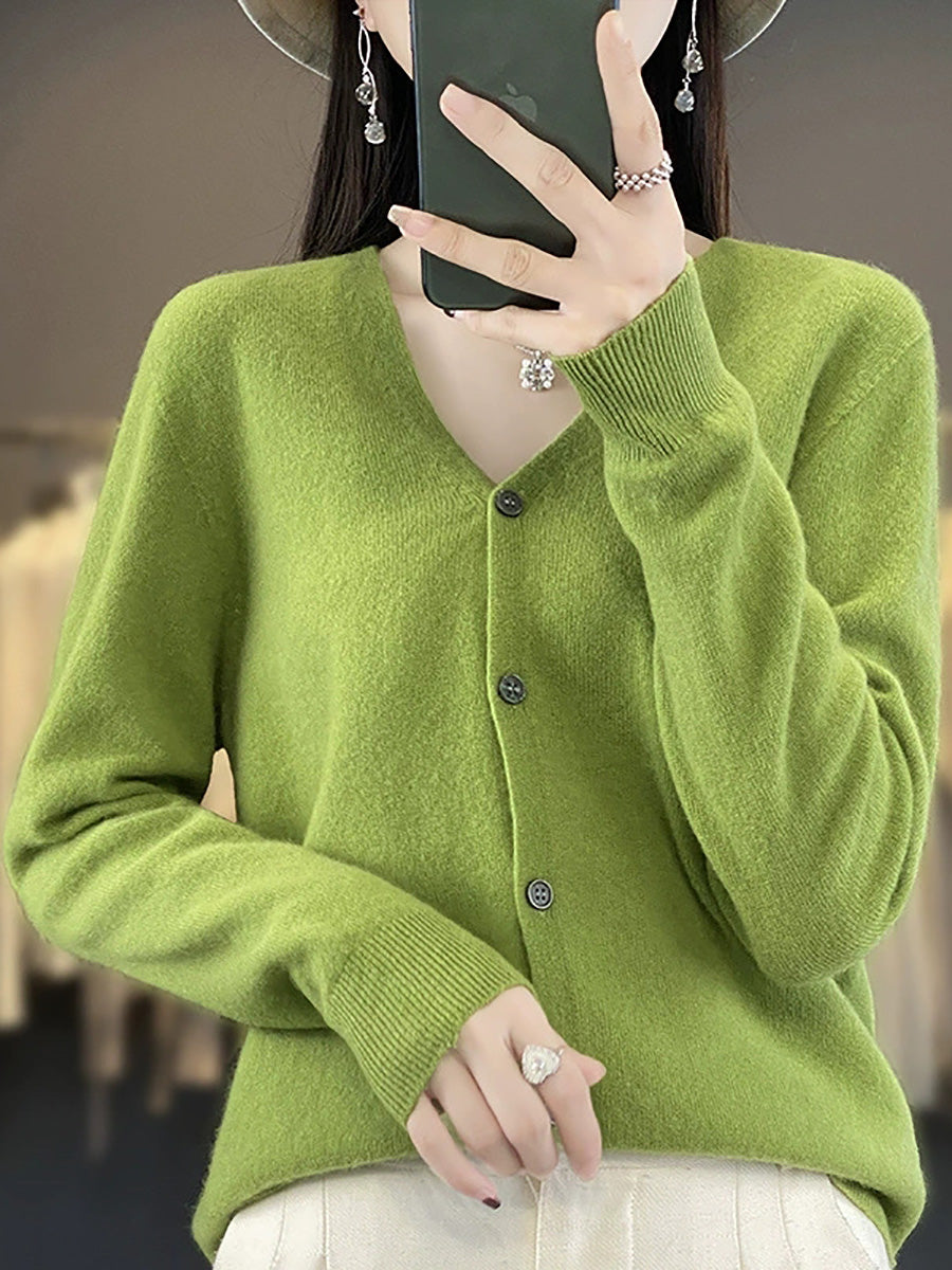 Cardigan con scollo a V, colore puro, da donna, primaverile, artistico
