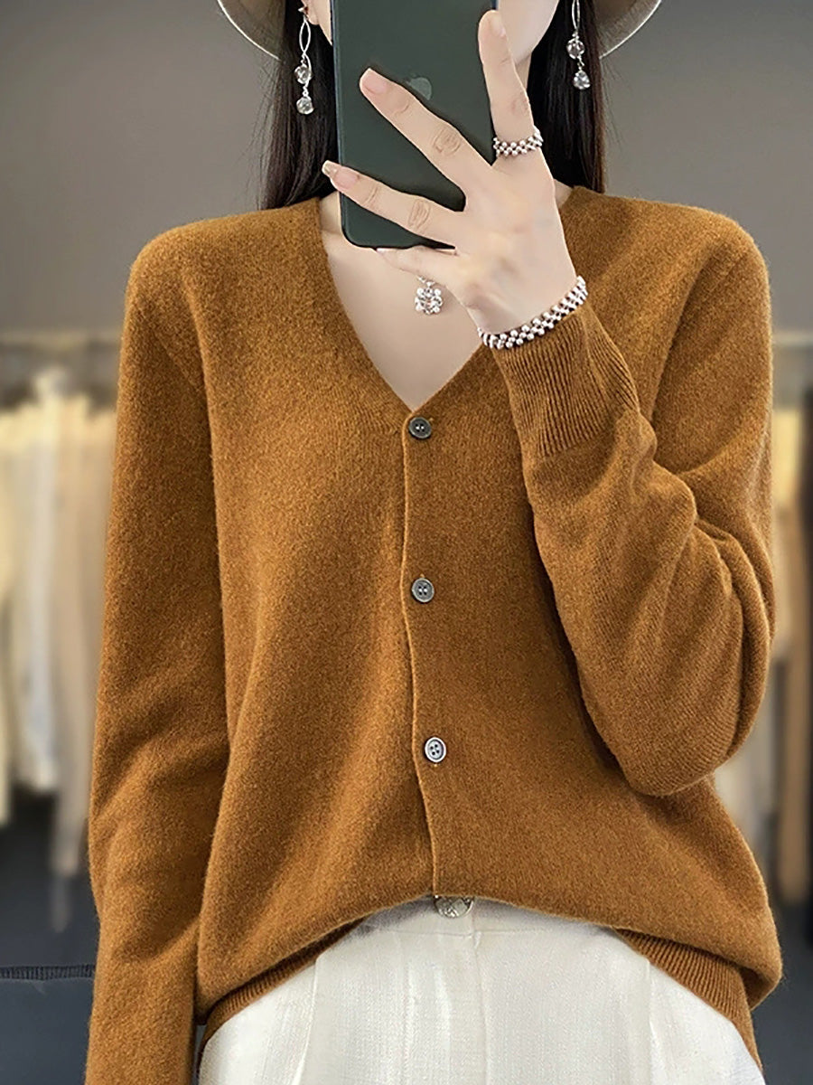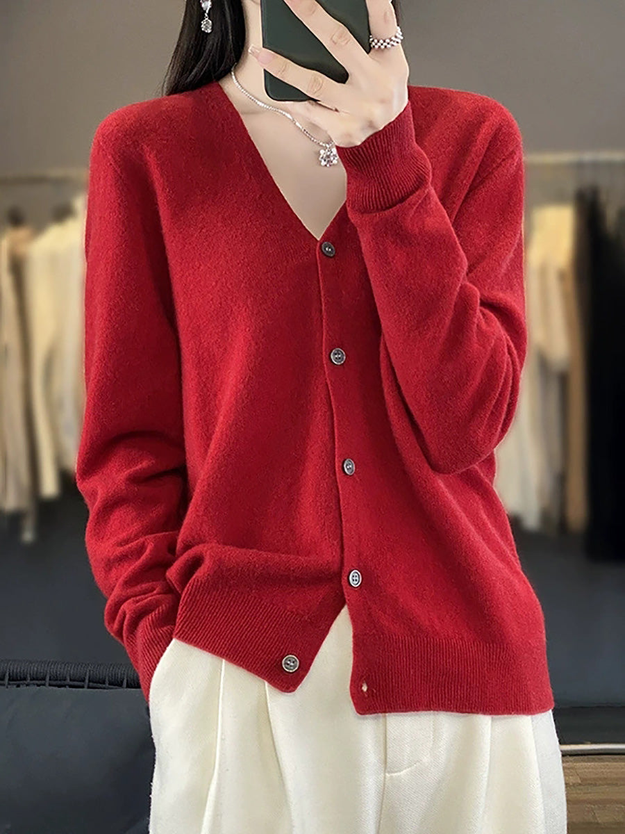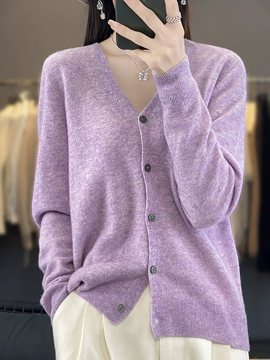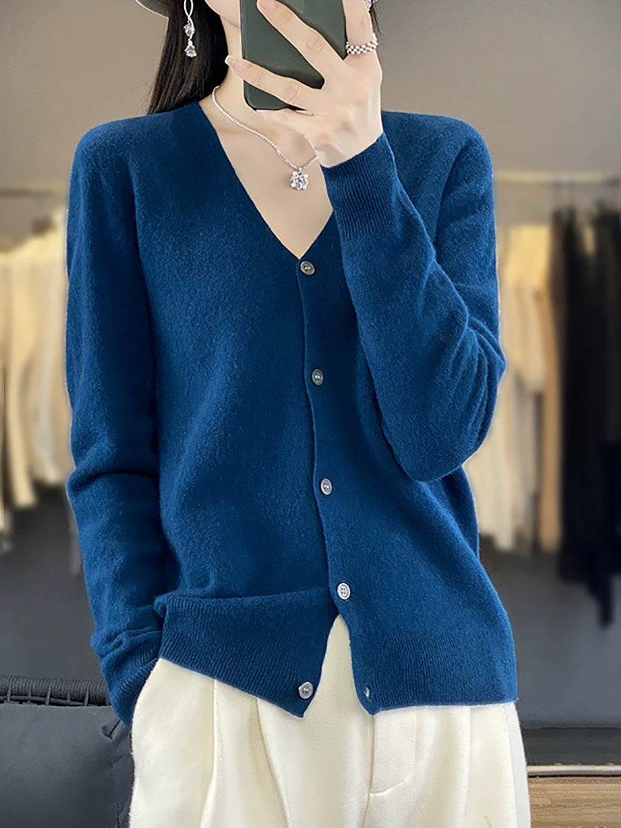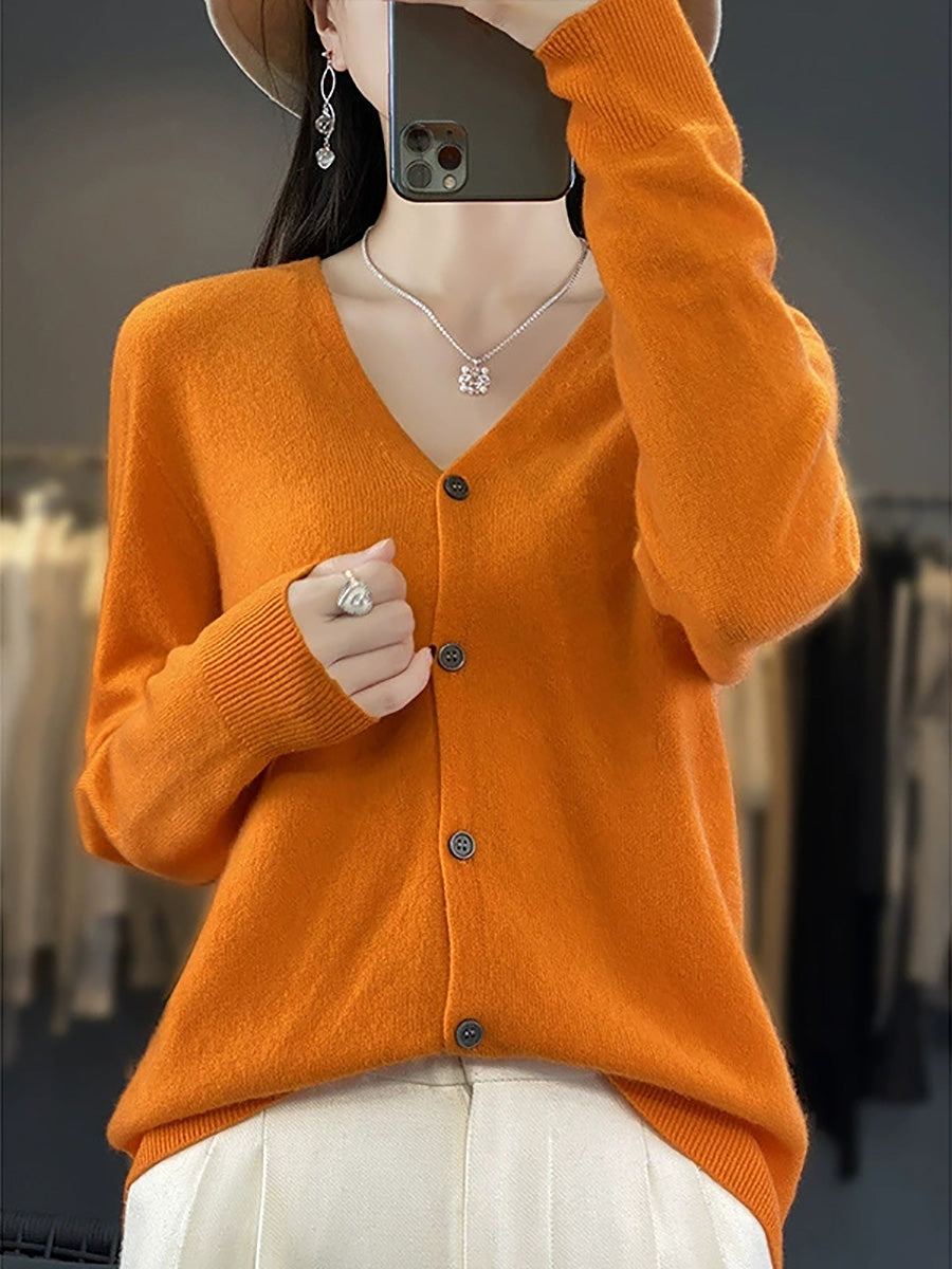 Cardigan con scollo a V, colore puro, da donna, primaverile, artistico