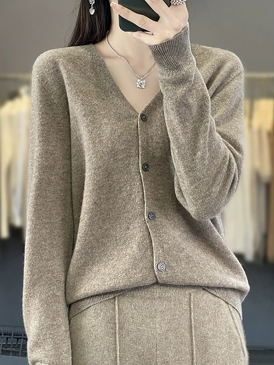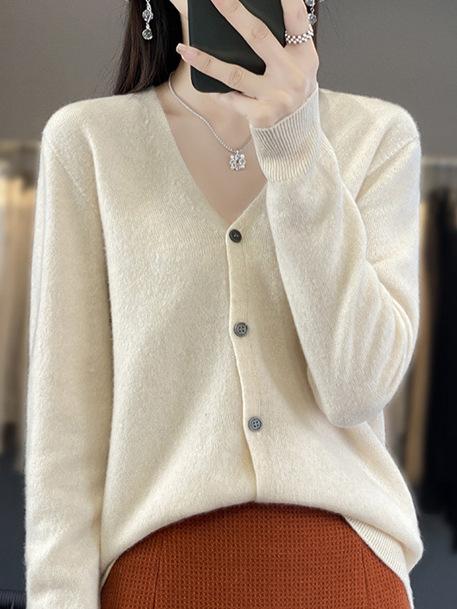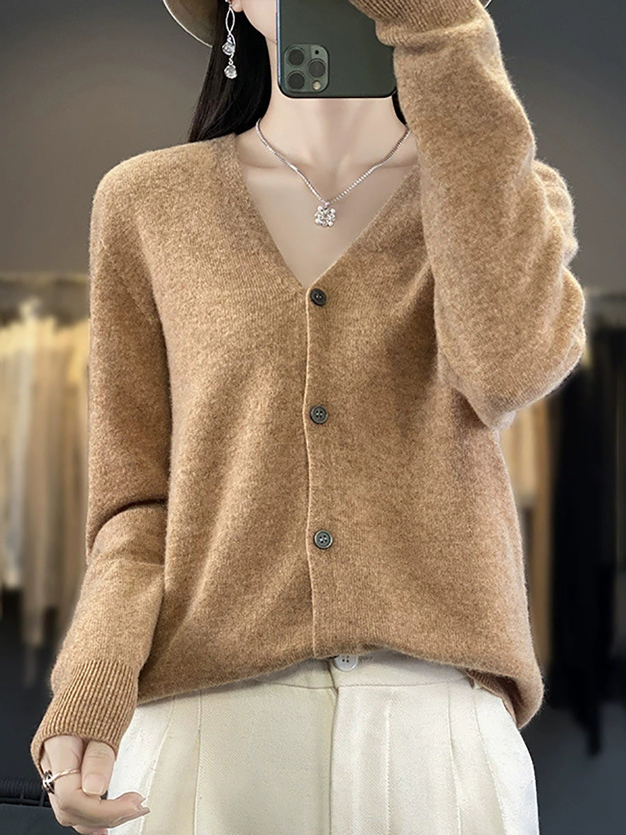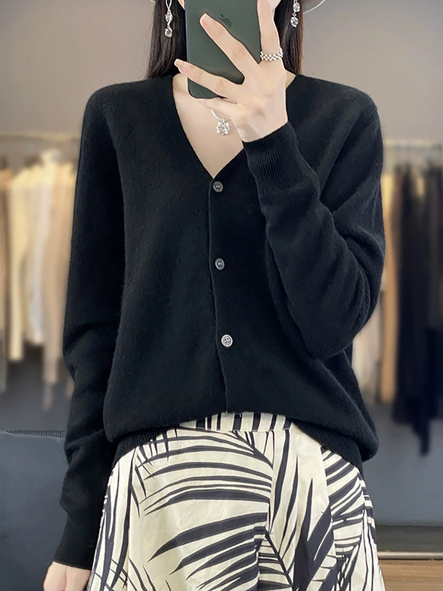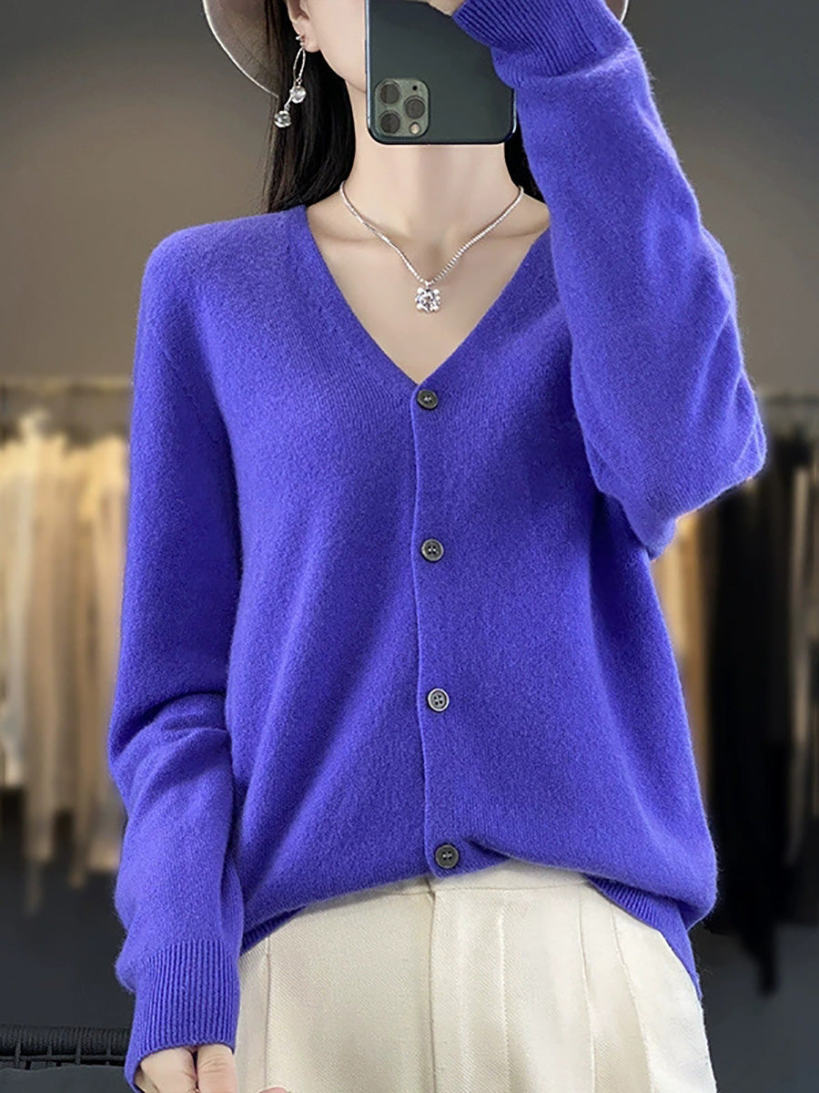 Cardigan con scollo a V, colore puro, da donna, primaverile, artistico