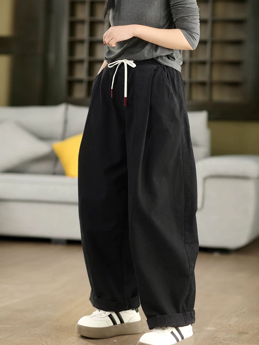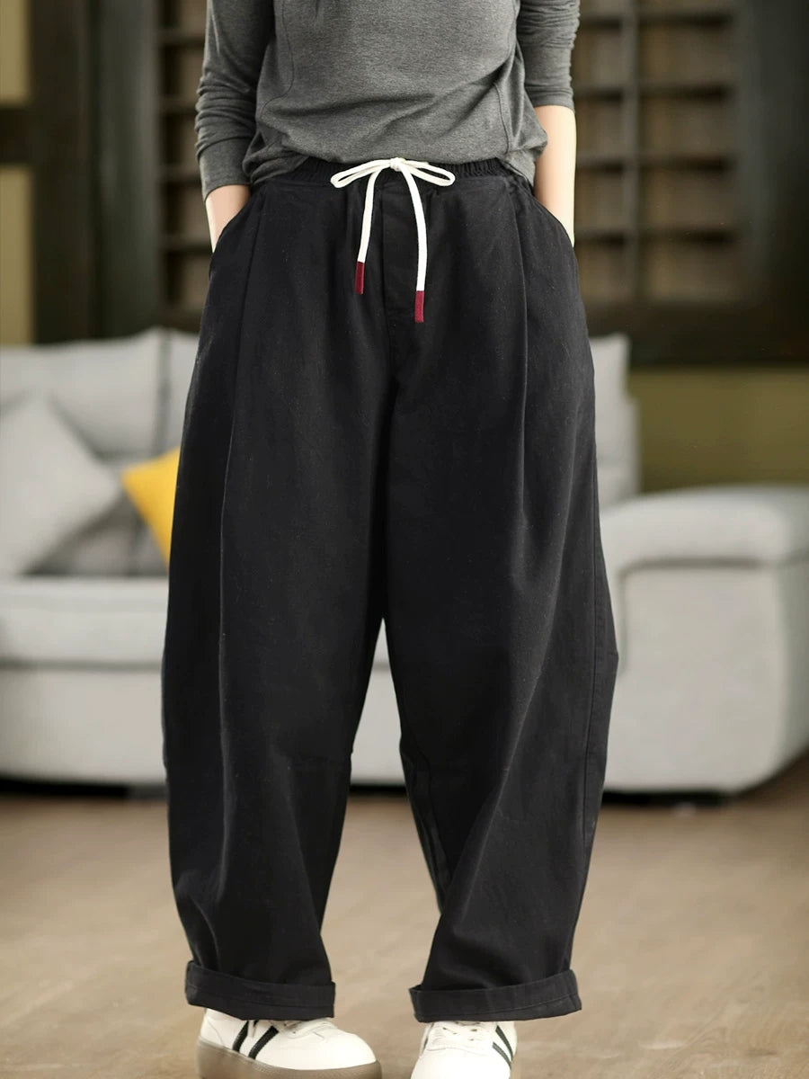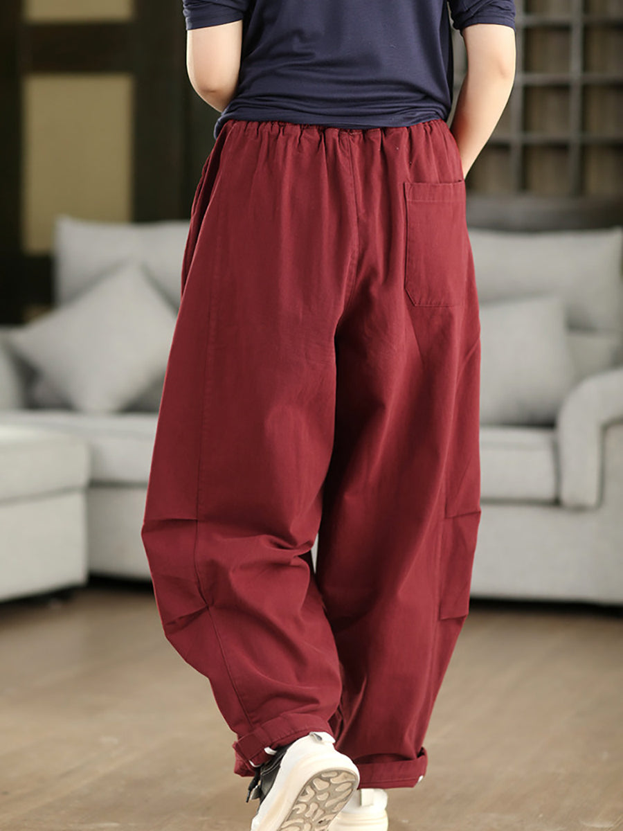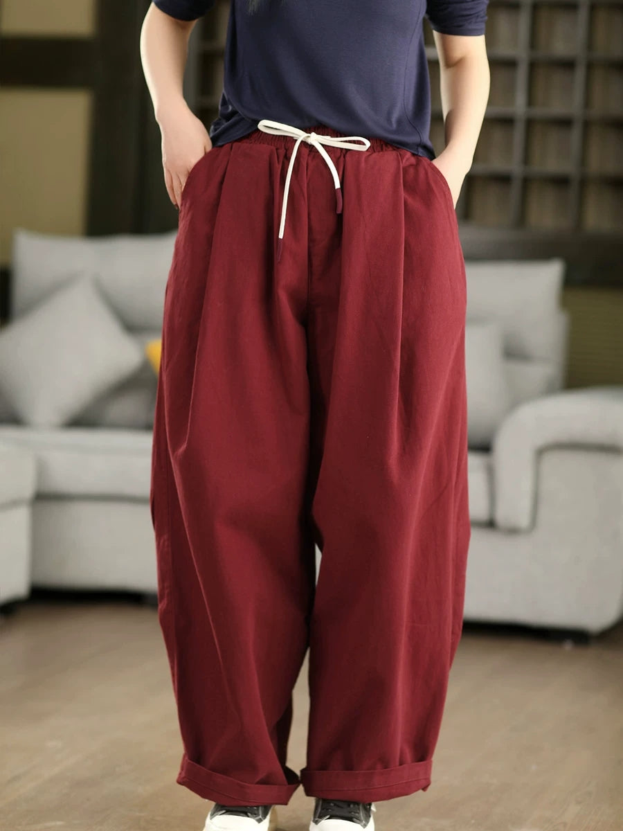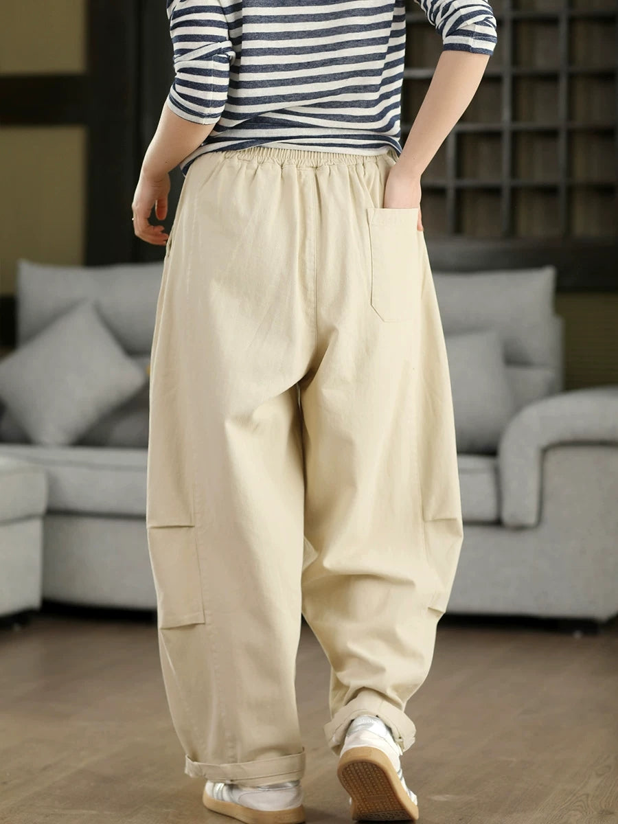 Pantaloni harem da donna, casual, primaverili, in puro cotone, 100%, colore puro