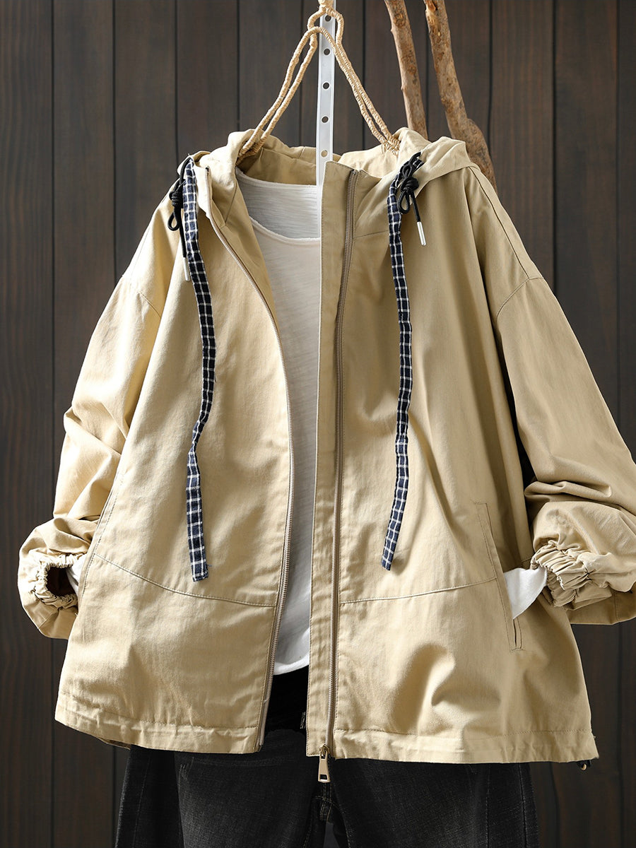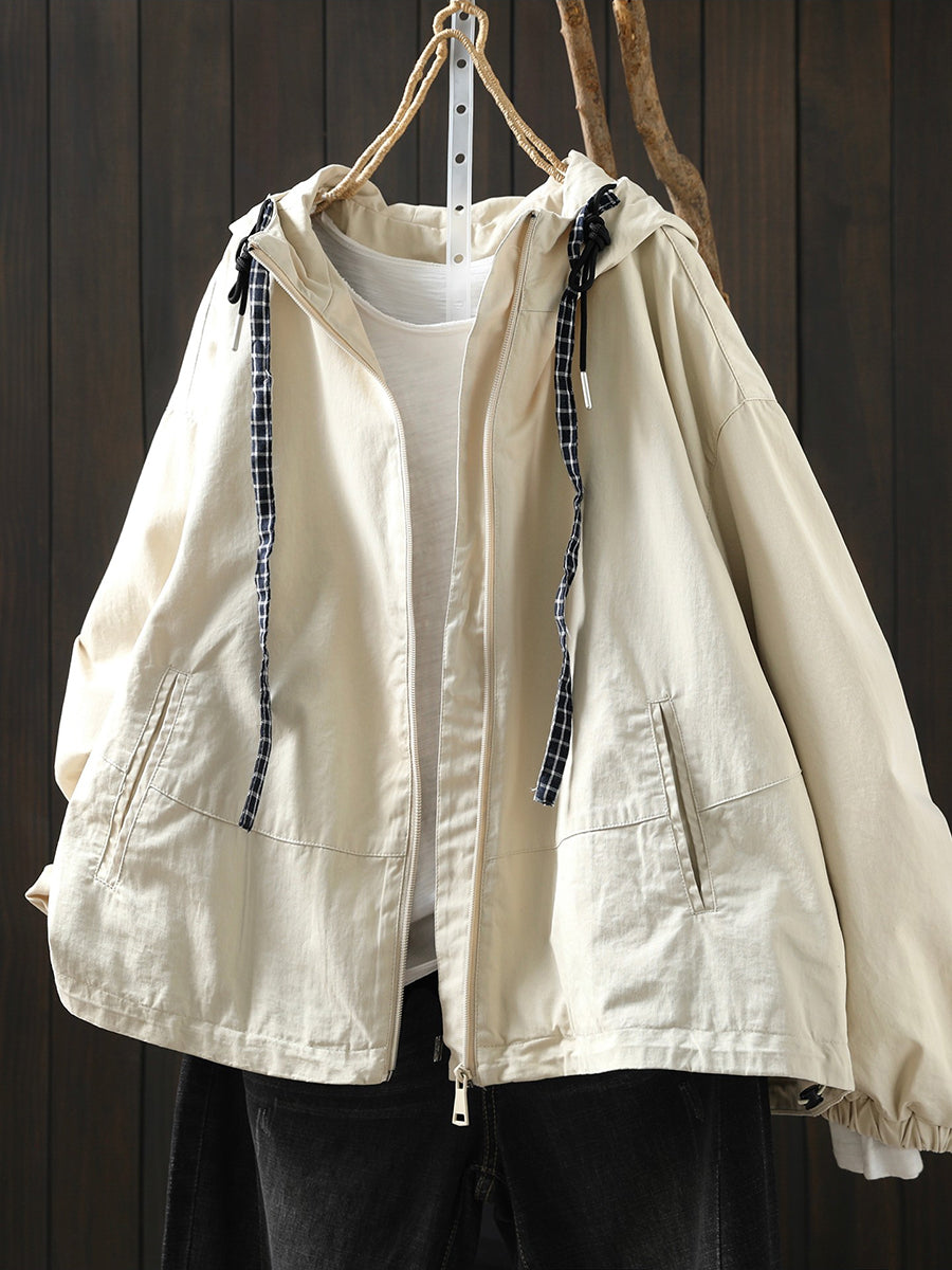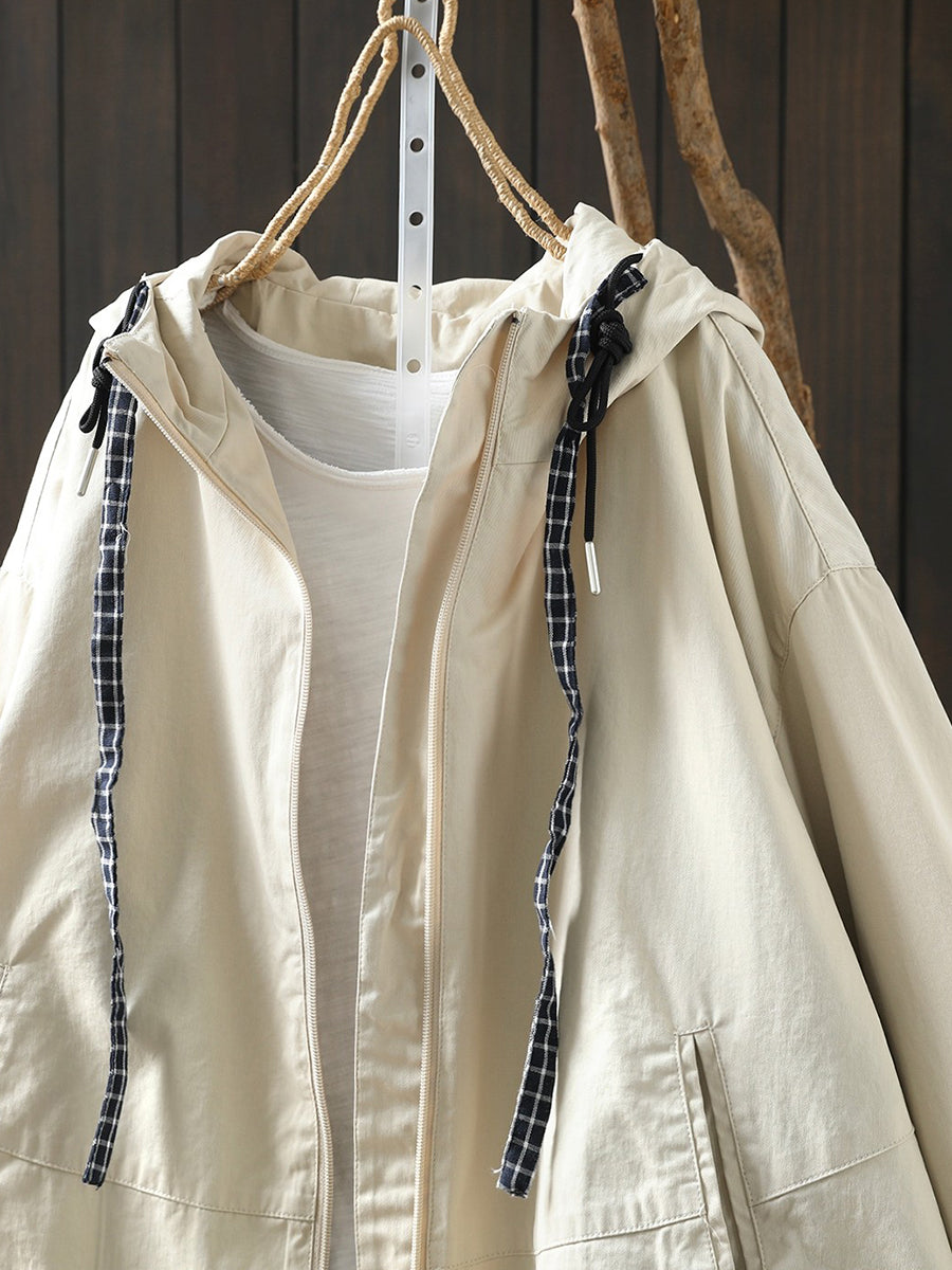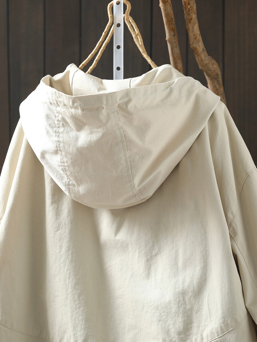 Cappotto con cappuccio casual primaverile da donna in 100% cotone, colore puro