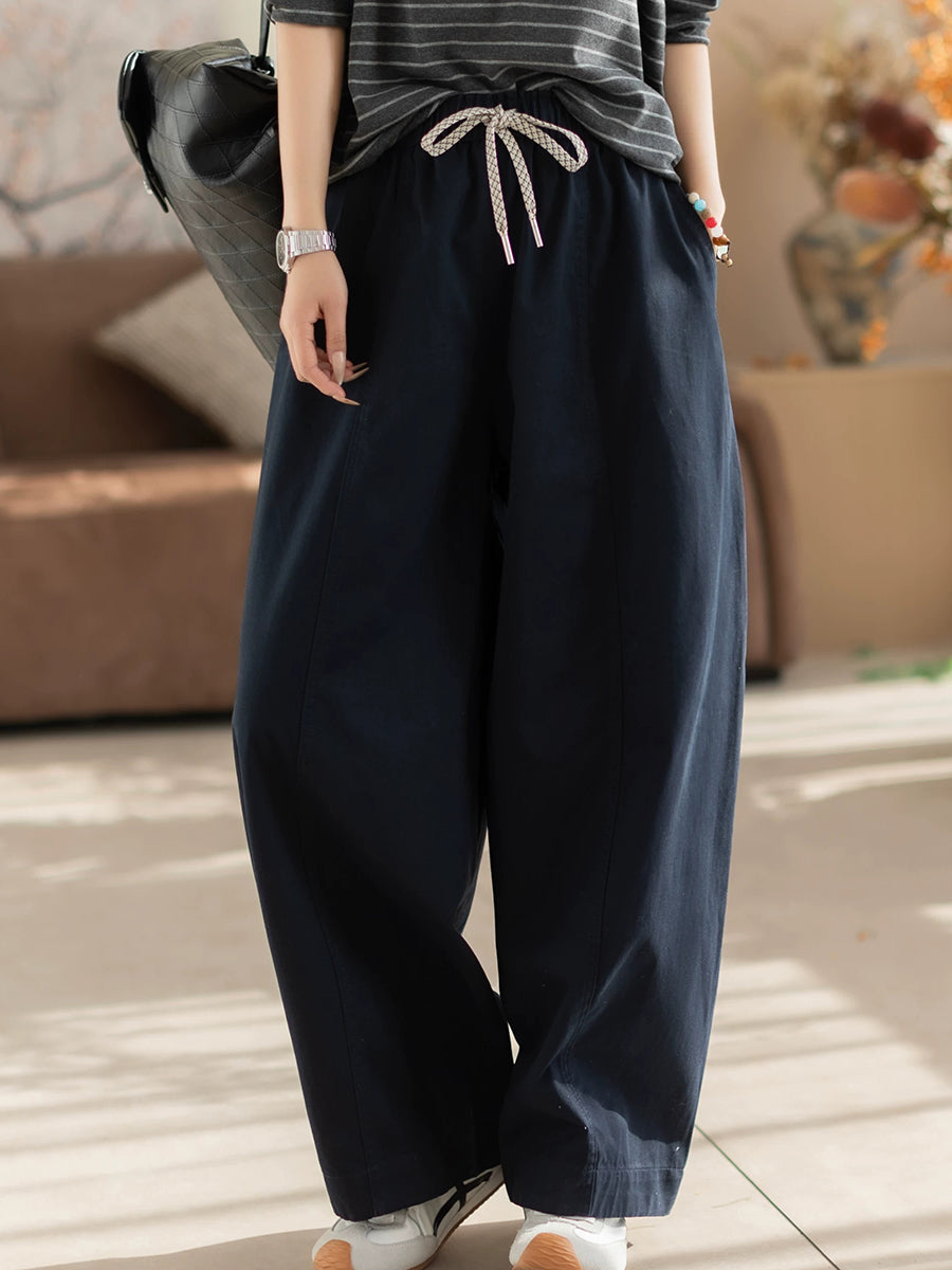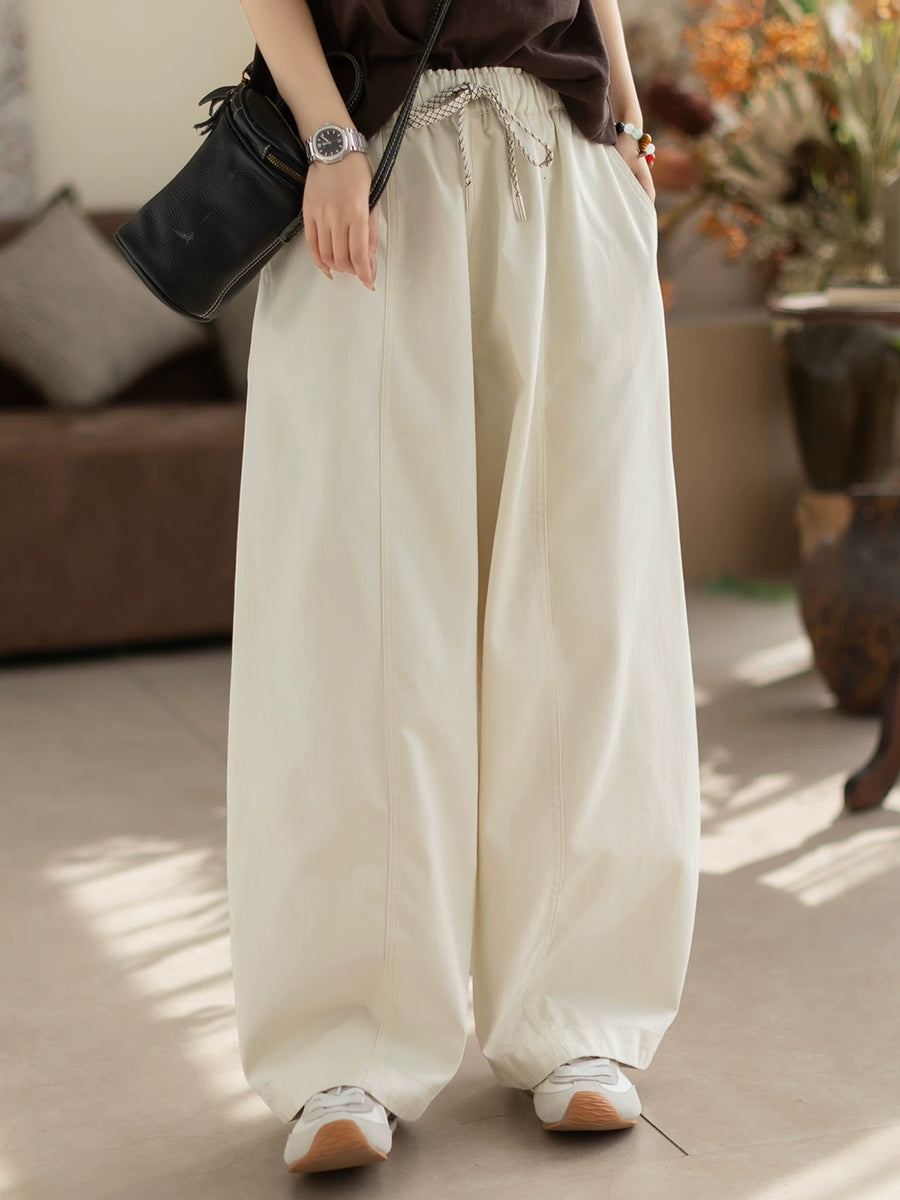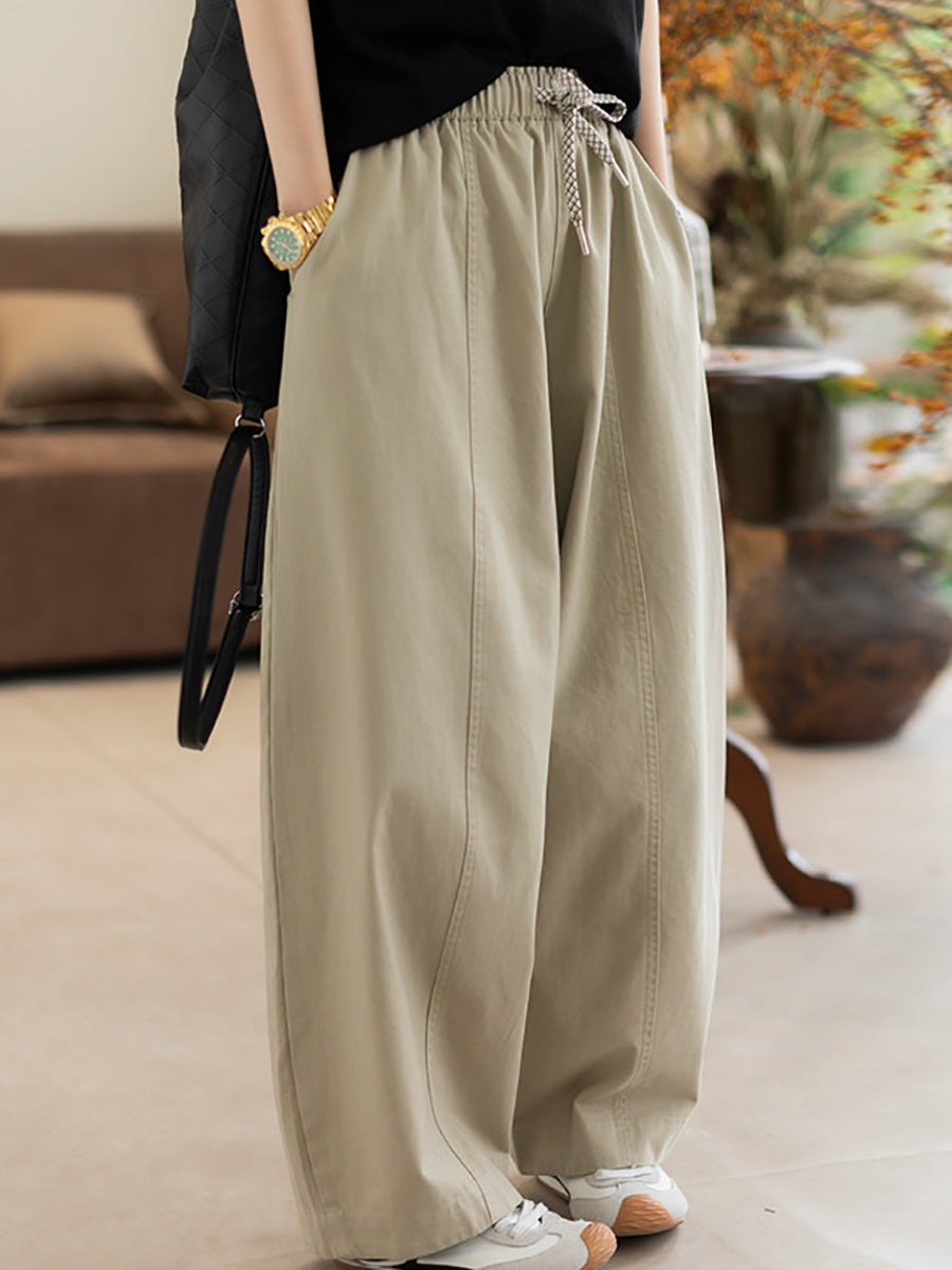 Pantaloni dritti da donna, casual, primaverili, in puro cotone, 100%, colore puro