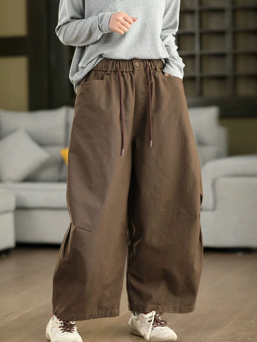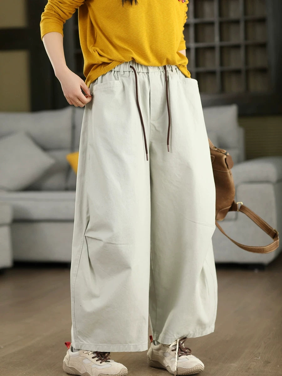 Pantaloni dritti da donna, casual, primaverili, in puro cotone, 100%, colore puro