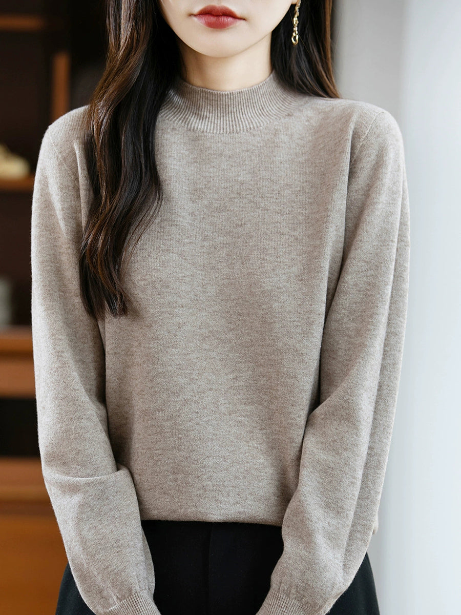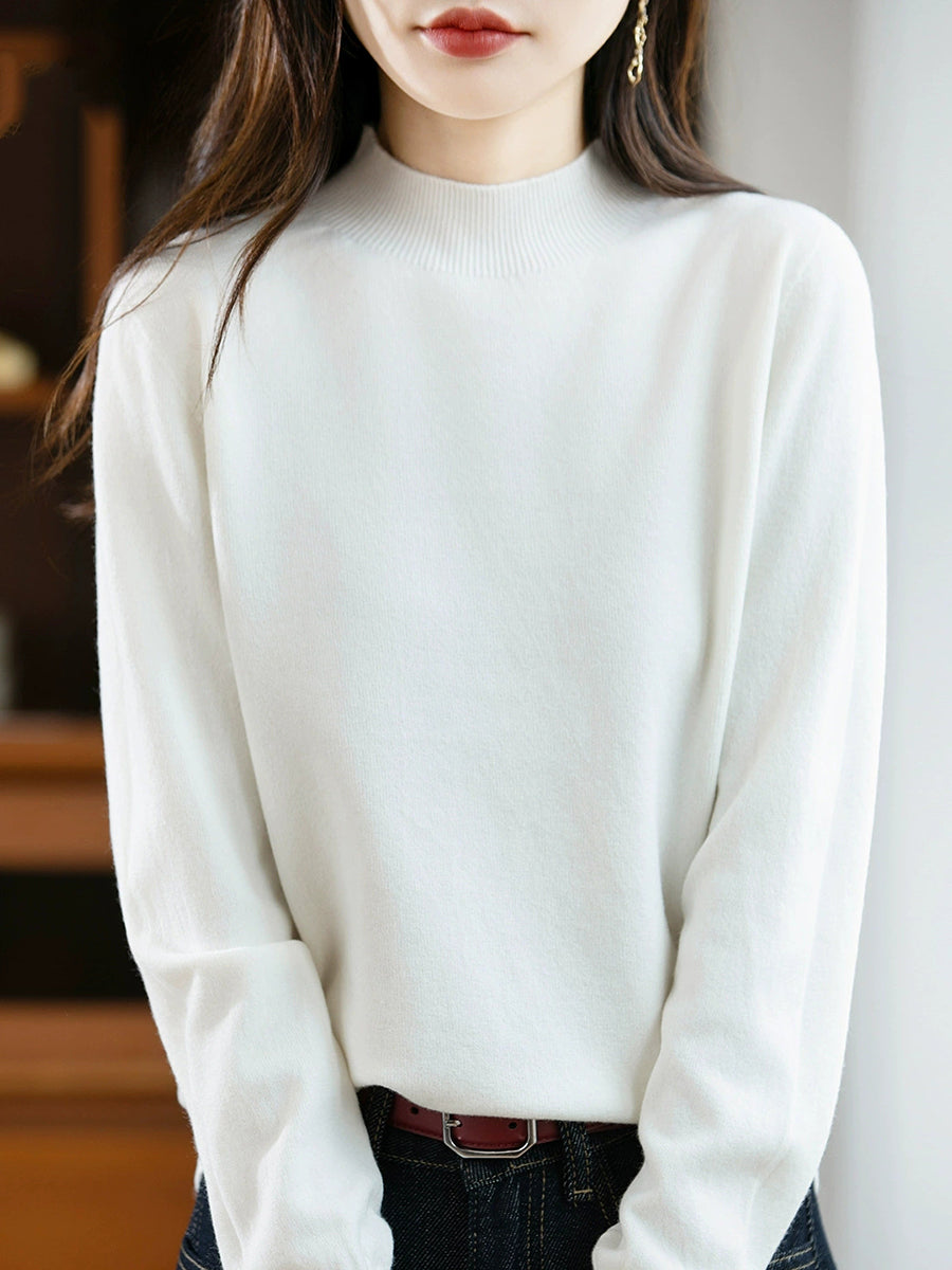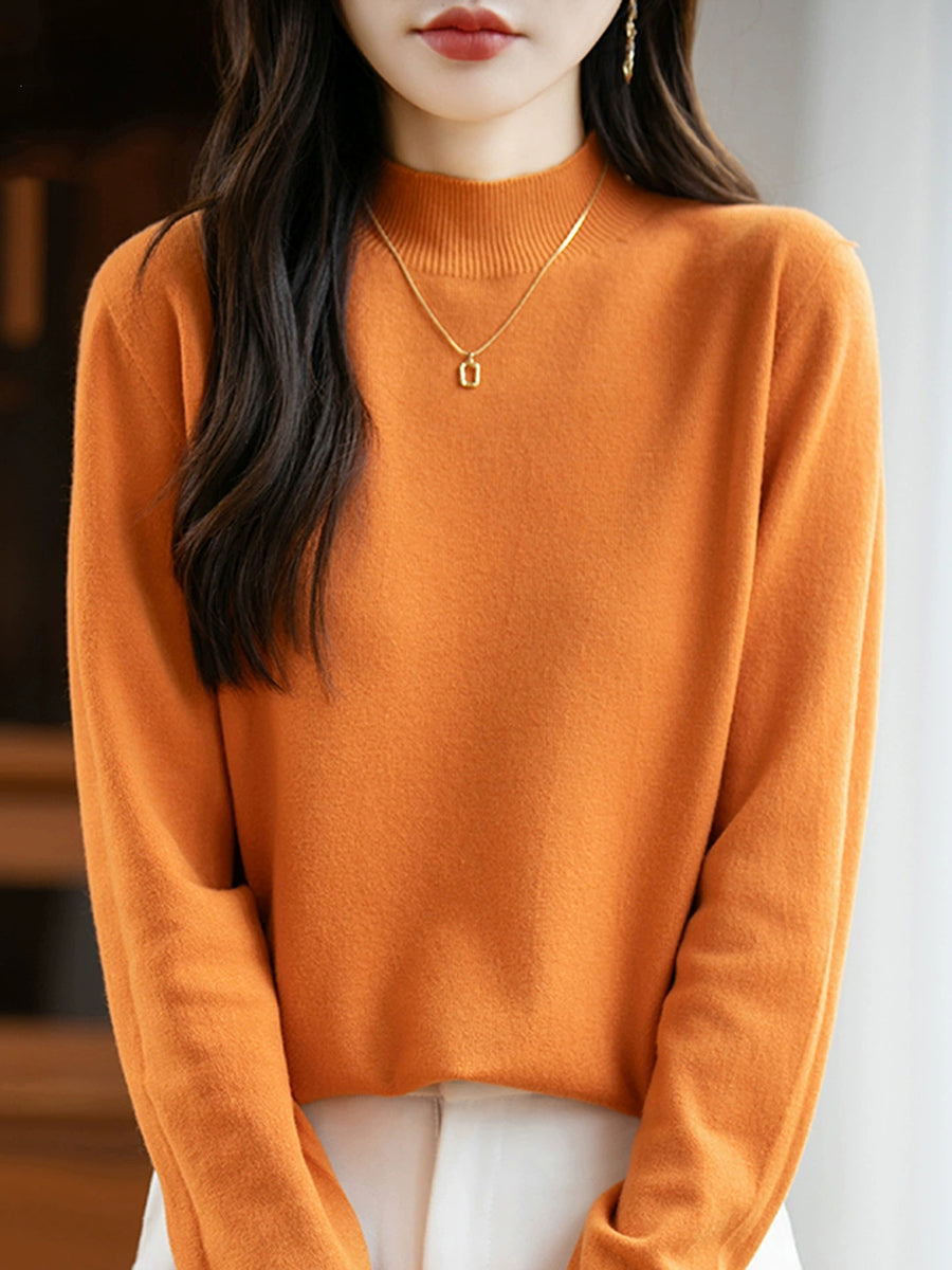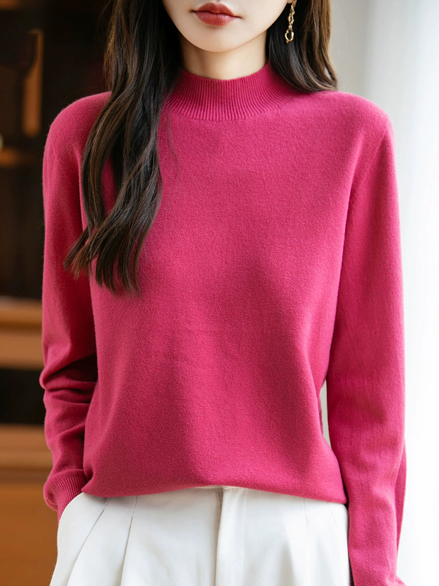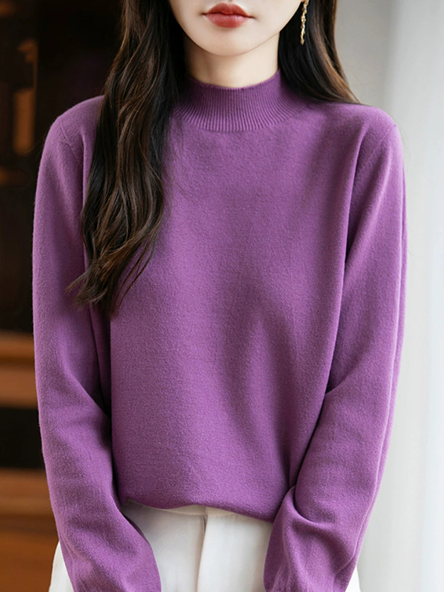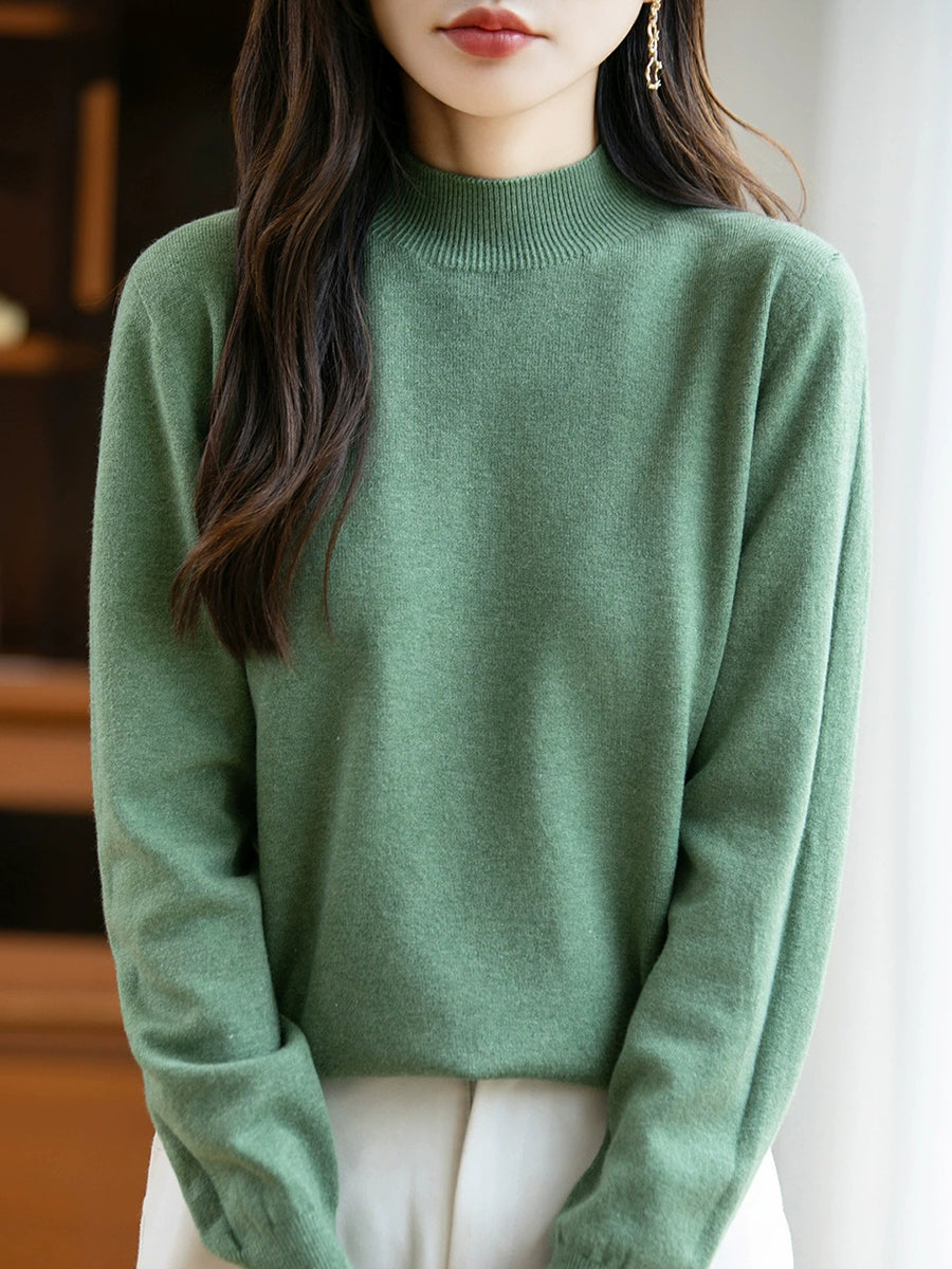 Maglione a collo alto casual da donna, colore puro, primaverile