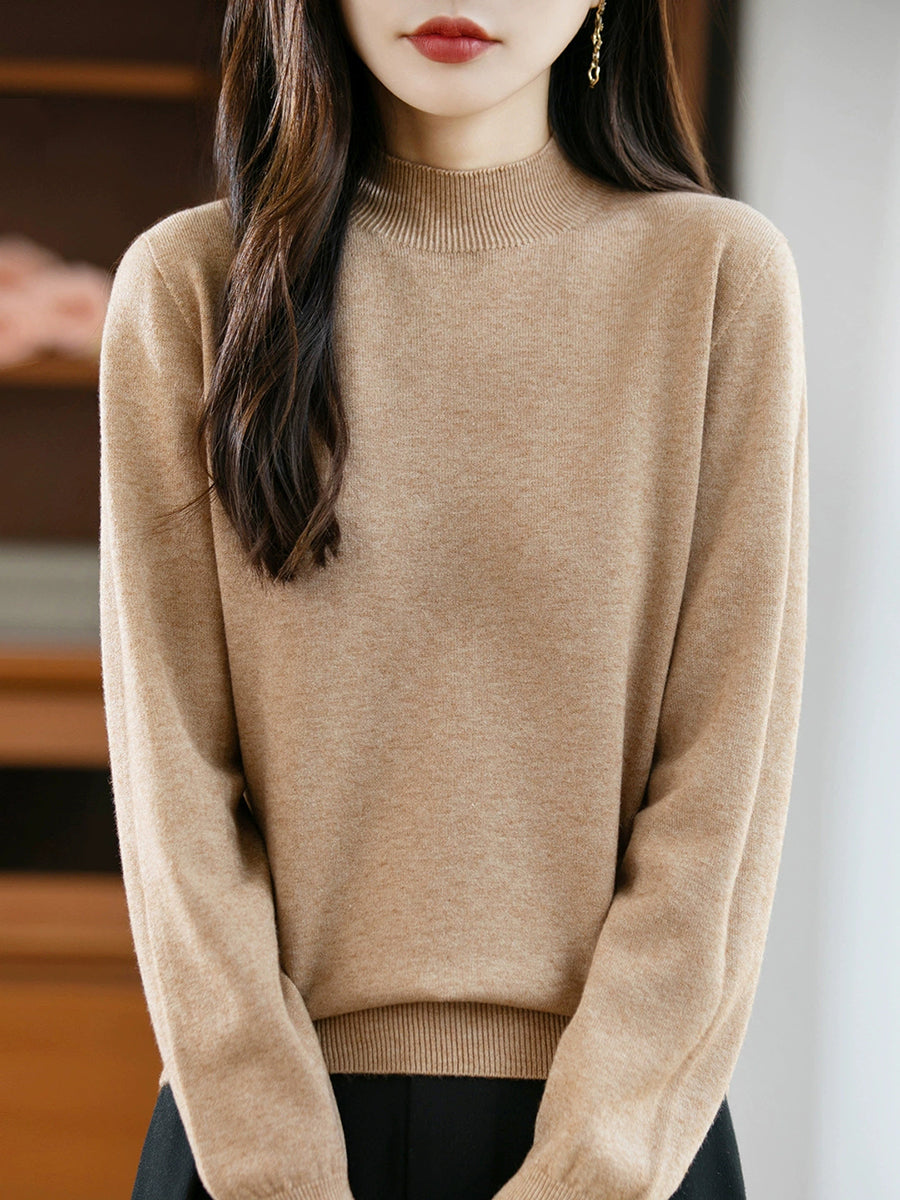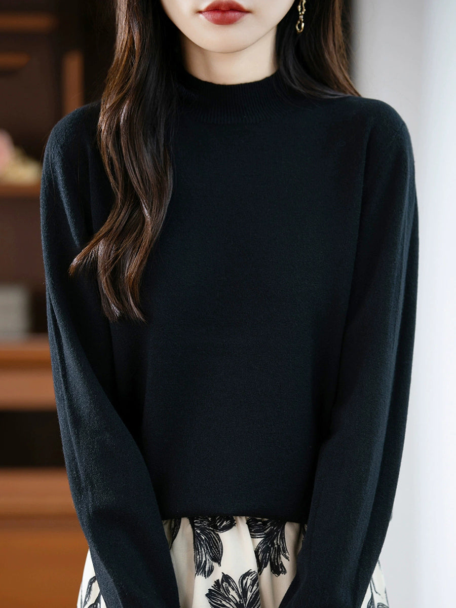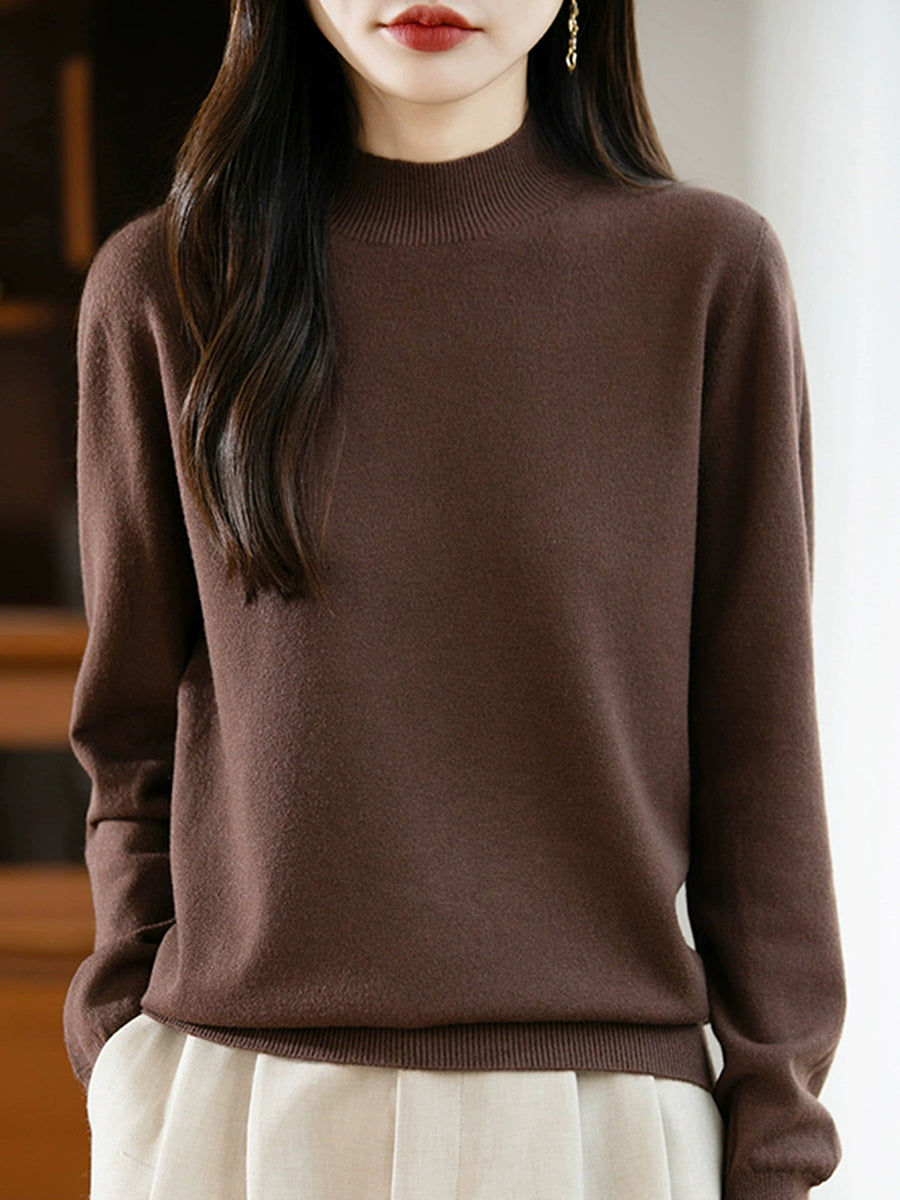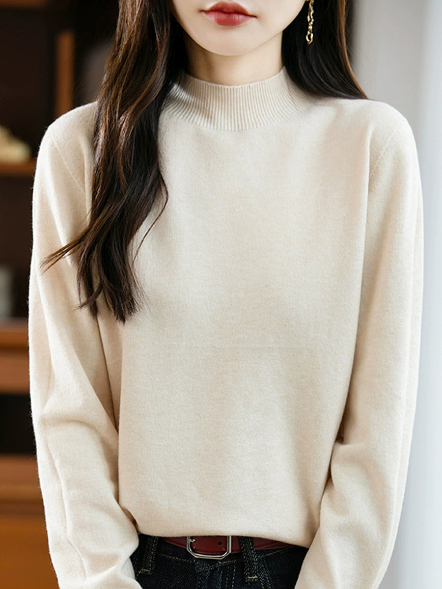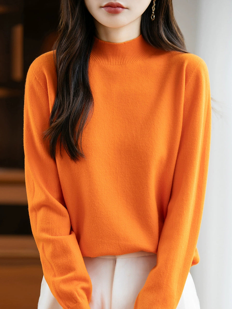 Maglione a collo alto casual da donna, colore puro, primaverile