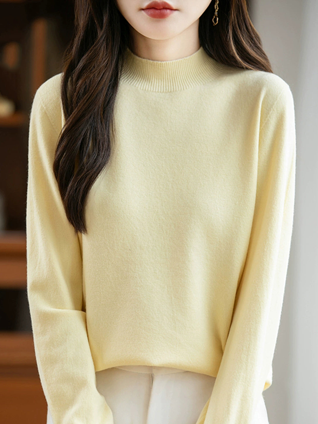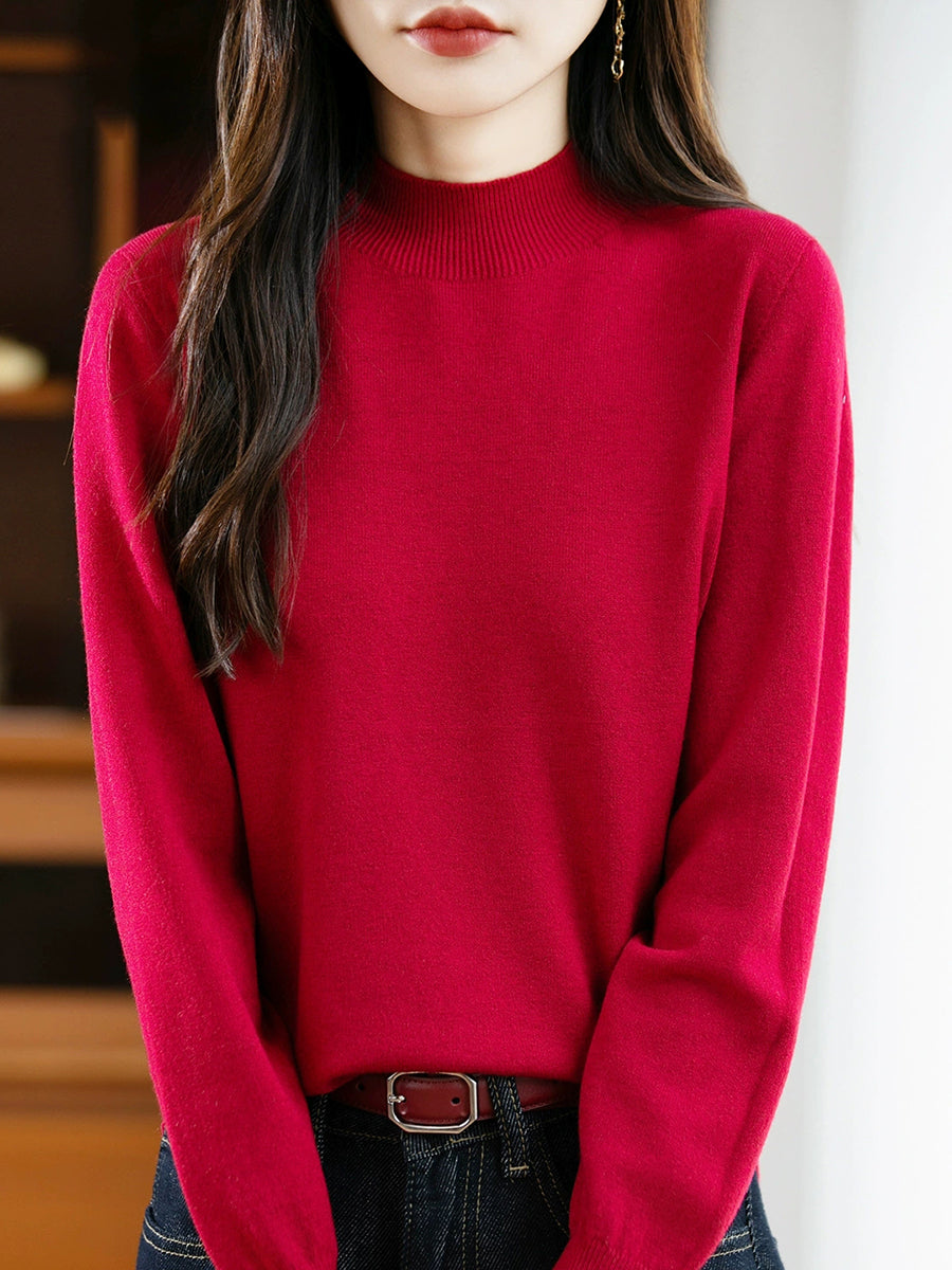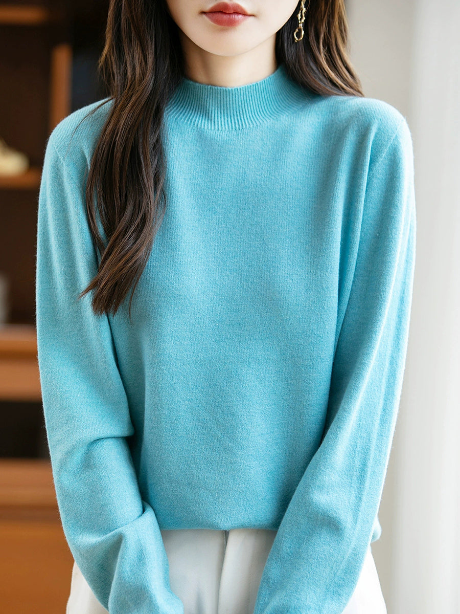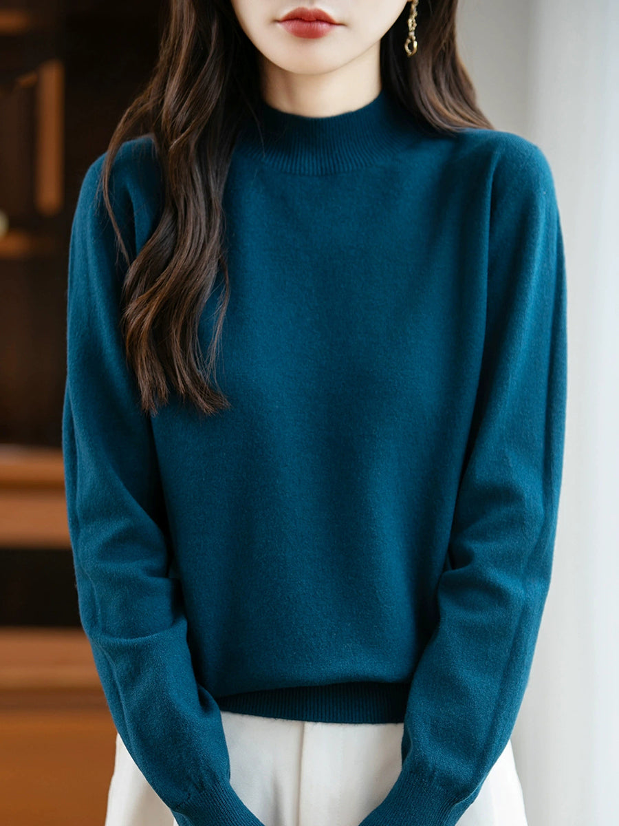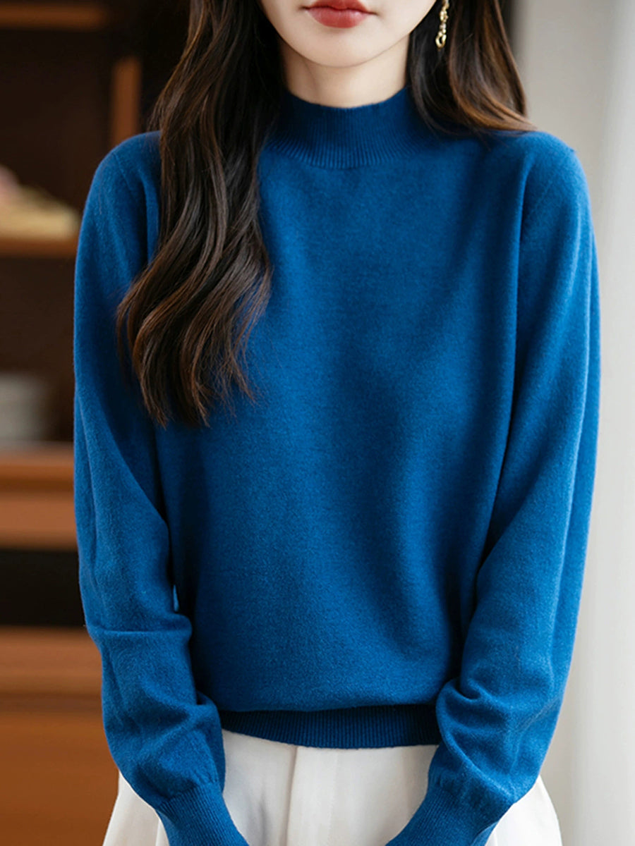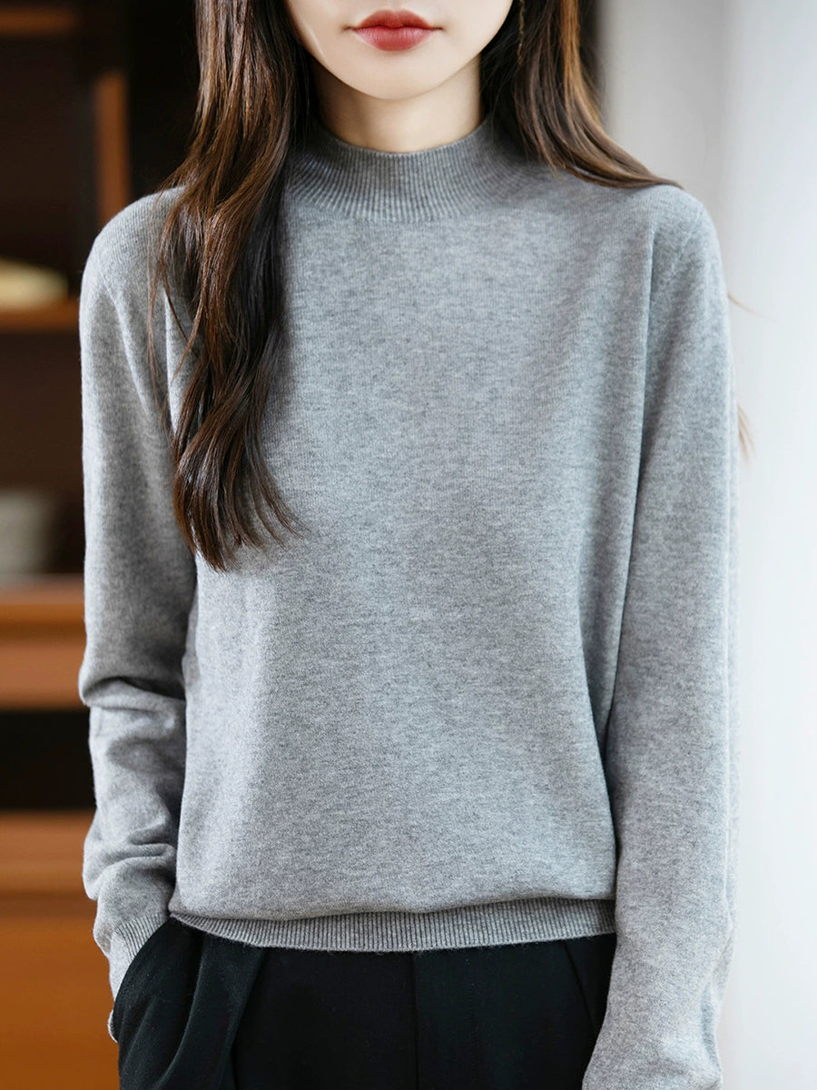 Maglione a collo alto casual da donna, colore puro, primaverile