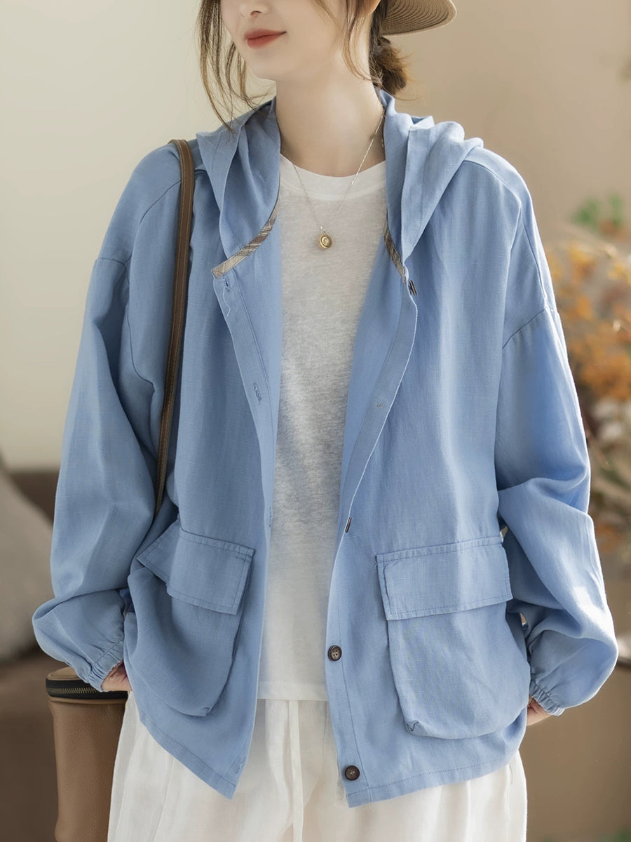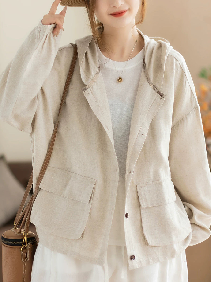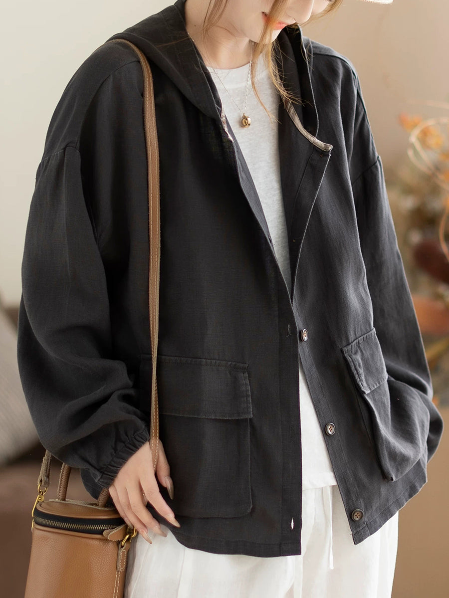 Cappotto con cappuccio casual primaverile da donna, colore puro