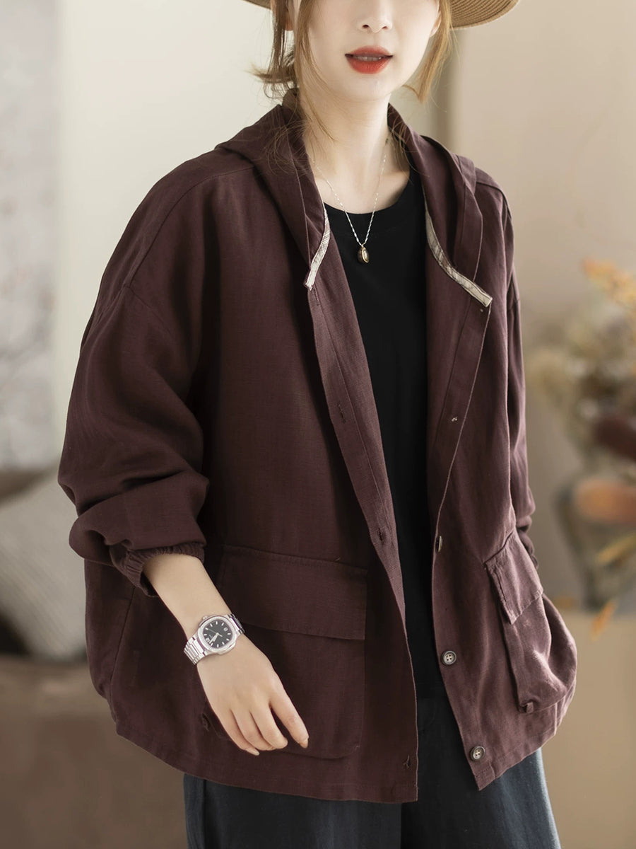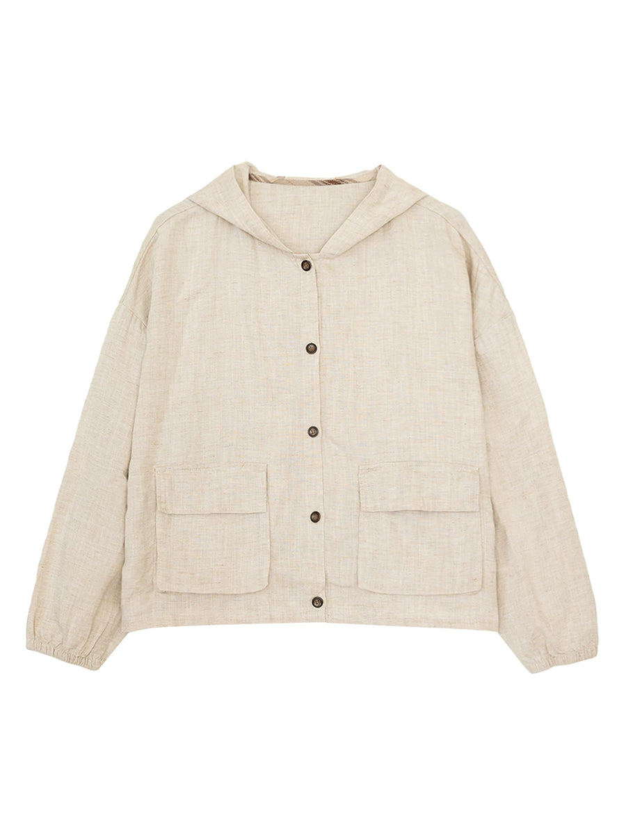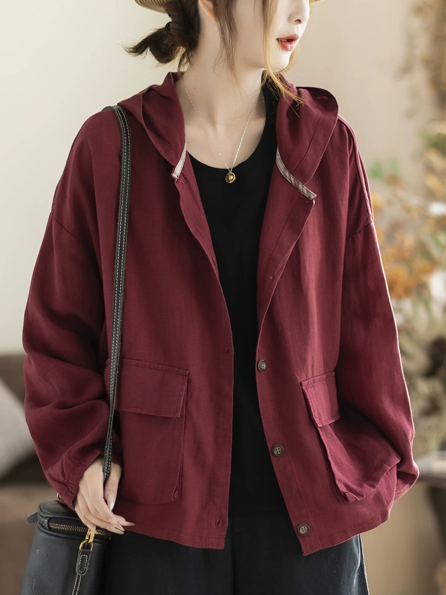 Cappotto con cappuccio casual primaverile da donna, colore puro