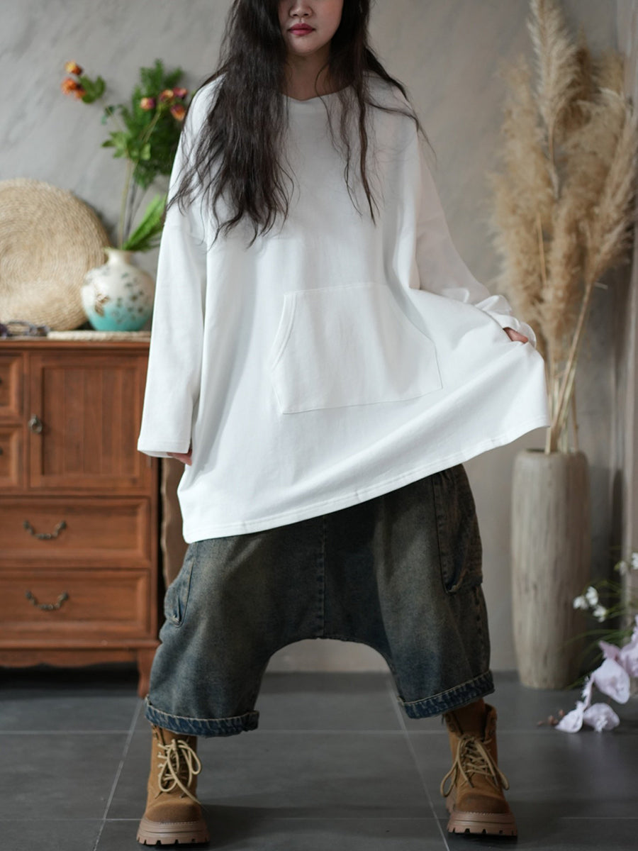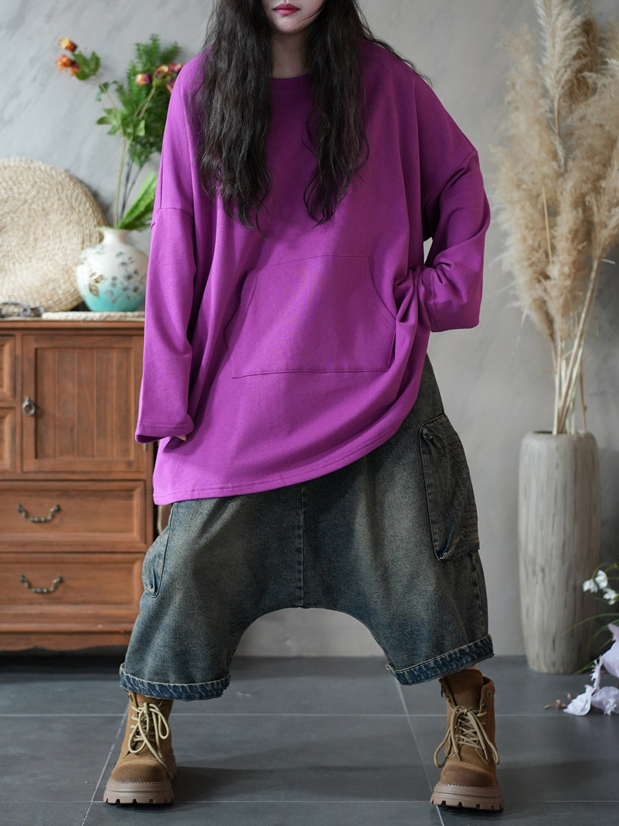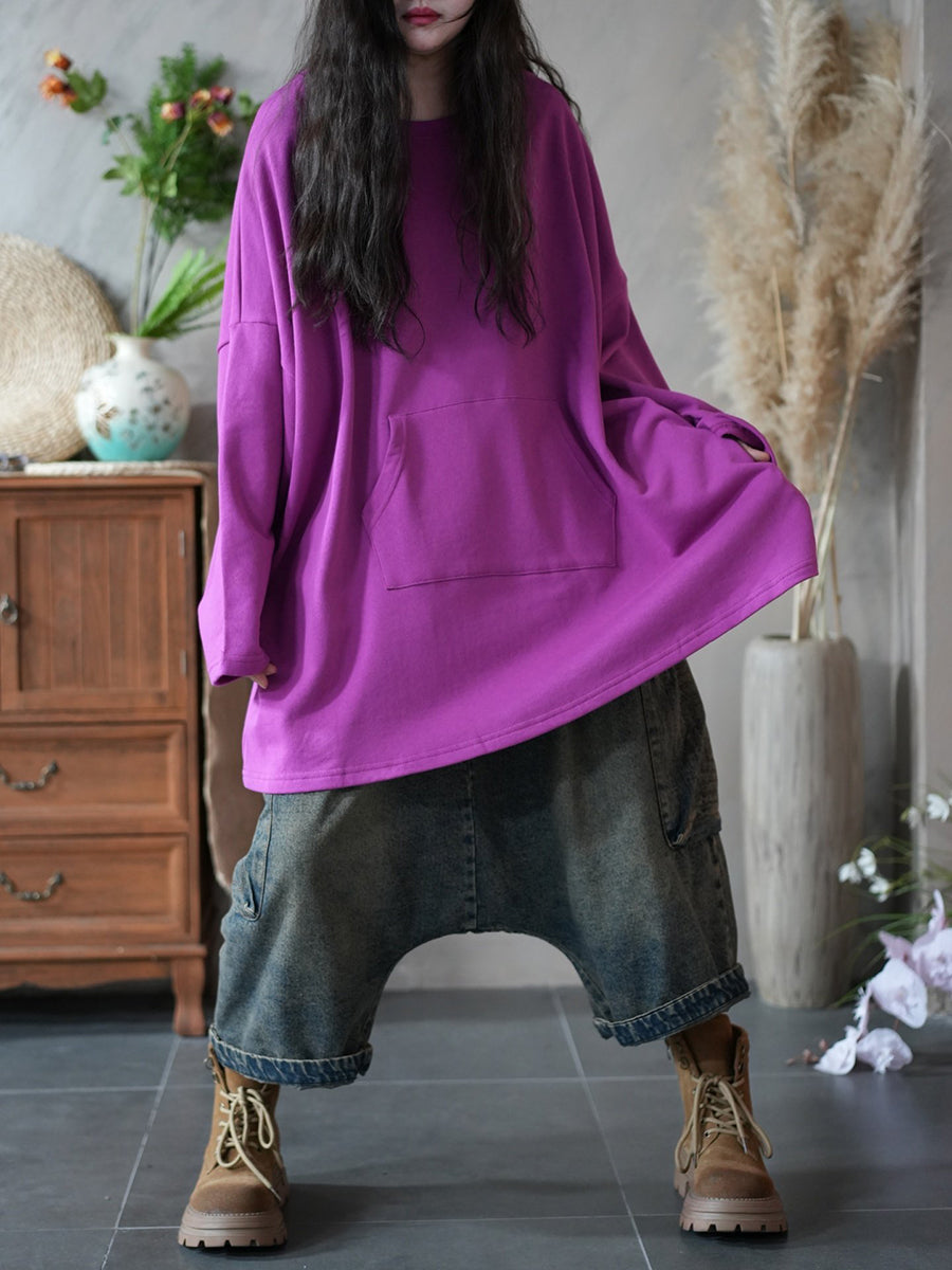 Blusa casual primaverile da donna con scollo a V, colore puro