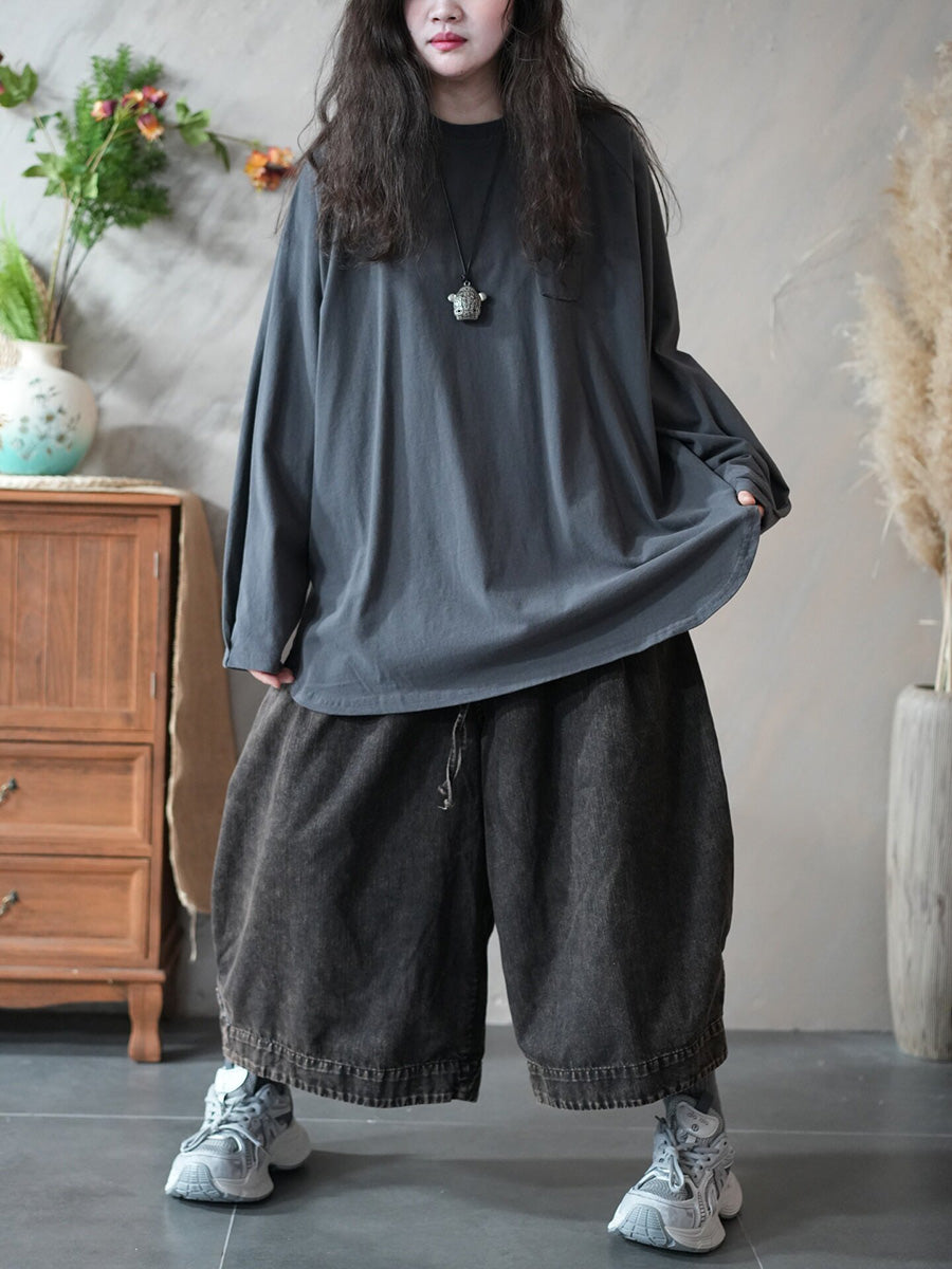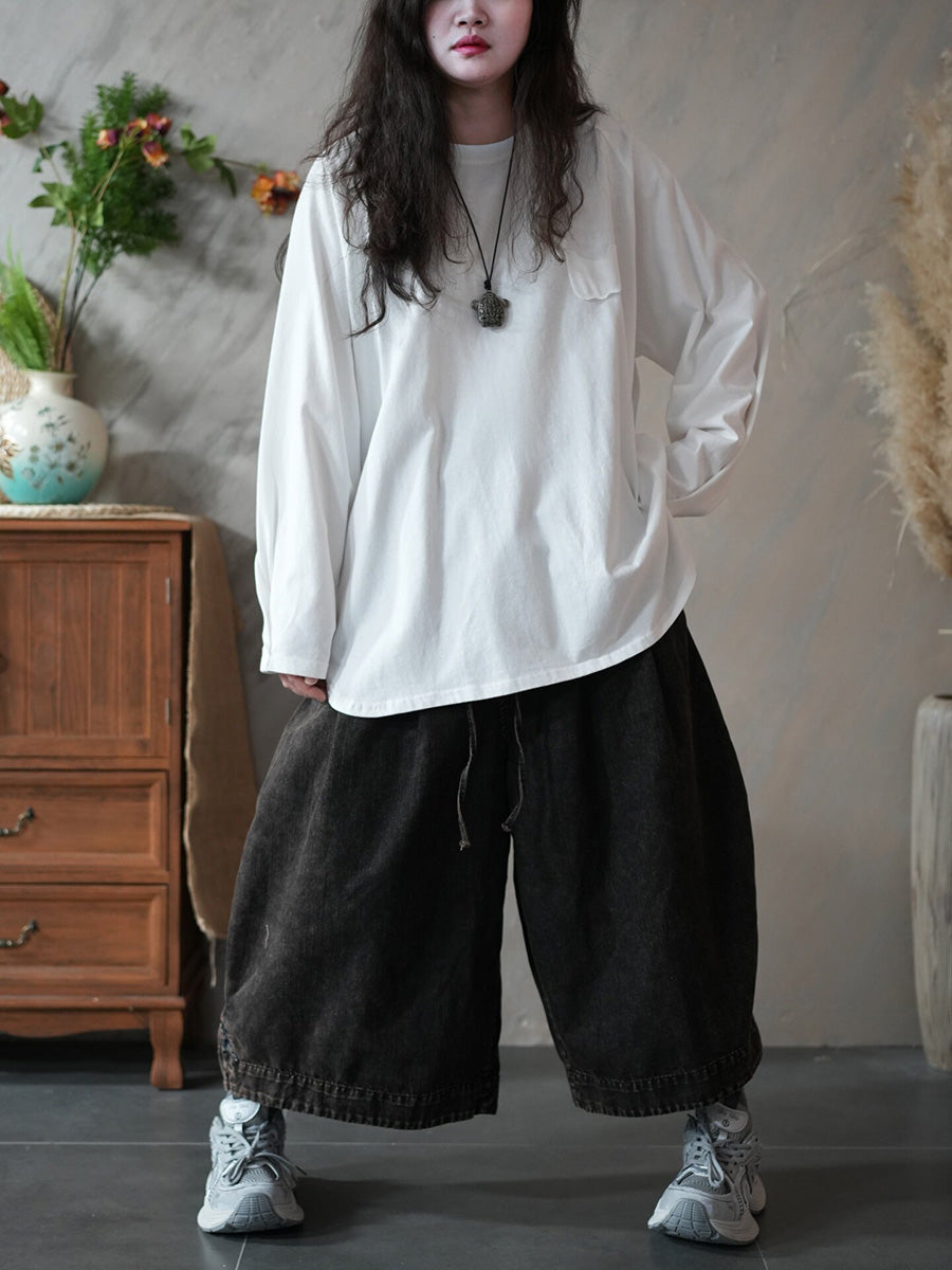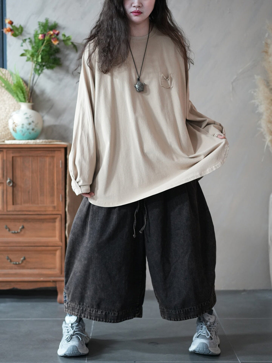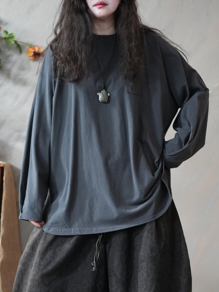 Blusa casual primaverile da donna con scollo a V, colore puro