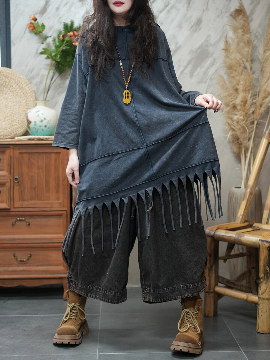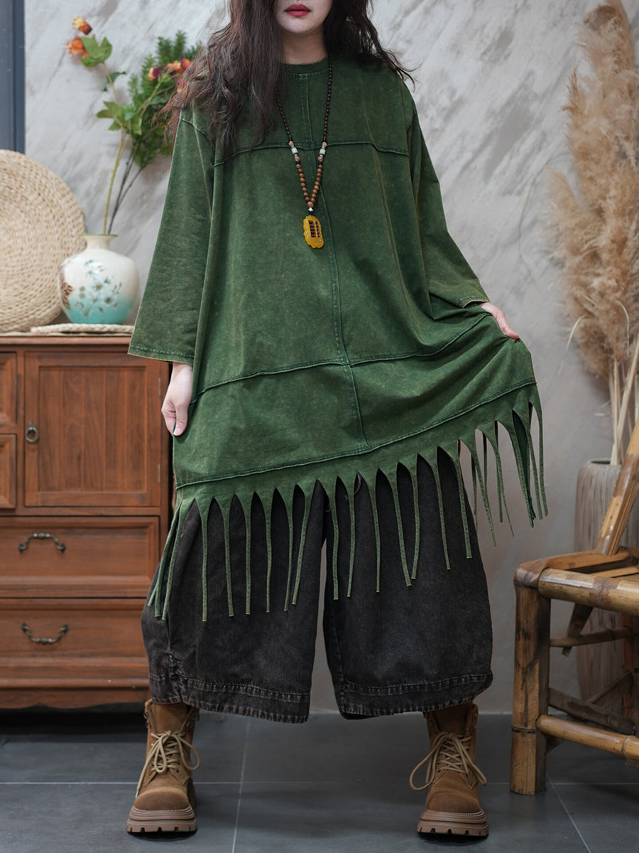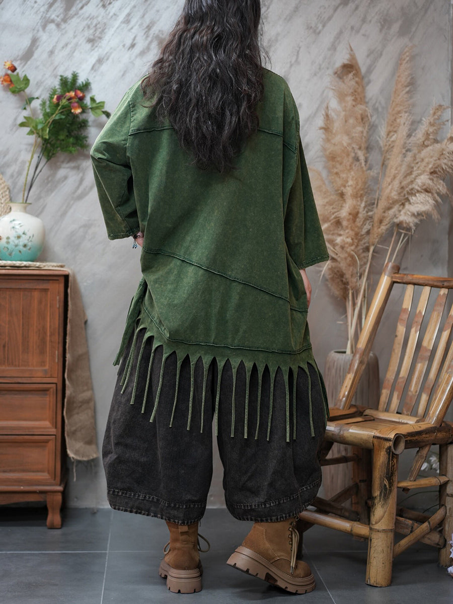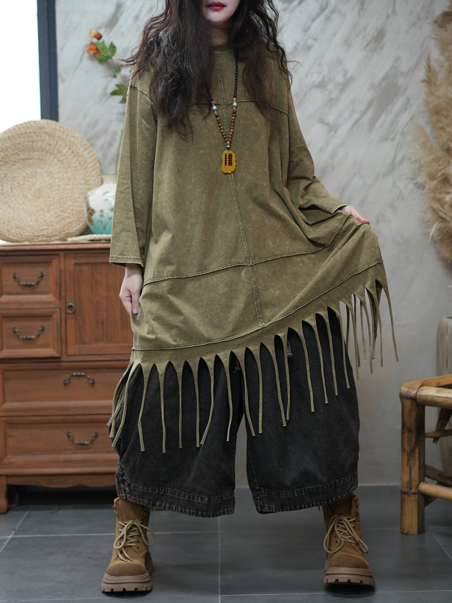 Blusa casual da donna con nappe in tinta unita primaverile