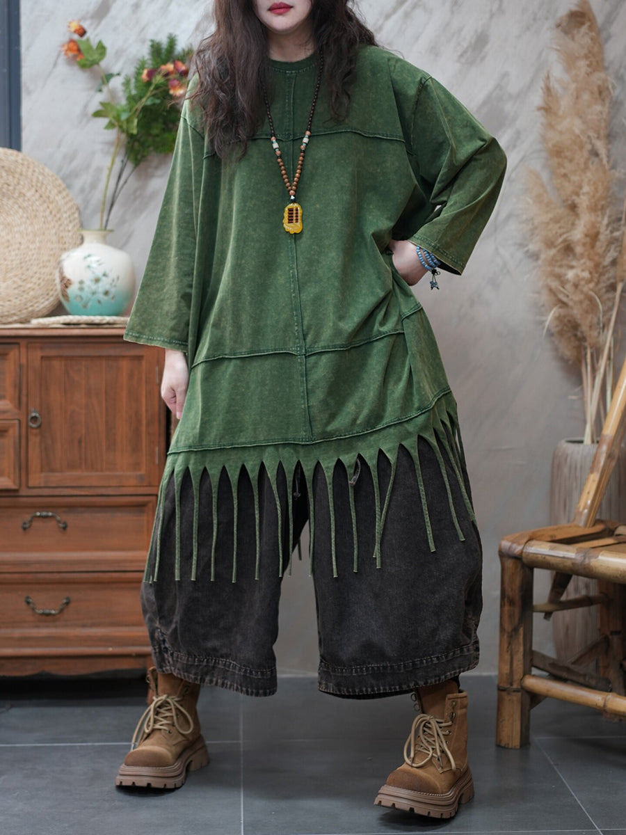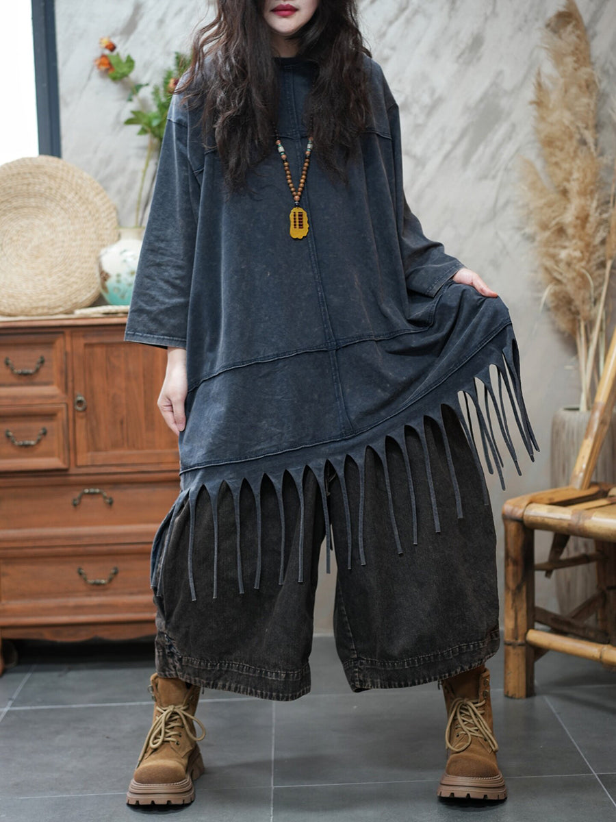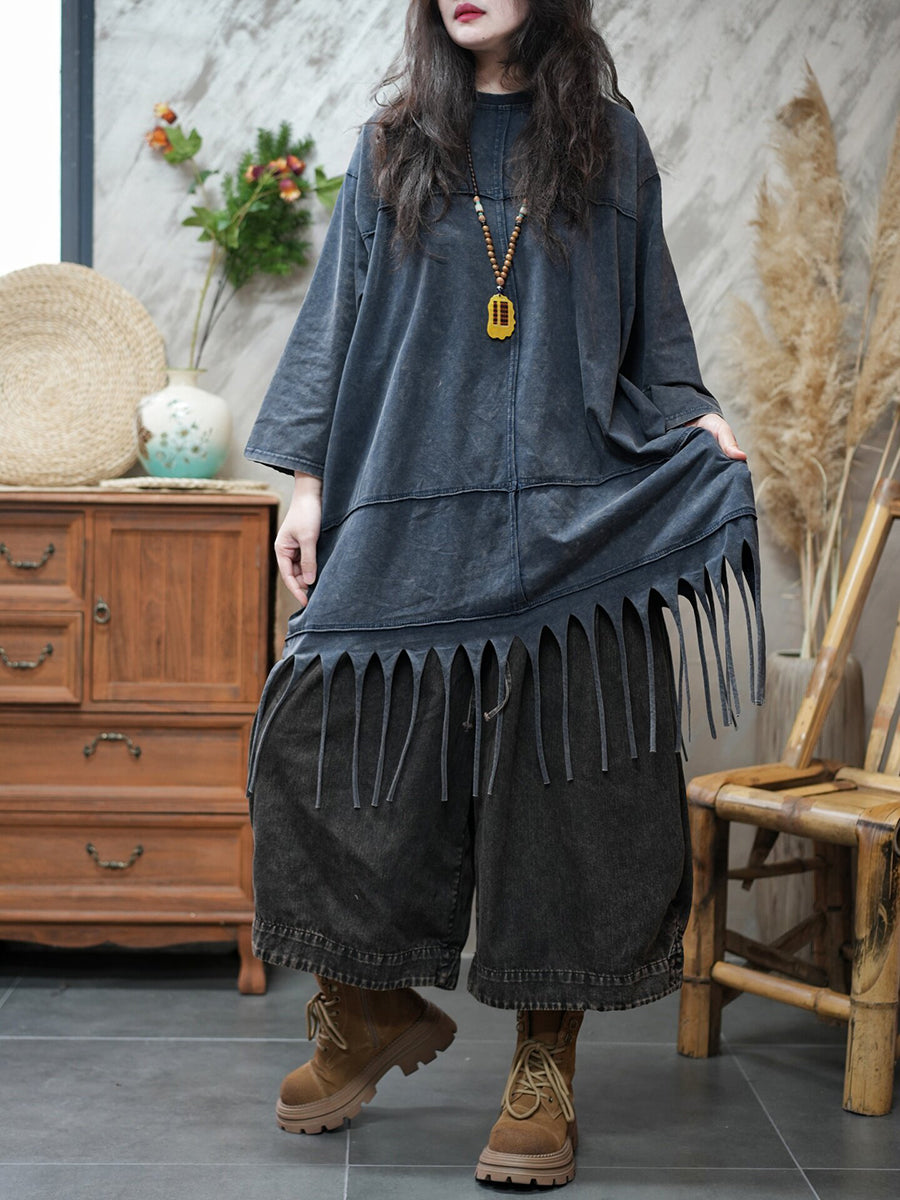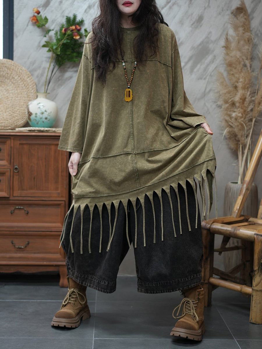 Blusa casual da donna con nappe in tinta unita primaverile