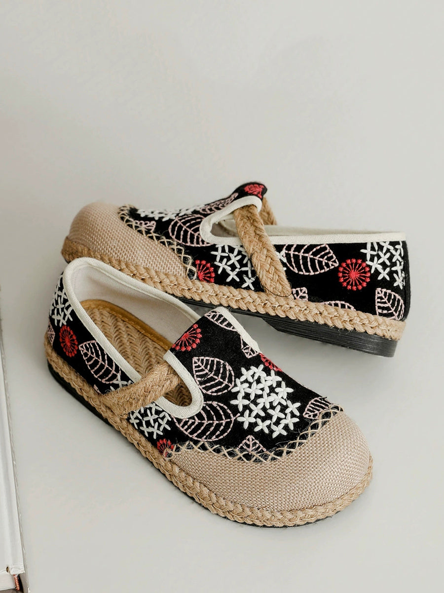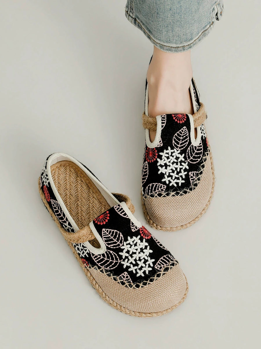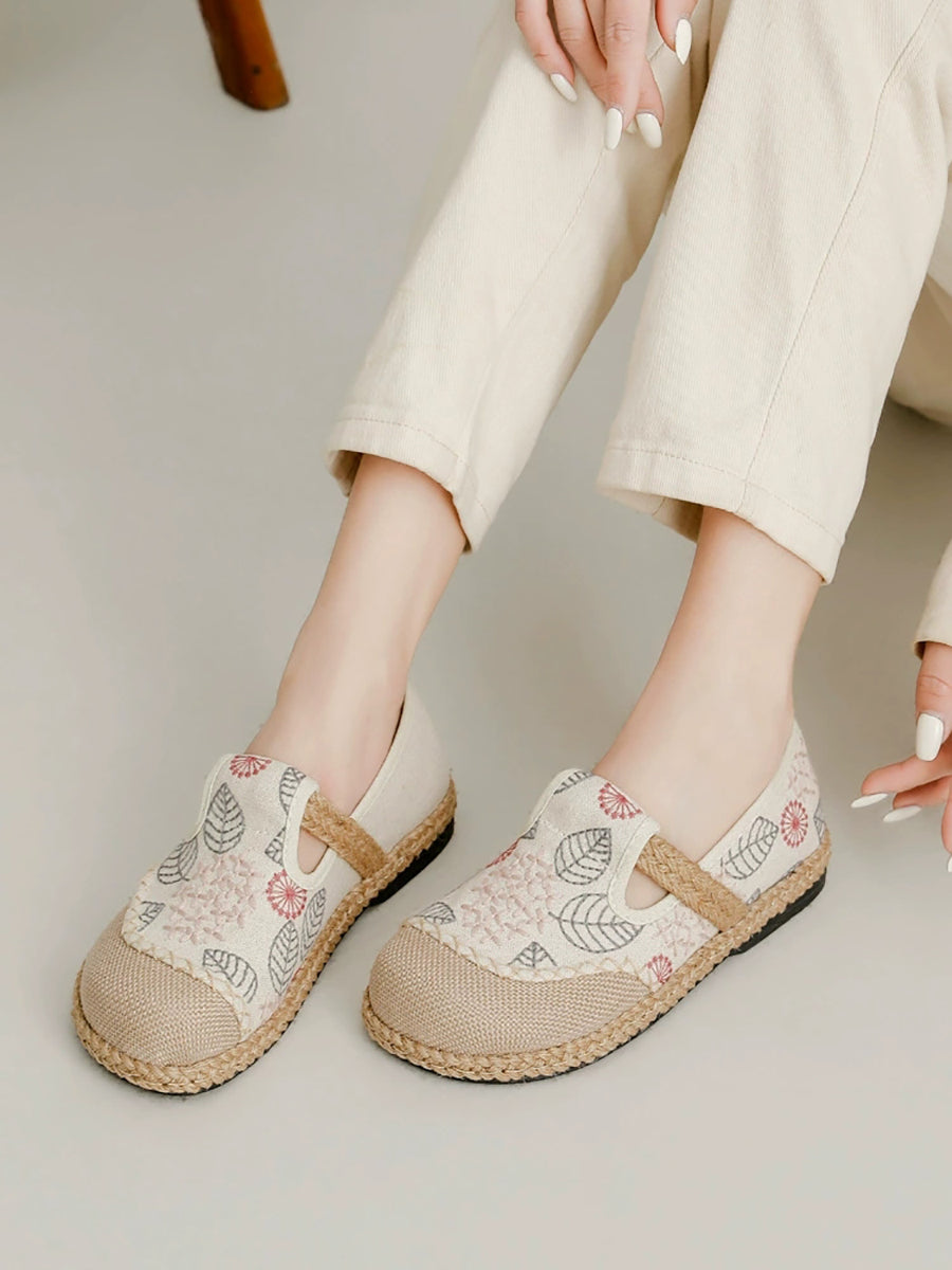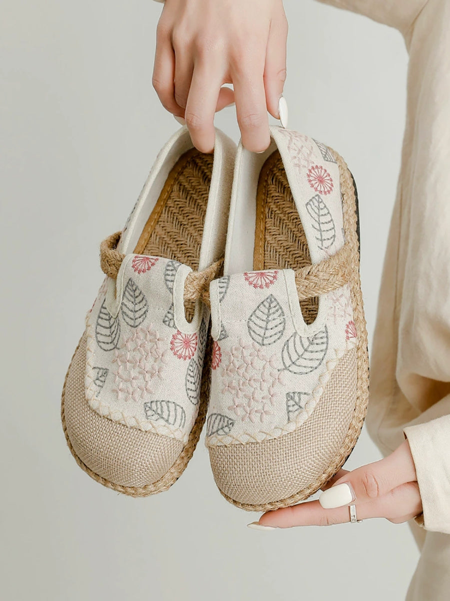 Scarpe basse da donna in tela e lino con ricamo primaverile