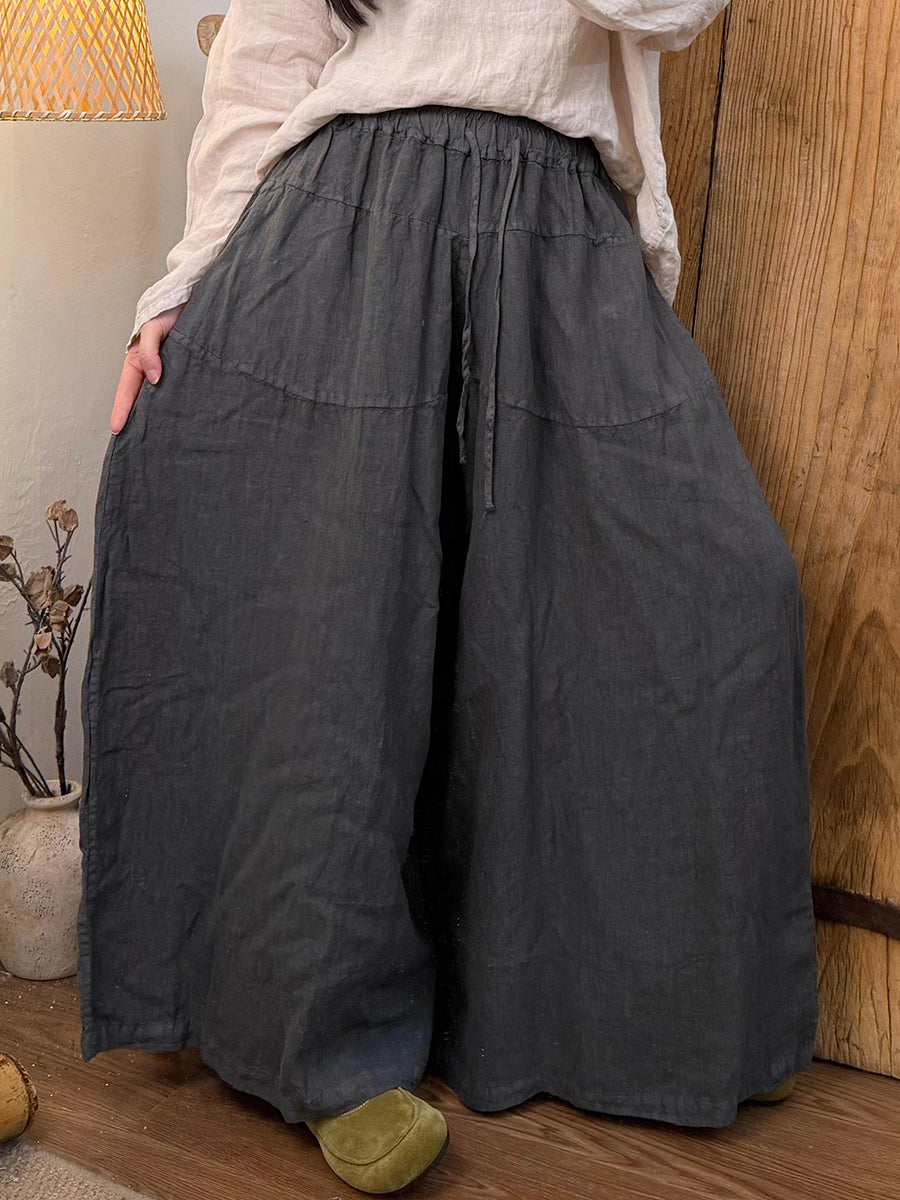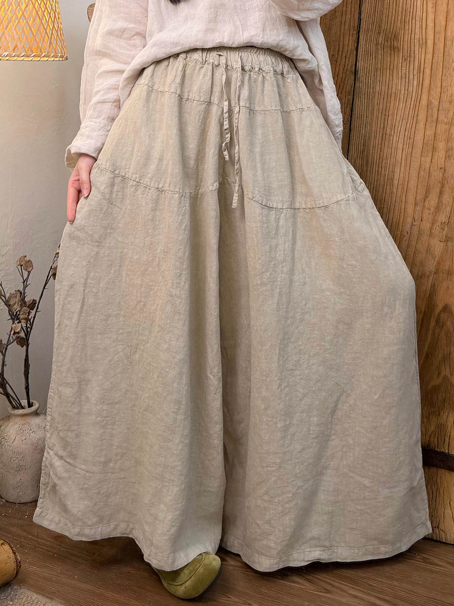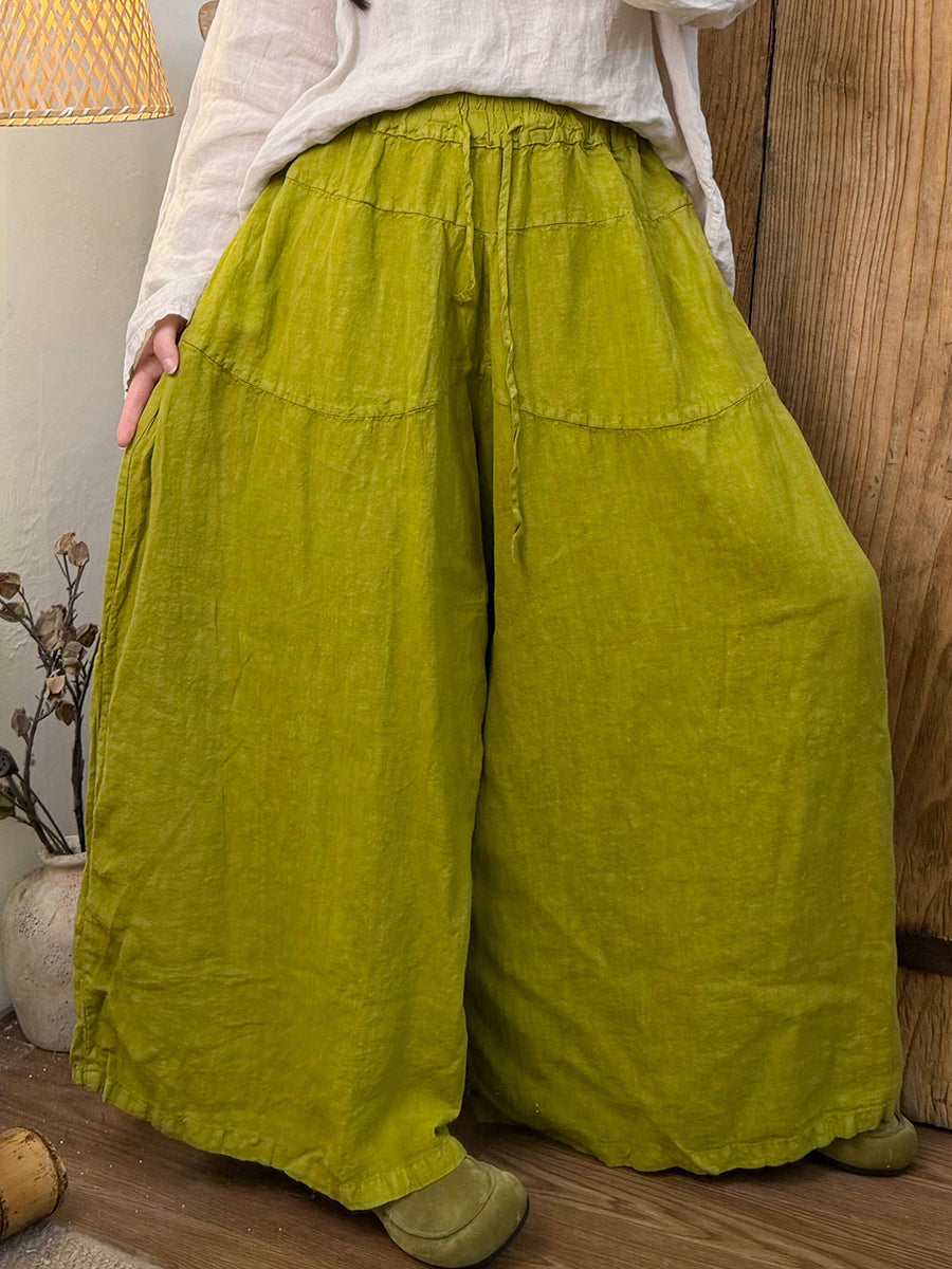 Pantaloni larghi da donna in lino puro di colore primaverile