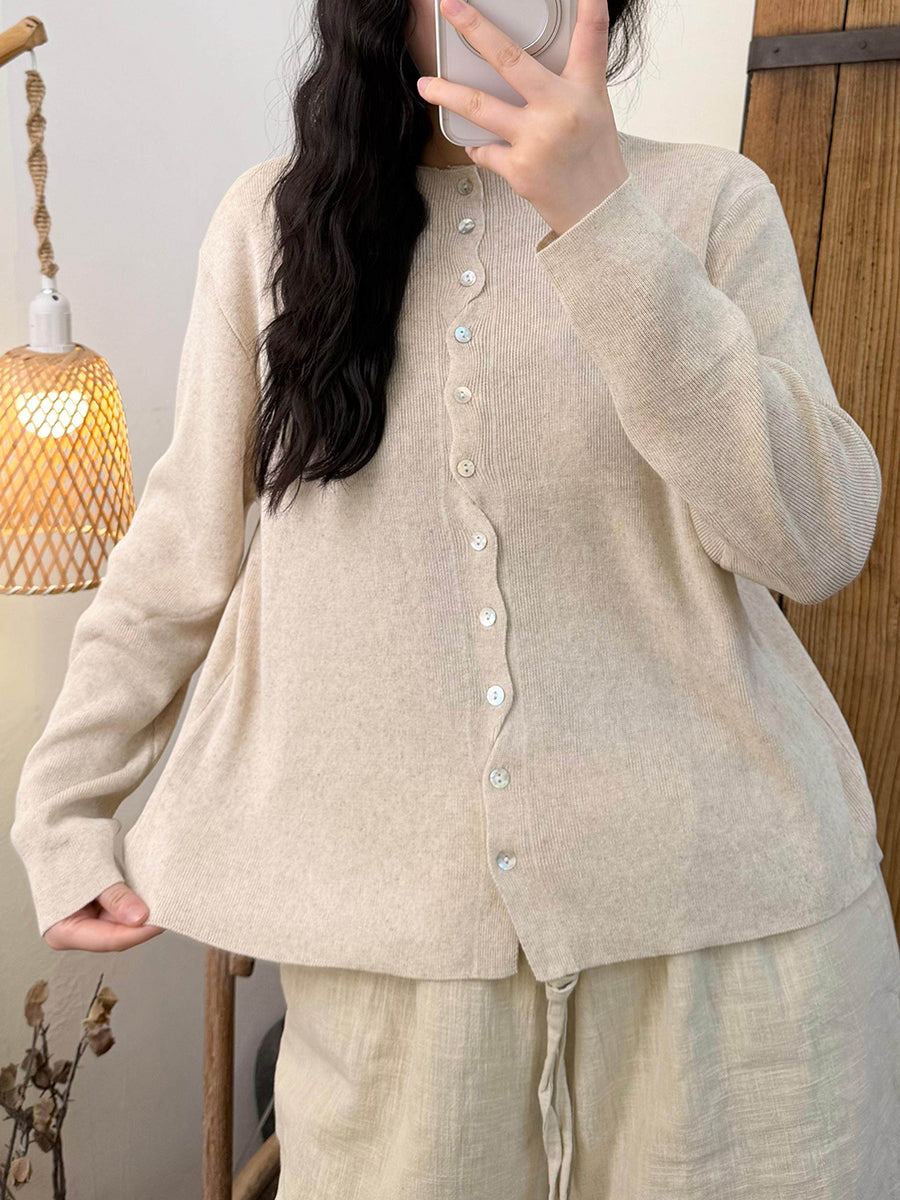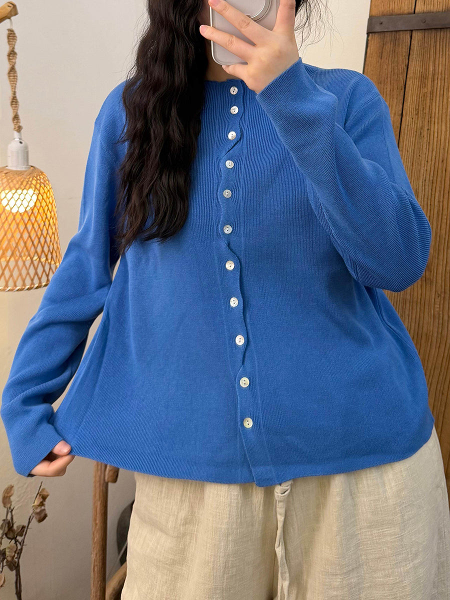 Maglietta da donna in maglia con scollo a V e colori puri primaverili