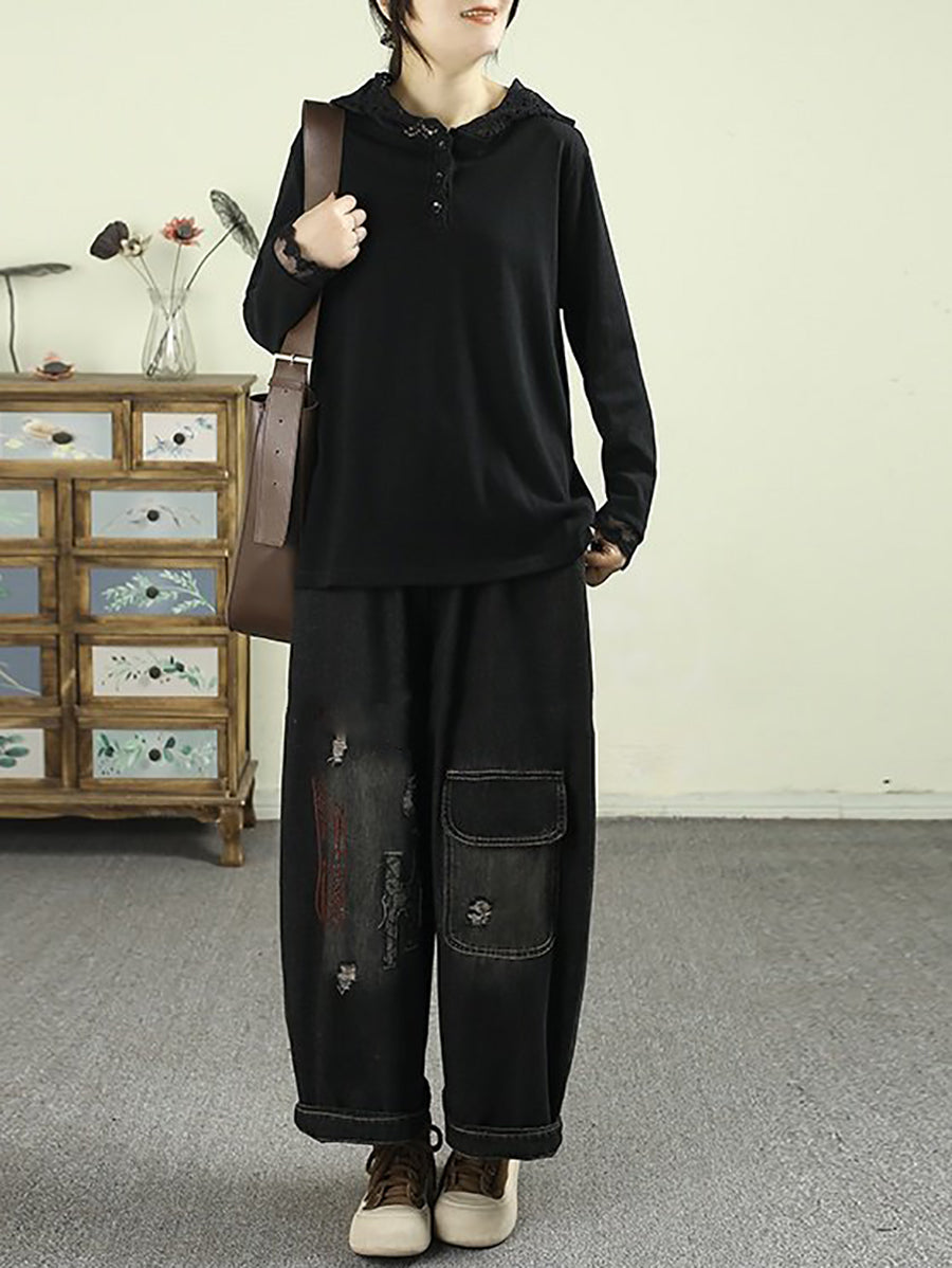 Pantaloni harem sfilacciati in denim retrò primaverili da donna