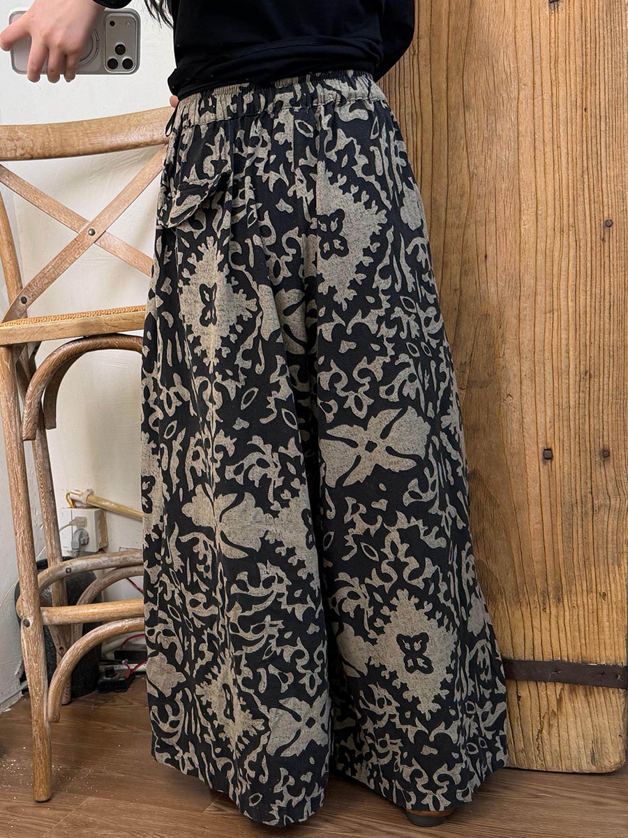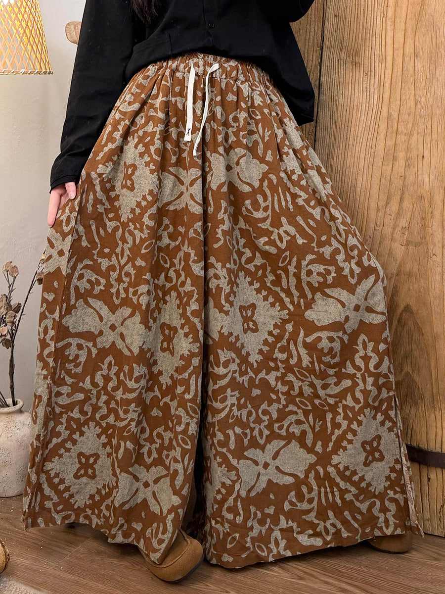 Pantaloni larghi da donna con fiori retrò primaverili