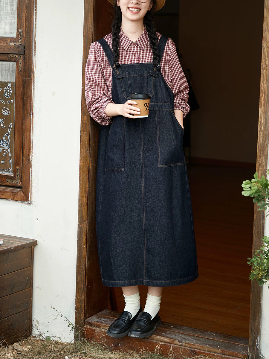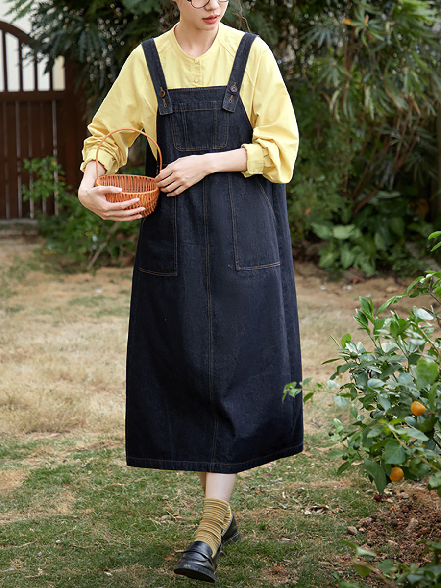 Abito da donna in denim puro, stile retrò, primaverile