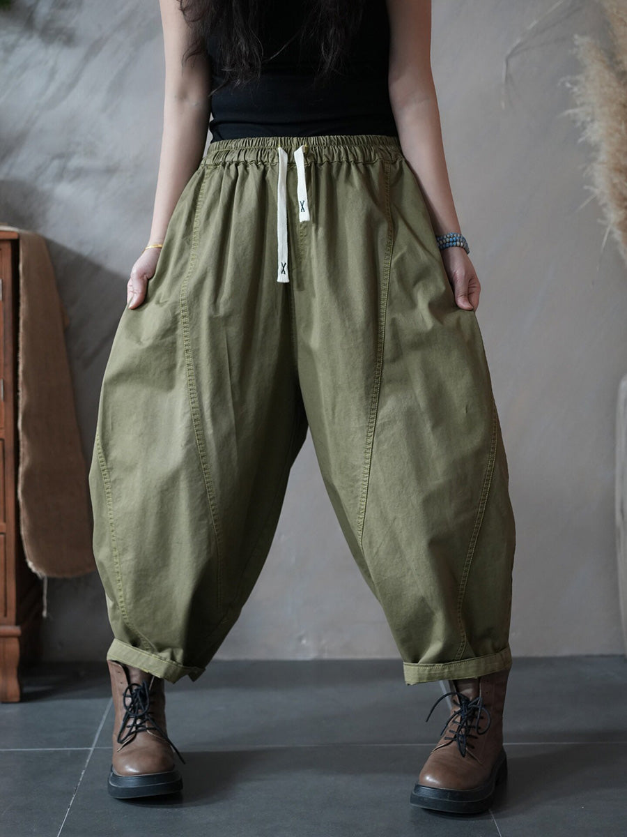 Pantaloni harem da donna primaverili retrò in tinta unita