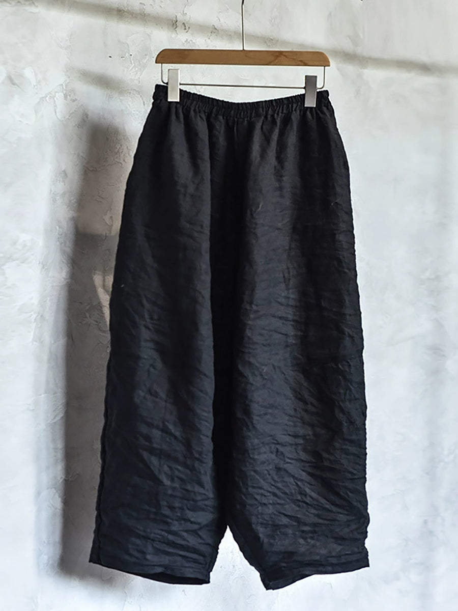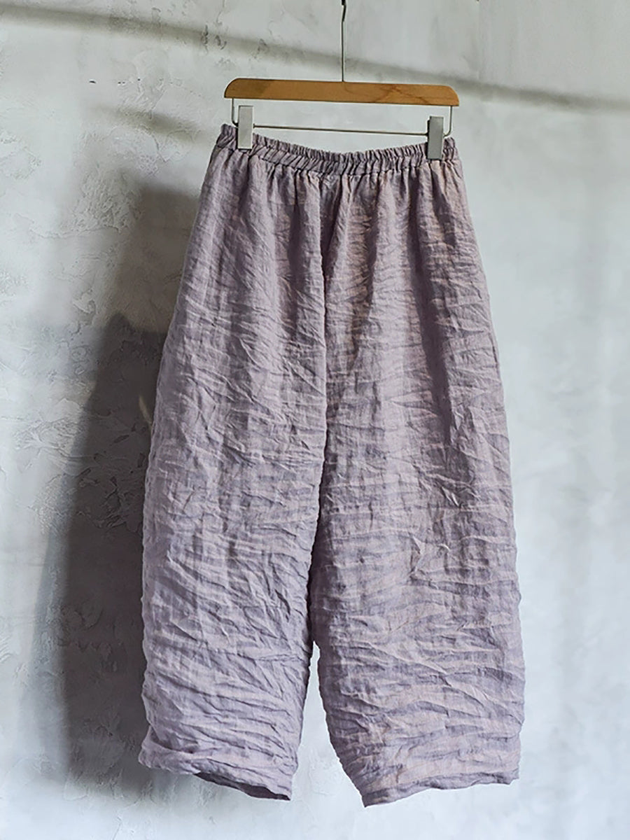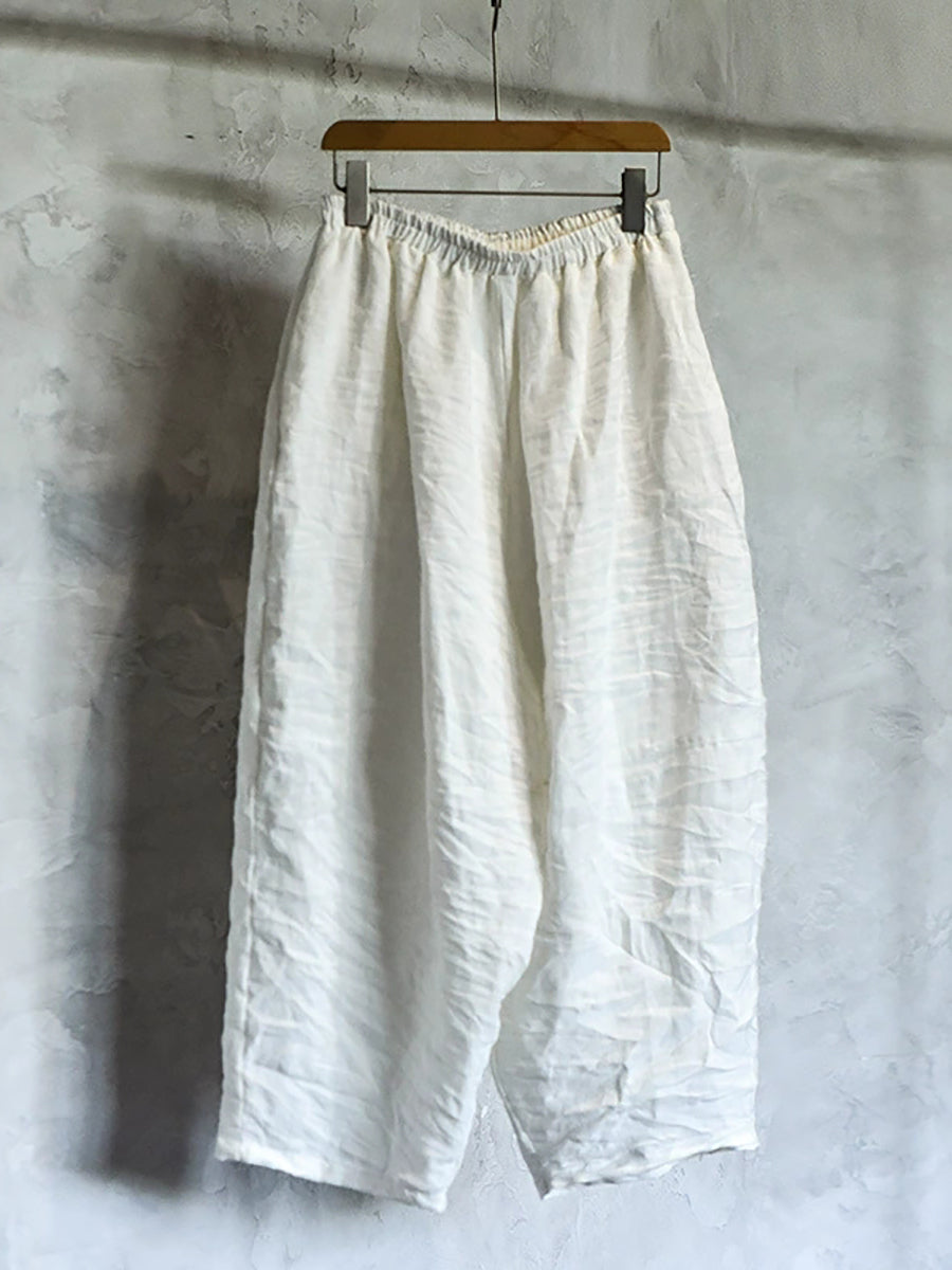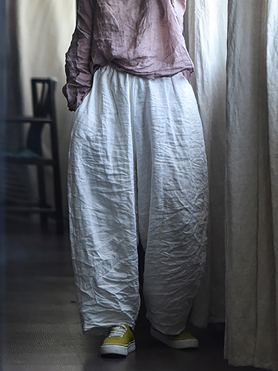 Pantaloni larghi in lino puro, stile retrò, da donna, primaverili