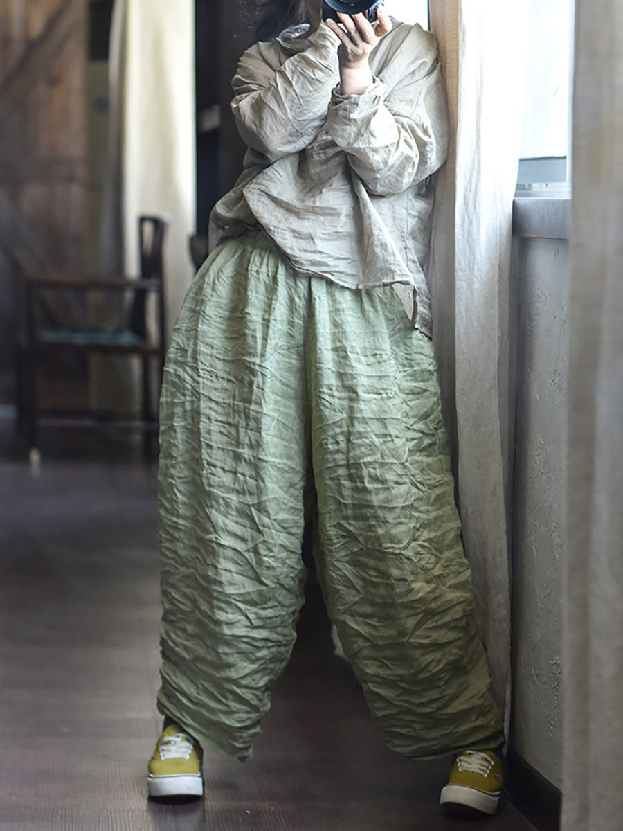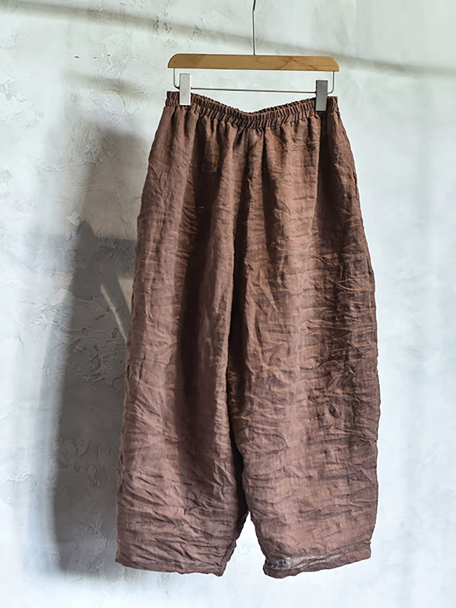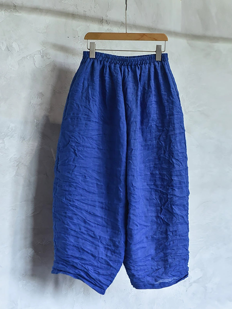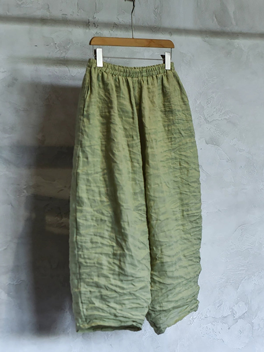 Pantaloni larghi in lino puro, stile retrò, da donna, primaverili