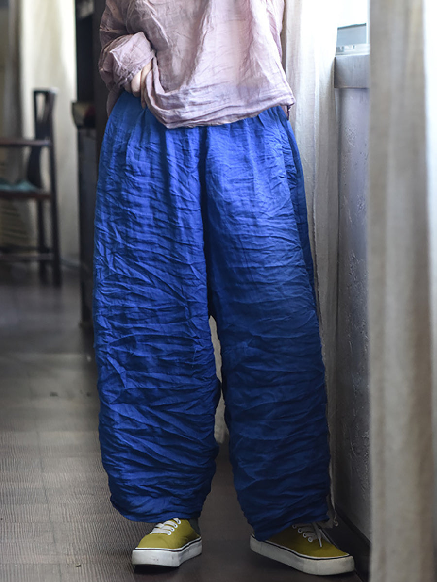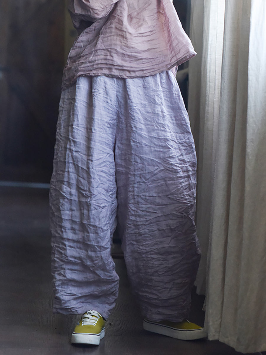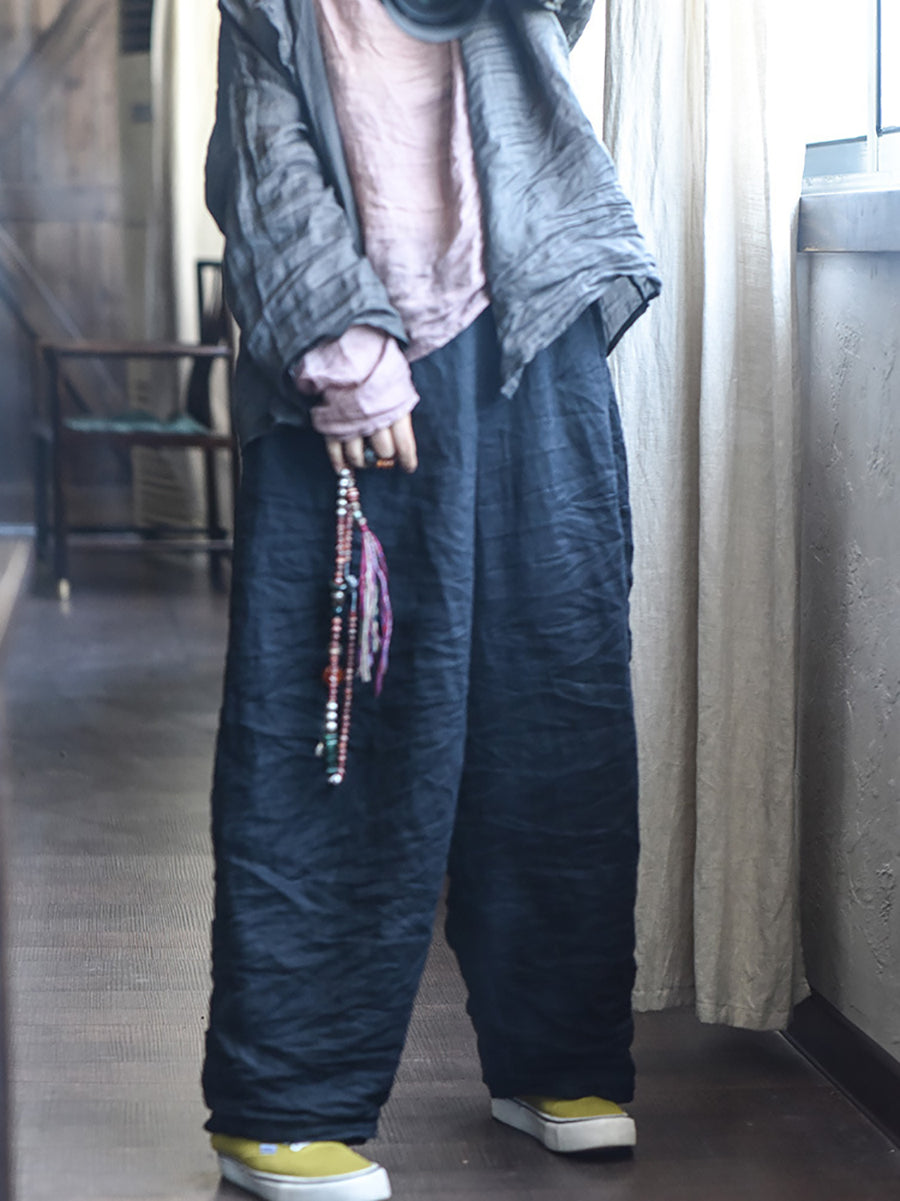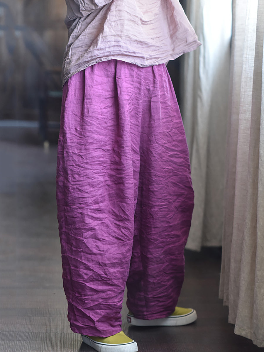 Pantaloni larghi in lino puro, stile retrò, da donna, primaverili