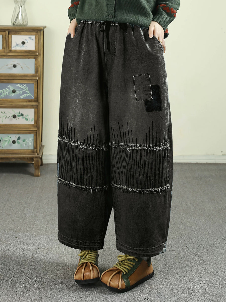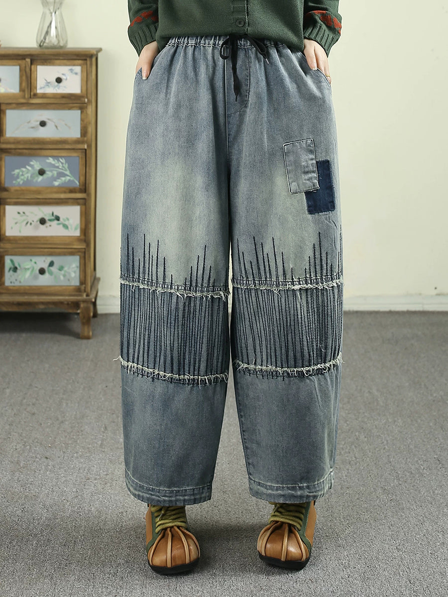 Pantaloni harem da donna in denim vintage patchwork primaverili