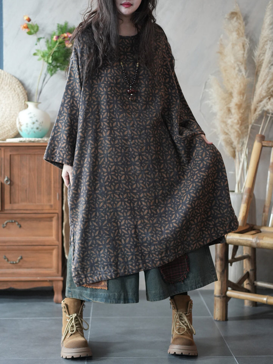 Abito da donna primaverile vintage con stampa floreale e scollo a O