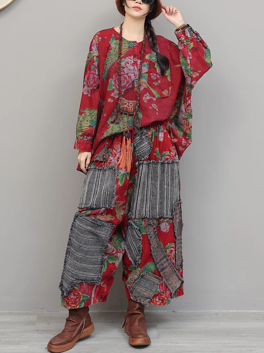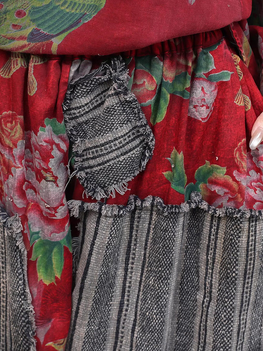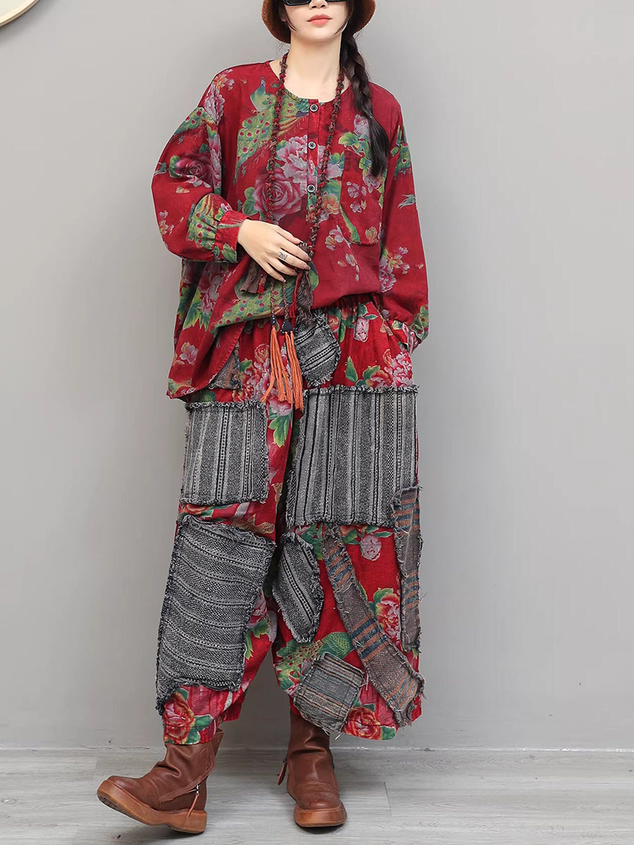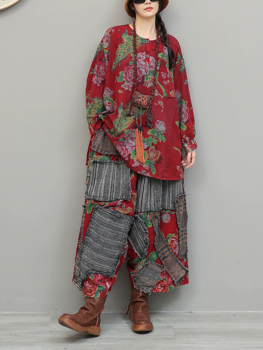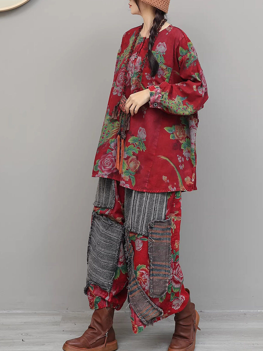 Tute da donna con scollo a V e patchwork floreale vintage primaverili