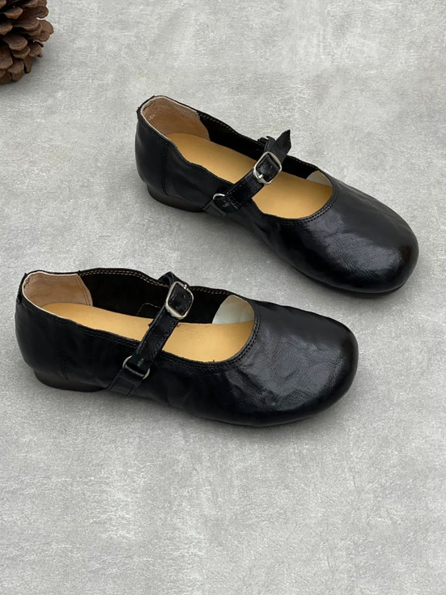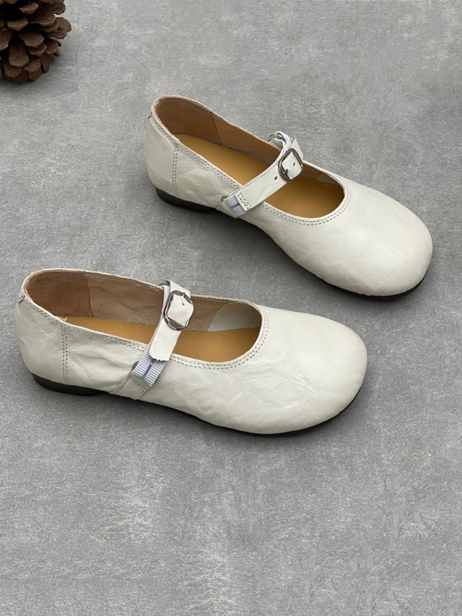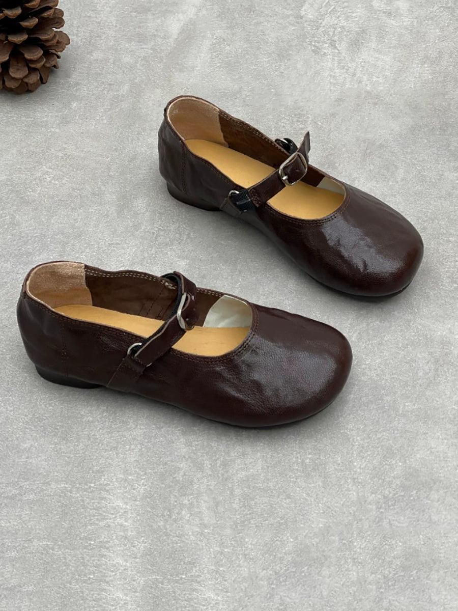 Scarpe da donna con tacco basso in vera pelle vintage primaverili